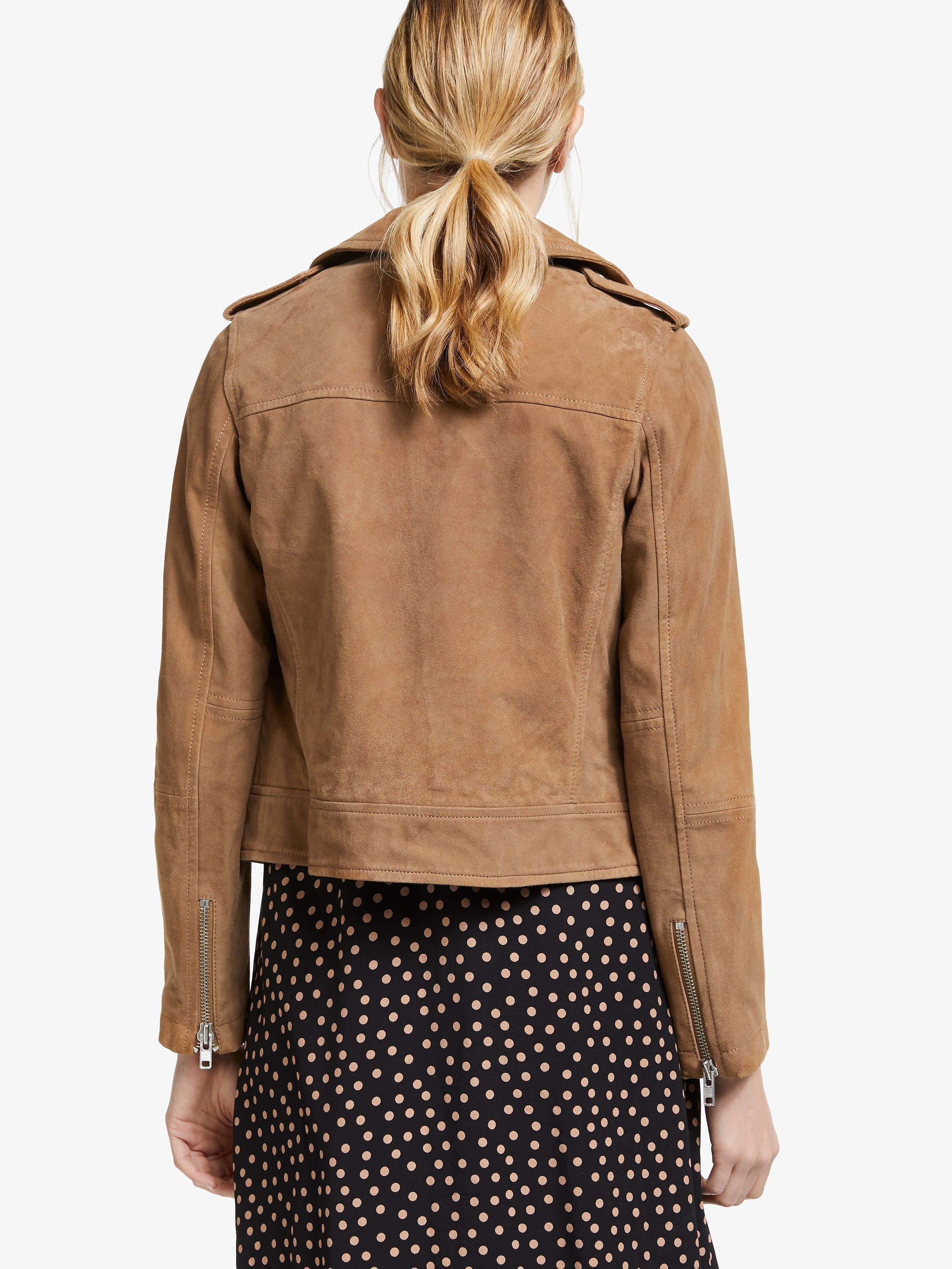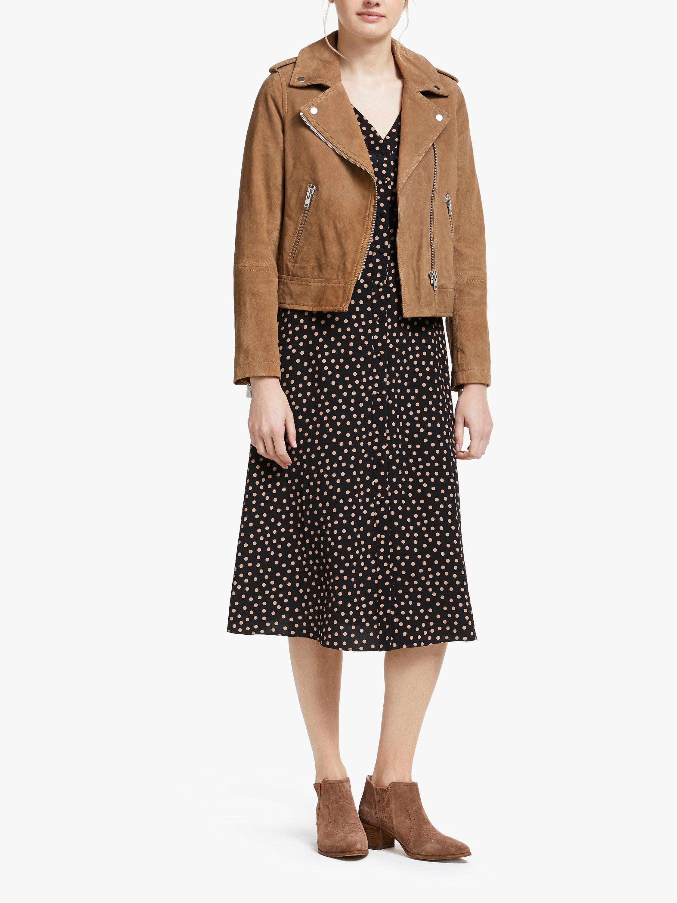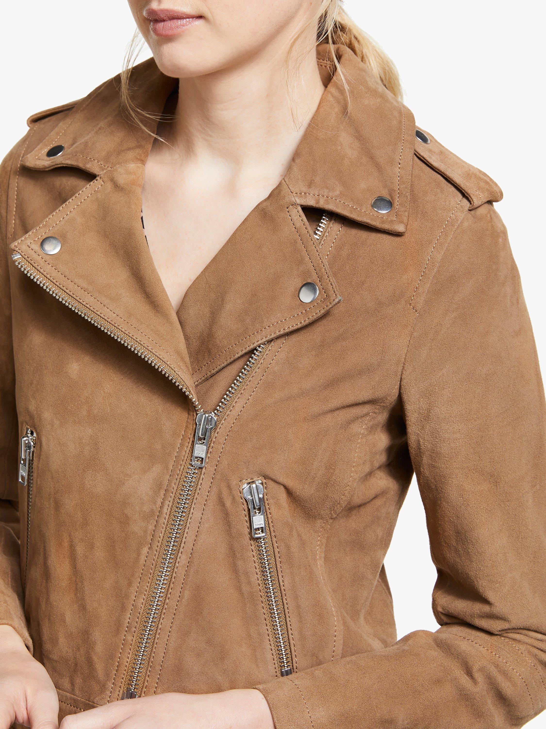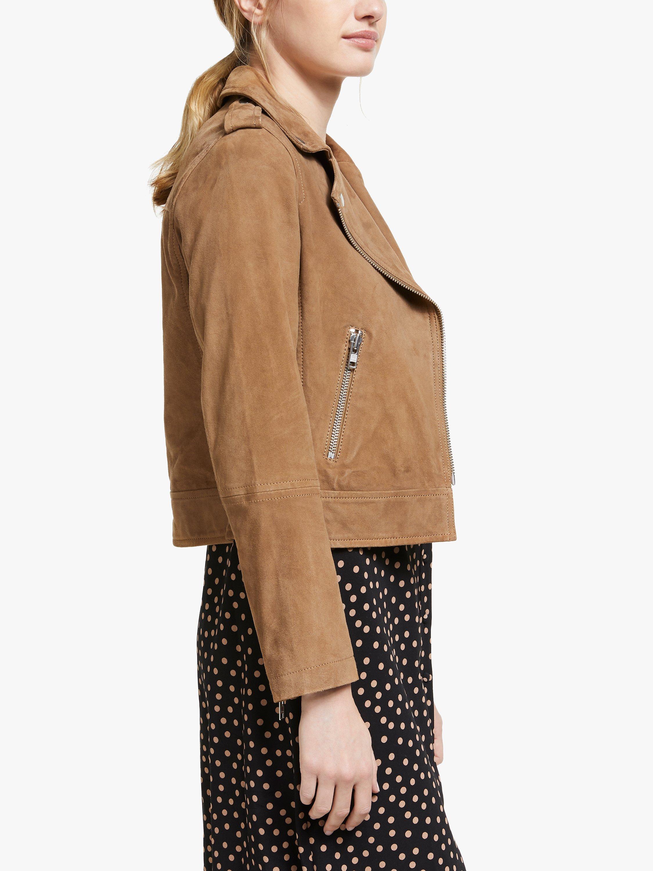 Take one classic style, add an asymmetric zip and heaps of attitude and you've got this take on the leather jacket. This cropped classic is made from the softest suede, which sits perfectly alongside the chunky silver trimmings. Punchy details including: epaulettes, zip pulls and metal press studs that really make a statement. Wear over a floaty dress for a bit of boho chic or with black jeans for a sharp look.