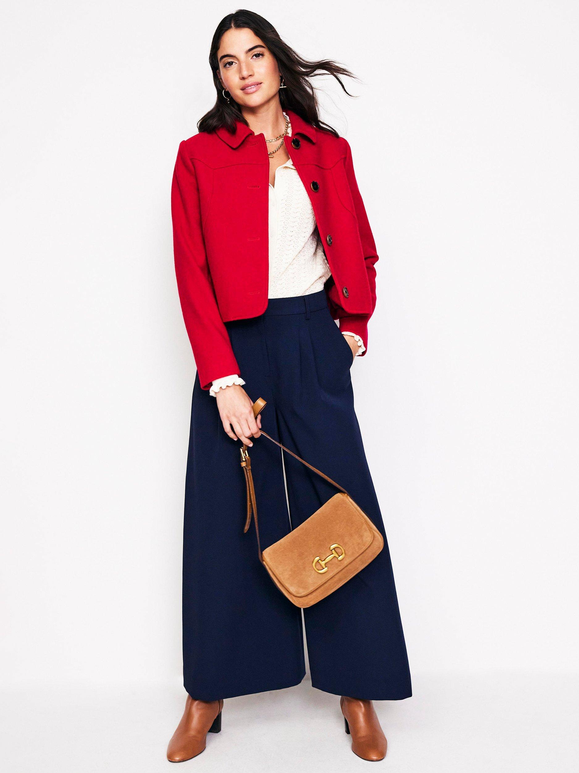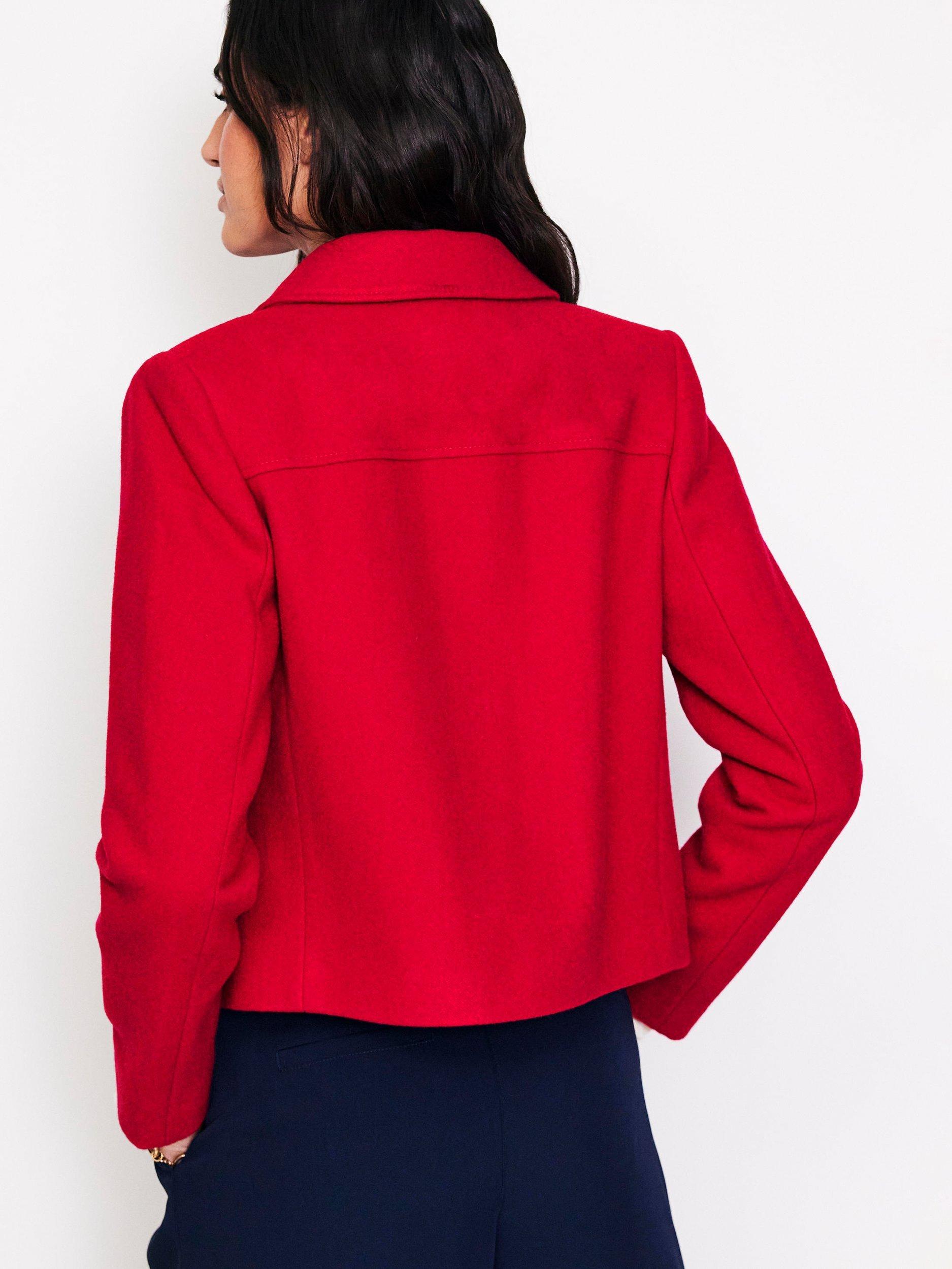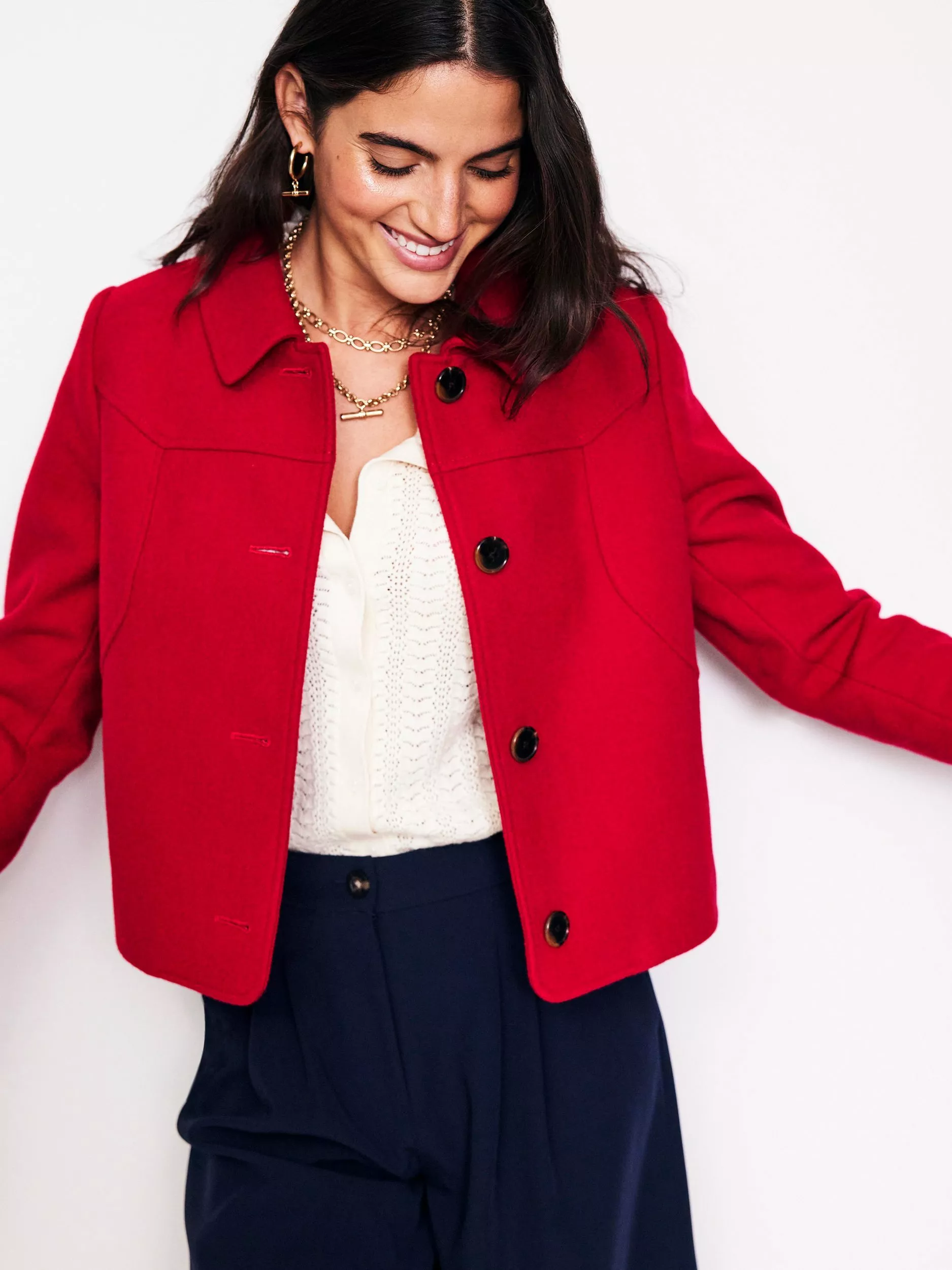 Cut to a cropped silhouette, our Oxford Melton jacket is endlessly versatile. It pairs just as easy with jeans and trainers as it does smart trousers and heels.