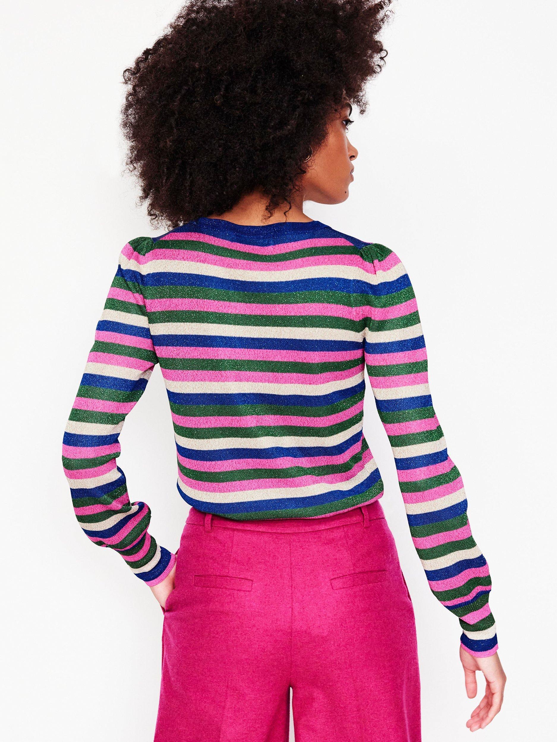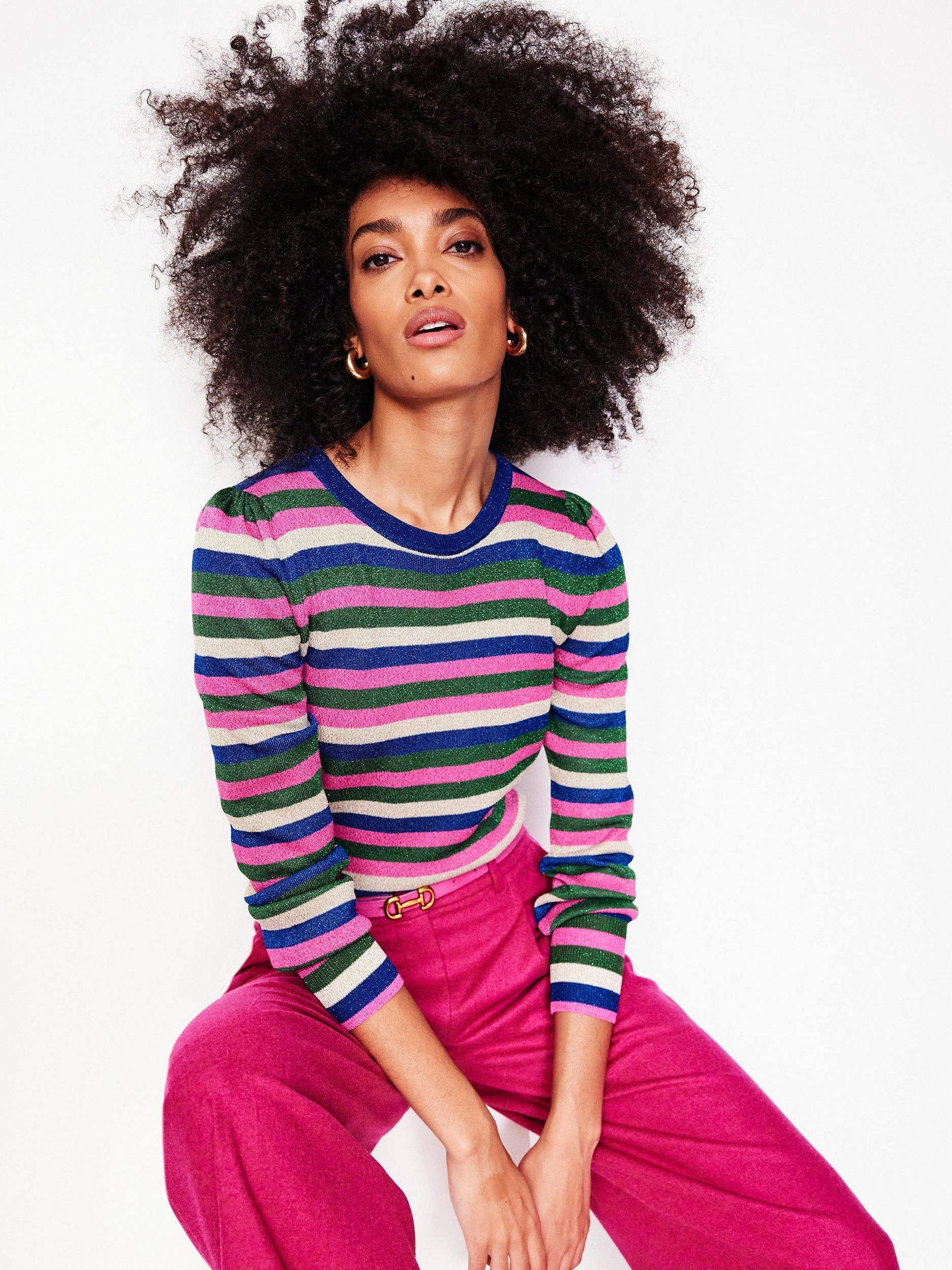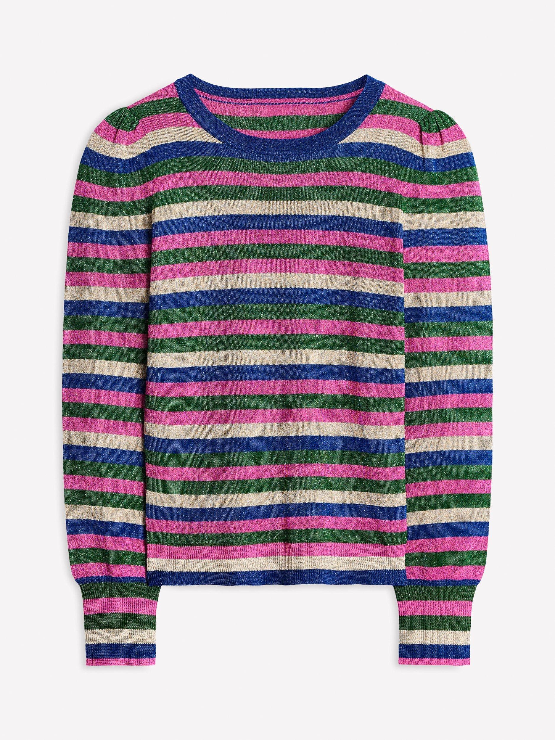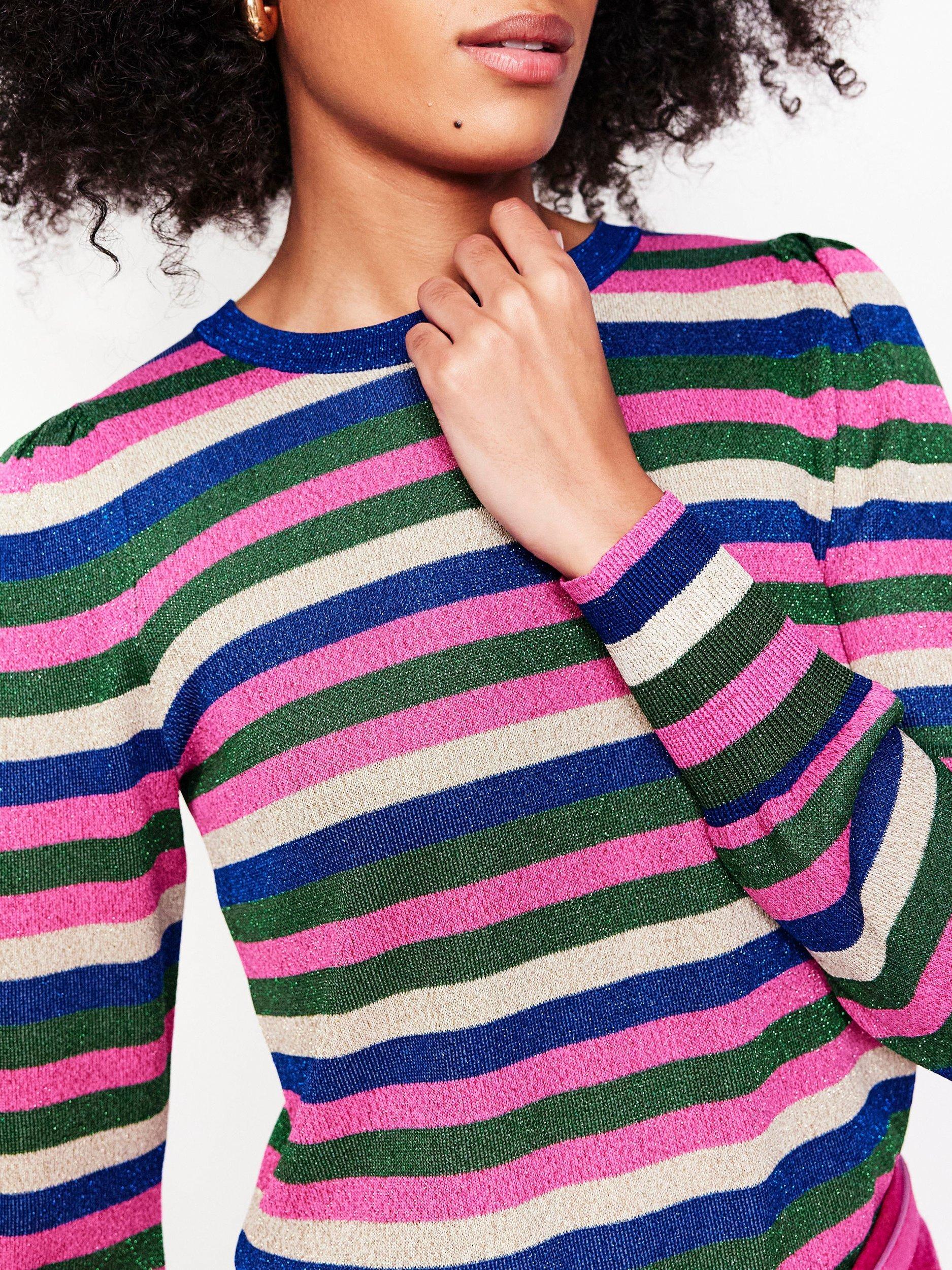 Cosy, rainbow stripes and metallic threads are a combination made in heaven, and luckily all three come together in this jumper.