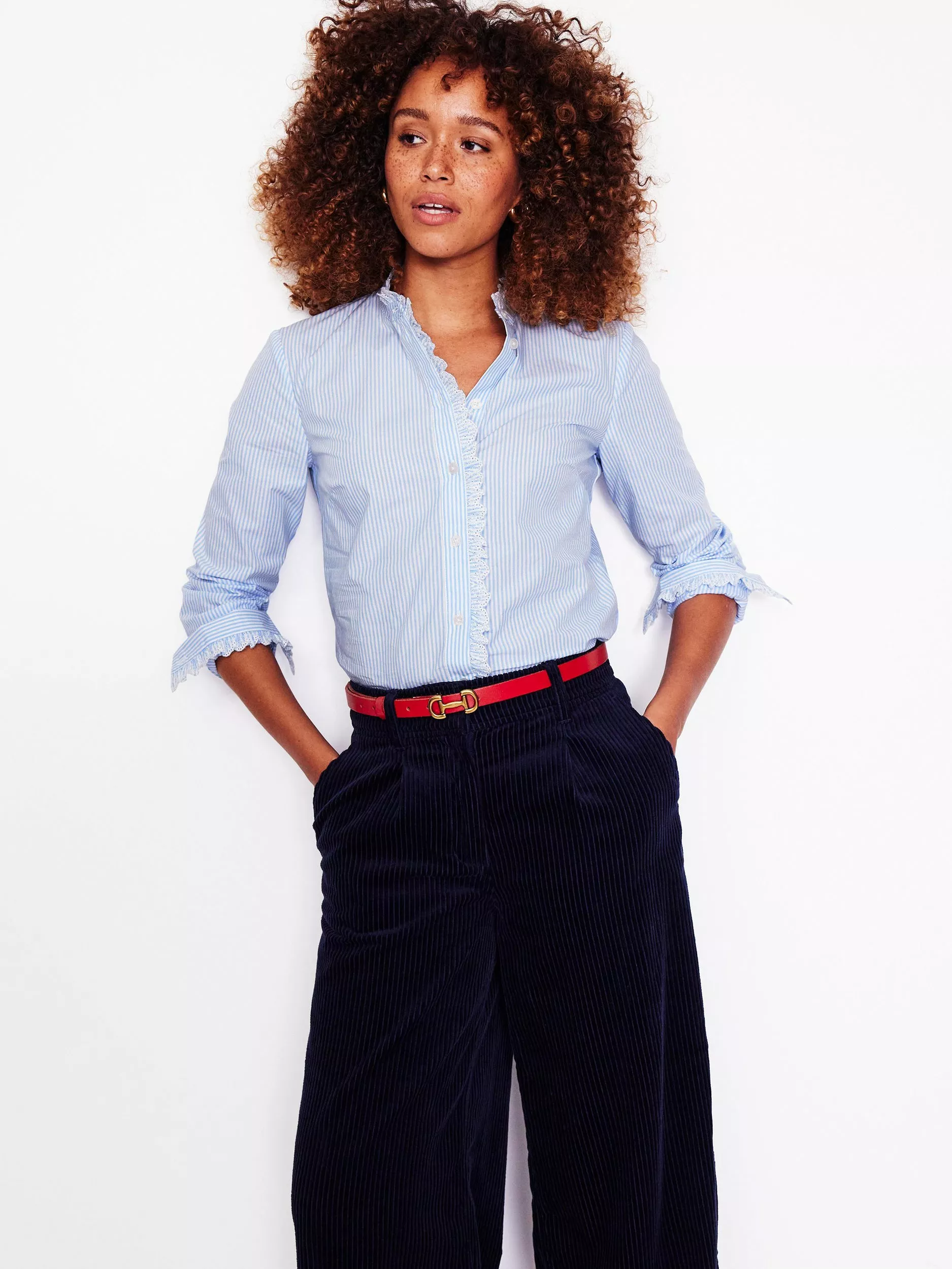 Spun from lightweight cotton poplin, the Phoebe shirt is an everyday style that feels a bit more special thanks to the ruffled trims. Wear it loose or tucked into high-rise jeans.