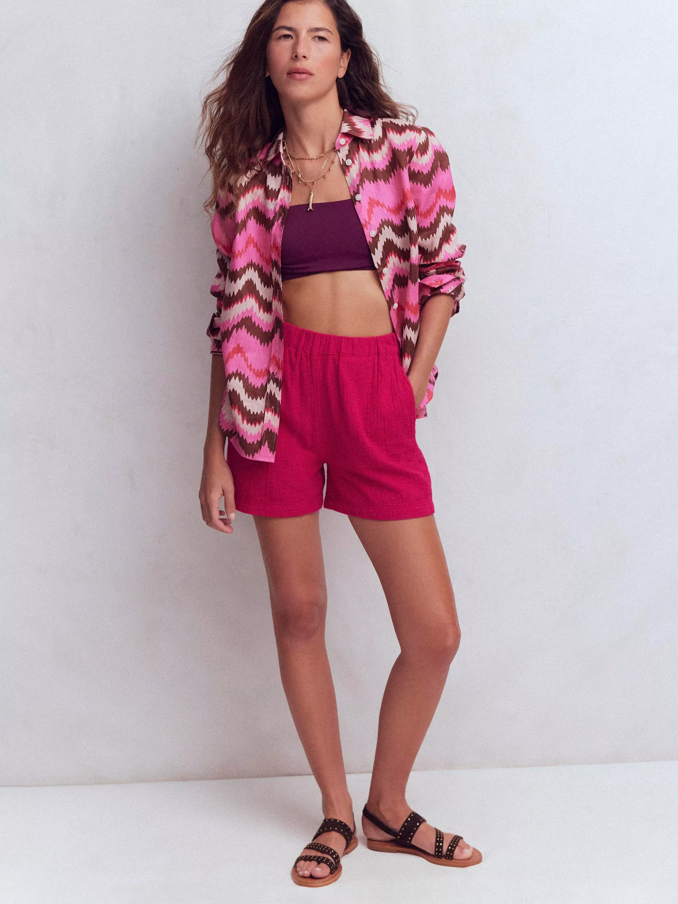 Holiday booked? Roll these double cloth shorts into your suitcase. Trust us, you'll live in them every day. They're lightweight, 100% cotton and easy to pull on over swimwear with an open linen shirt.