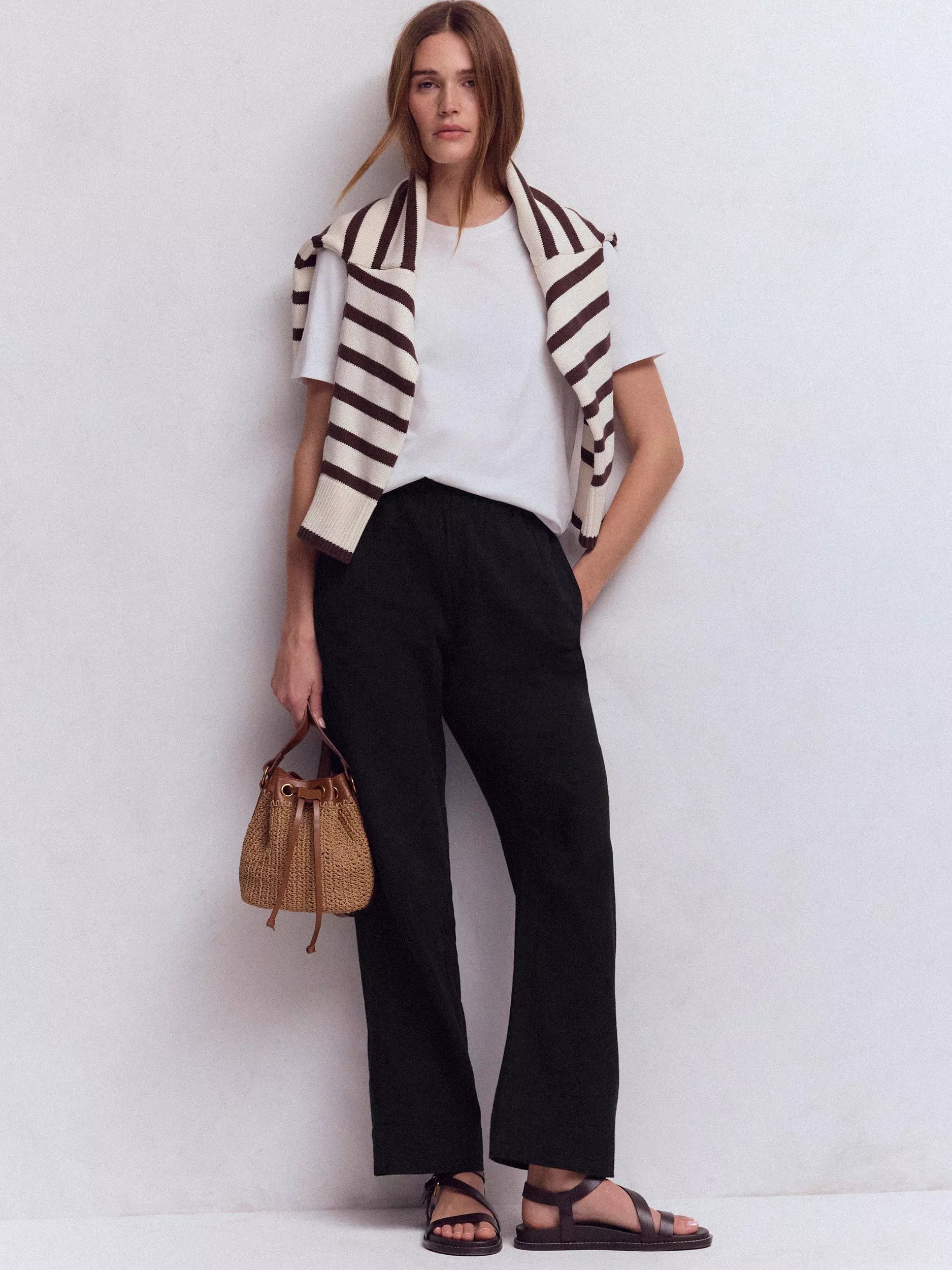Double cloth cotton balances durability and breathability for everyday trousers, perfect for warmer days. This versatile pair has an elasticated waistband and pockets for practicality.