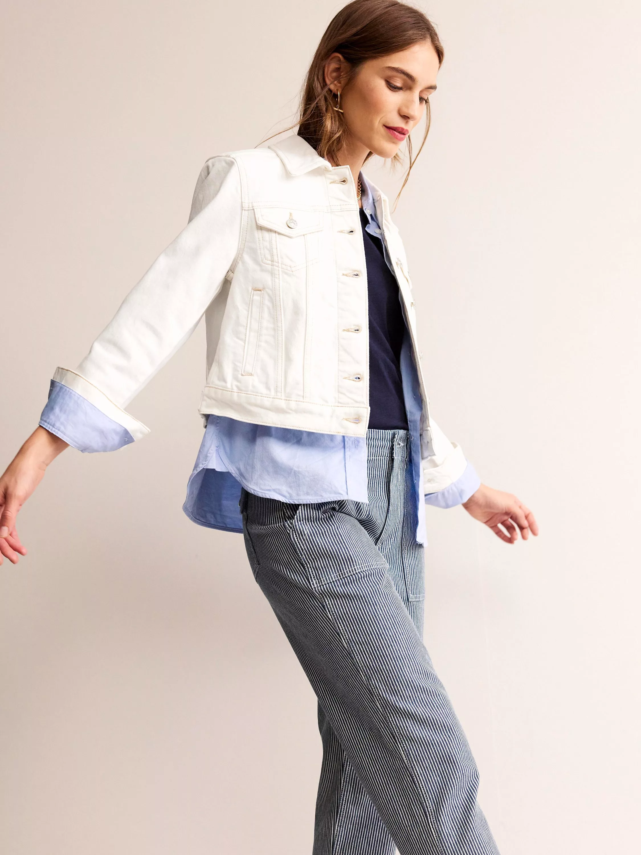 In a timeless style that layers over everything, this denim jacket from Boden sits at the hip for versatile coverage.