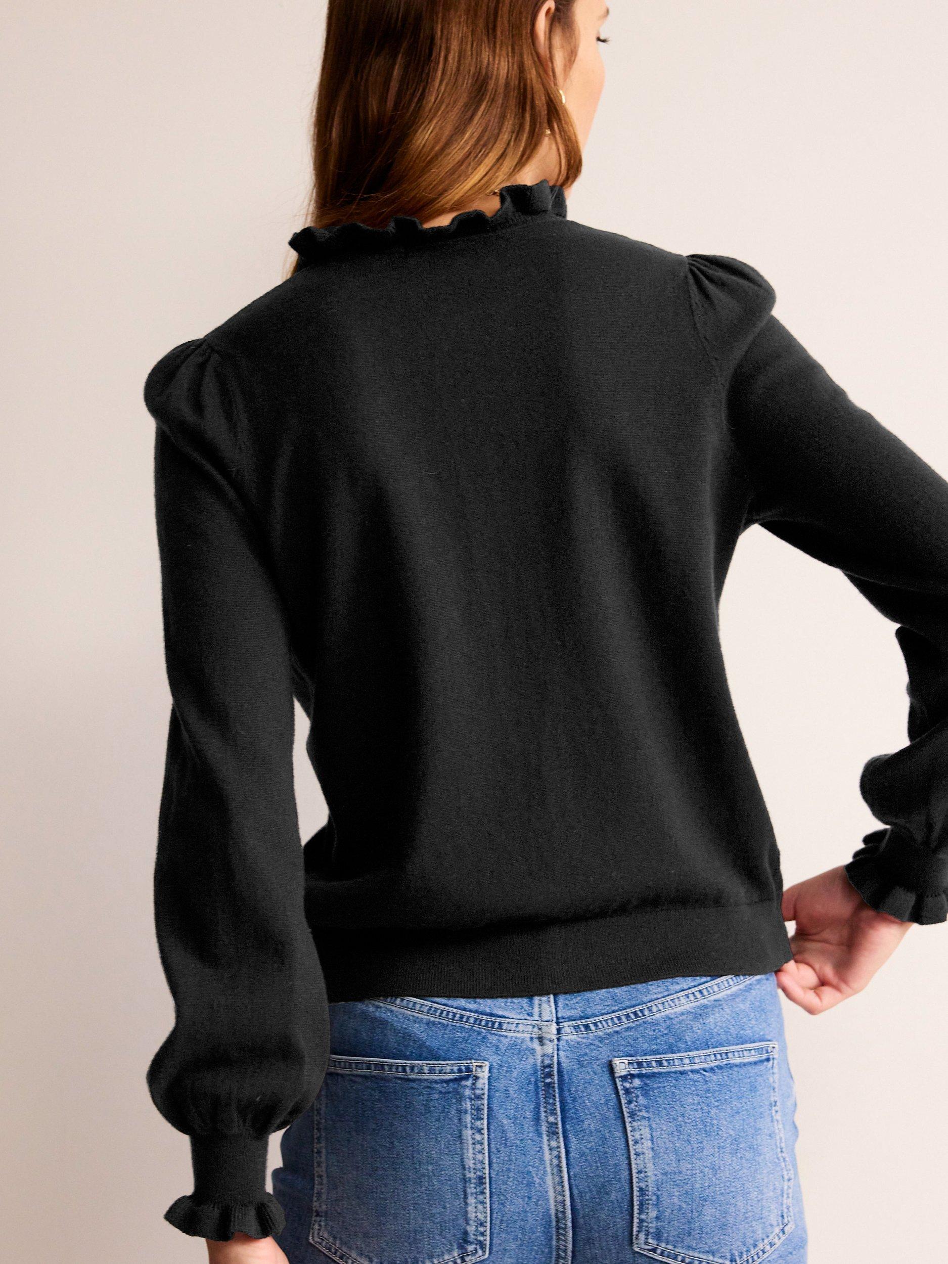 Boden are firm believers that you can never have too many layers to keep you snug in the winter months, so they've made another. This cardigan is shaped with a high neck and cuffs trimmed in ruffles.