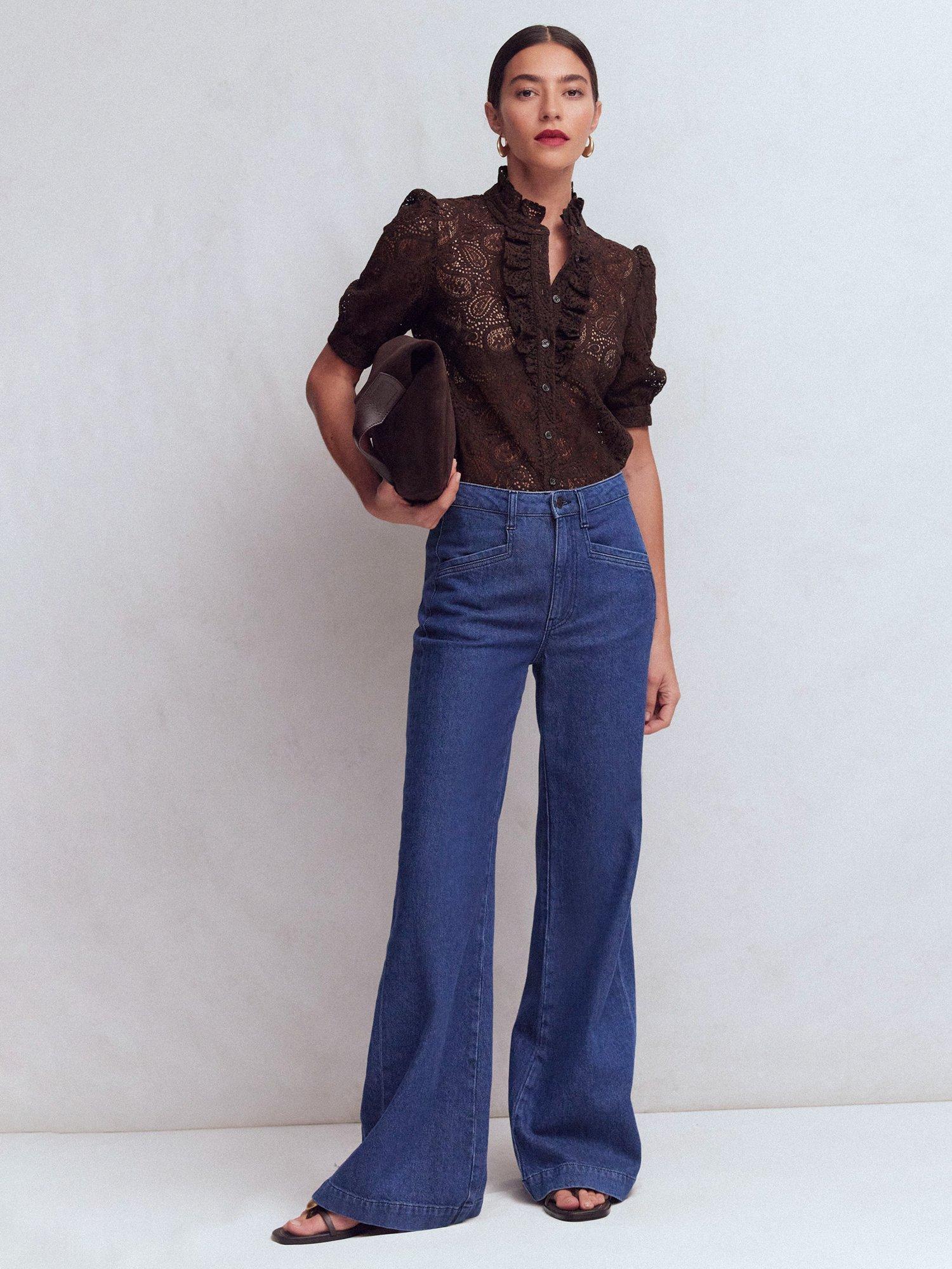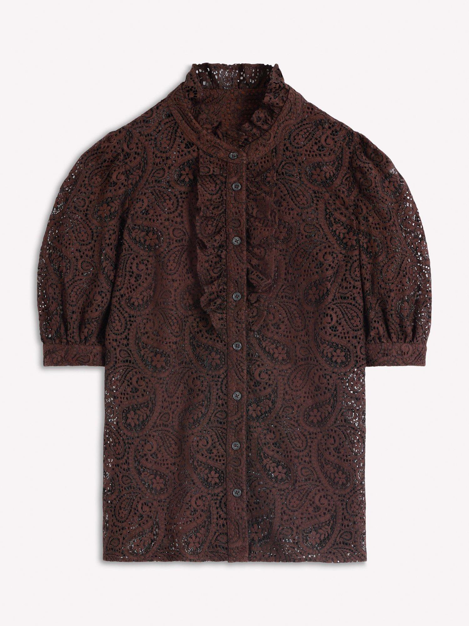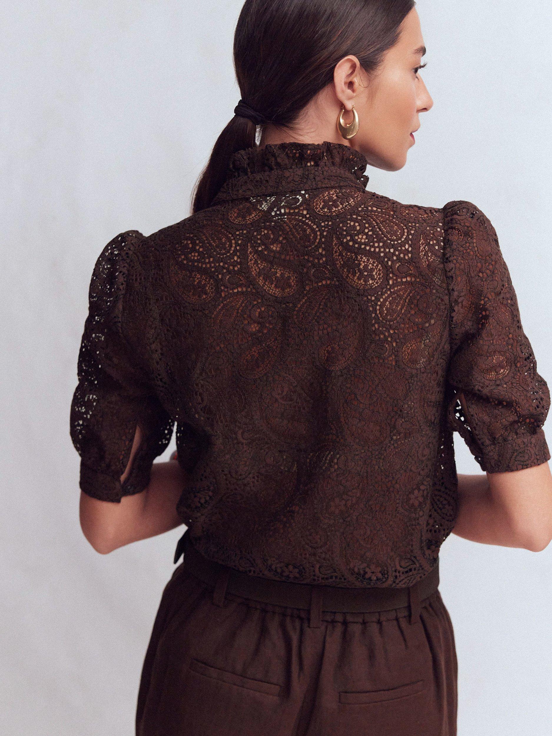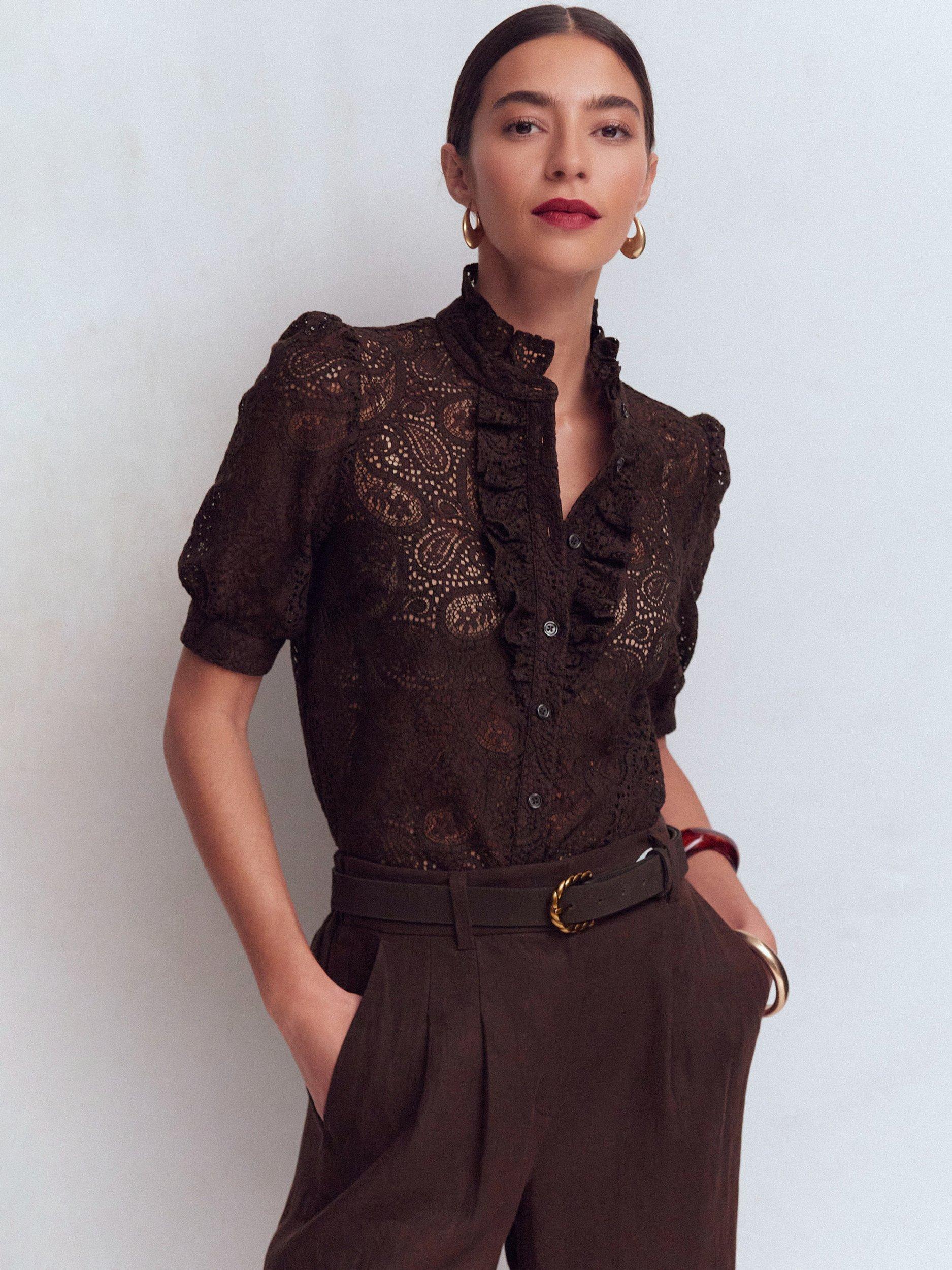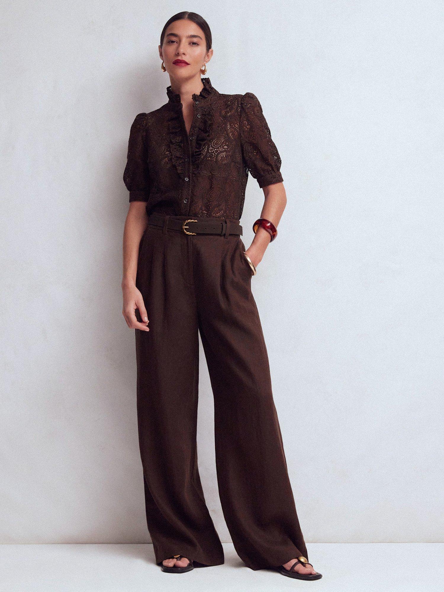 BodenSasha Ruffle Short Sleeve Shirt, Java Brown