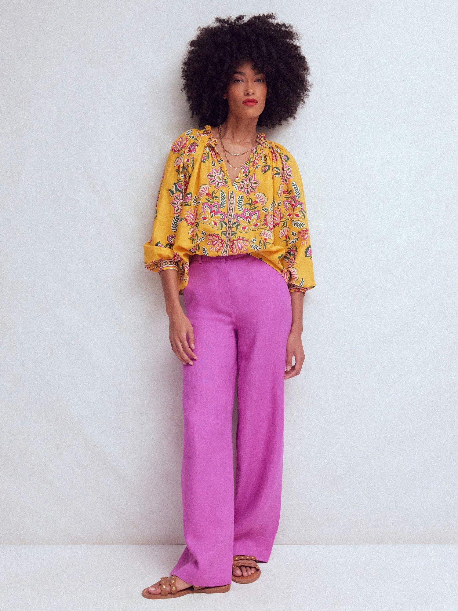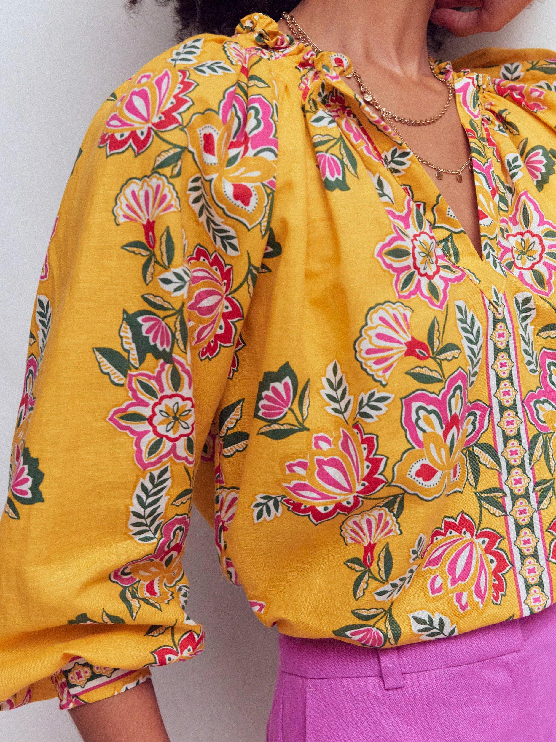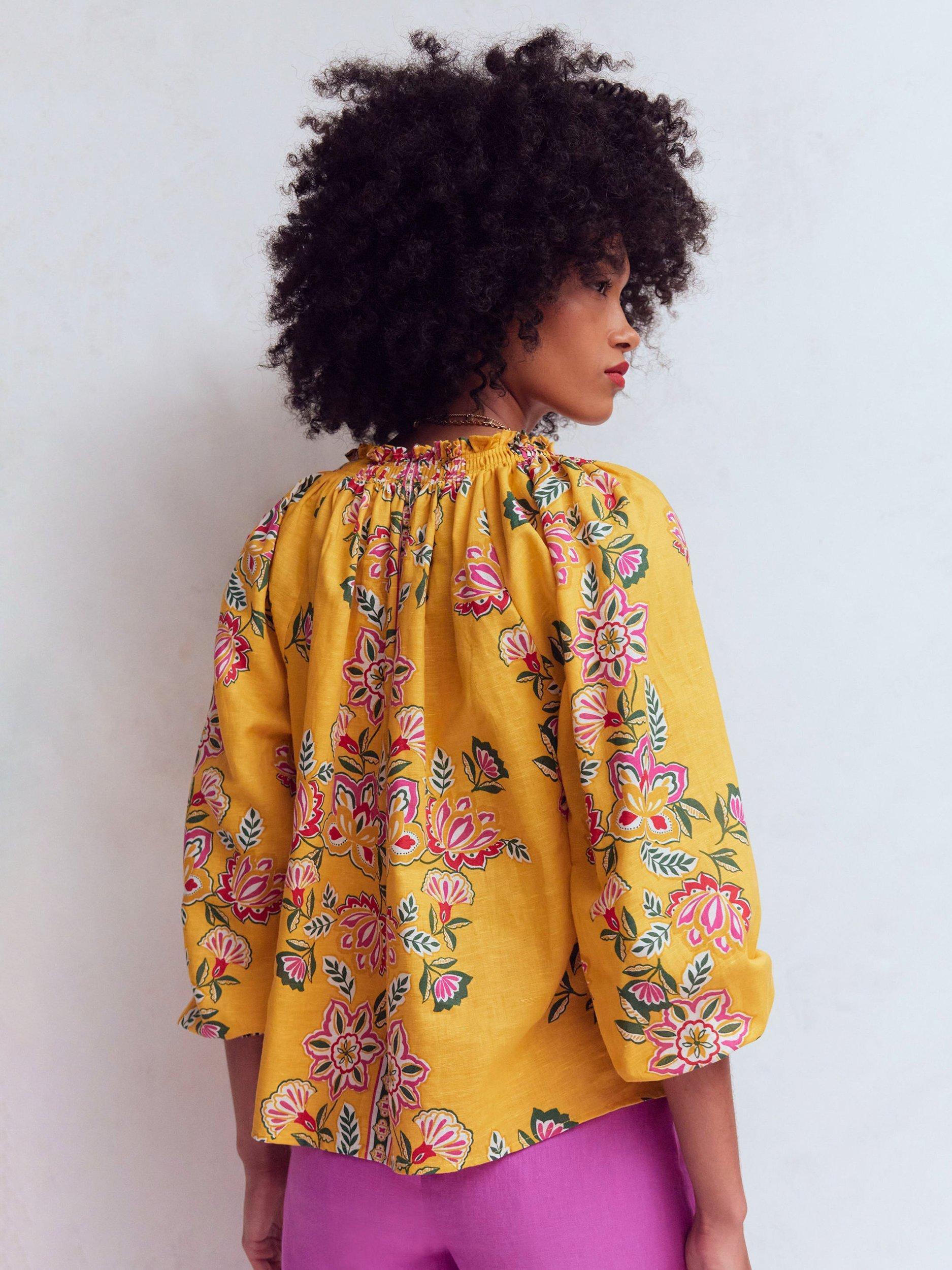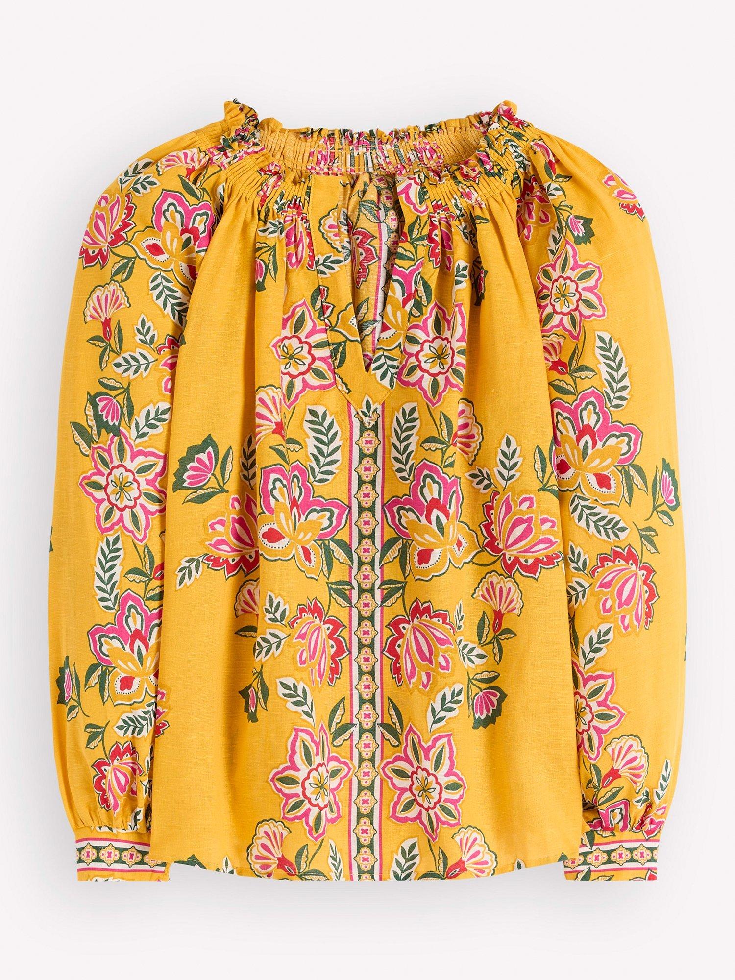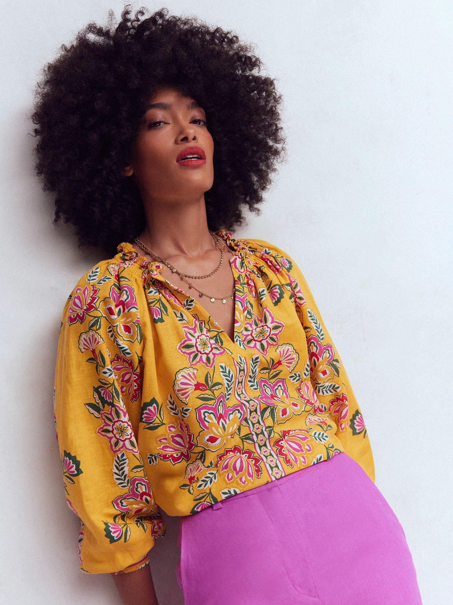 Crafted with a blend of natural, breathable linen, this floaty top is designed with pleats and gentle gathers for a laid-back, relaxed look.