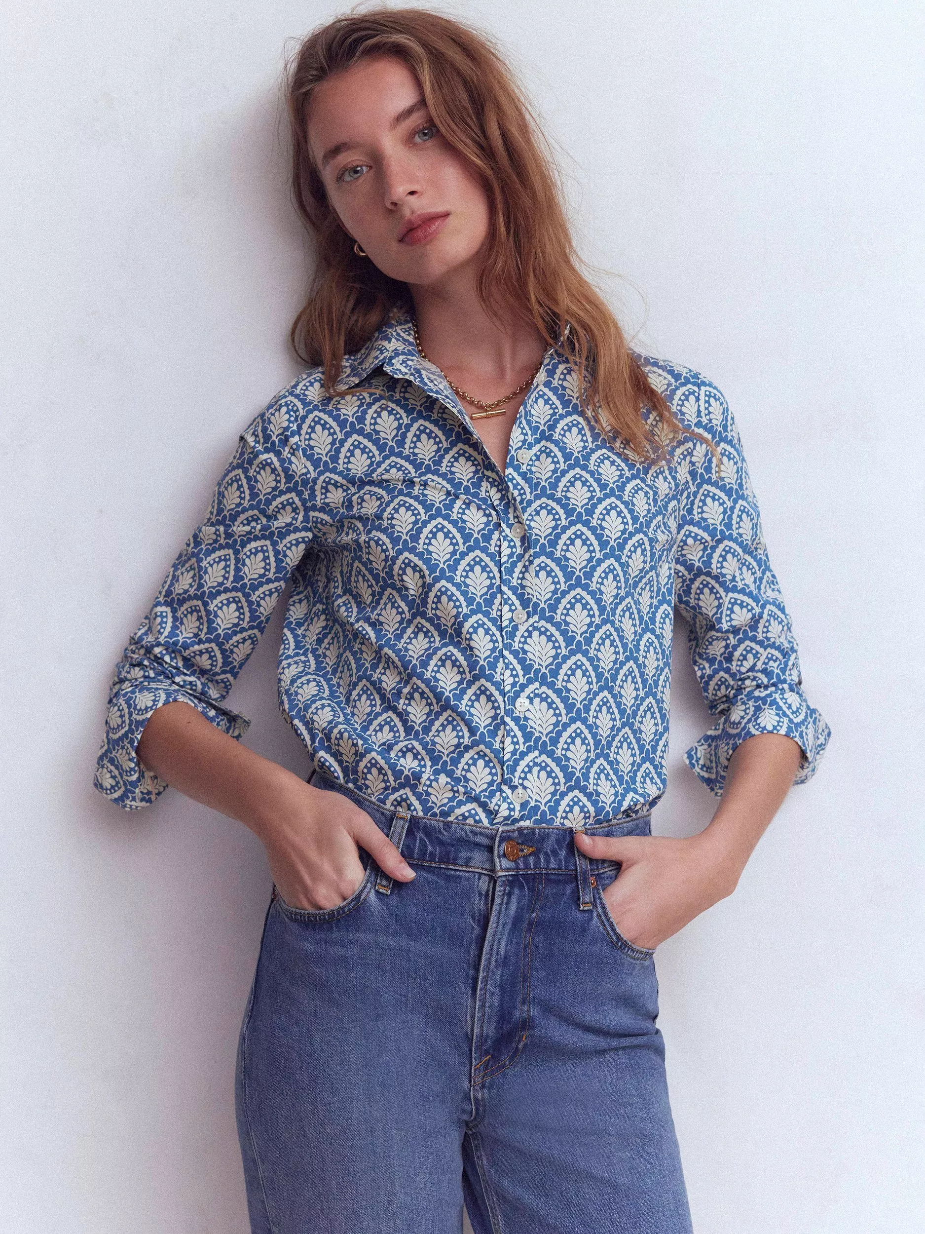 Crisp 100% cotton keeps the straight-fitting shape of the Sienna shirt. Enjoy the flattering curved back hem and sharp collar.
