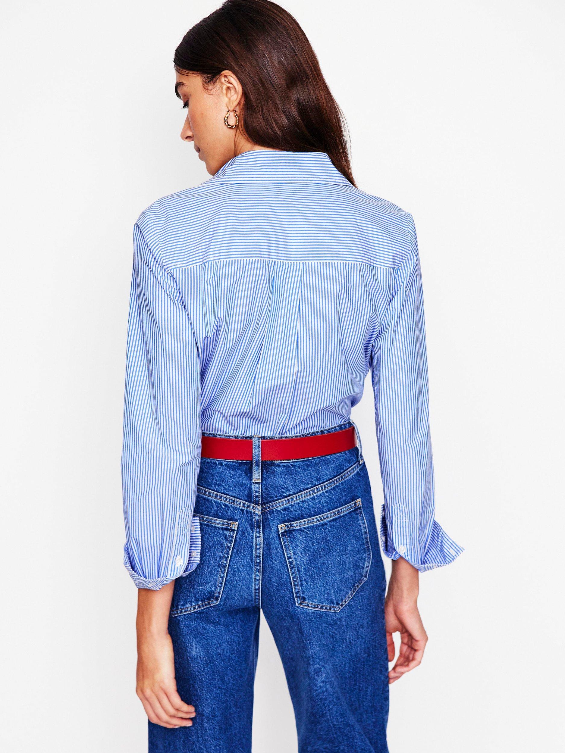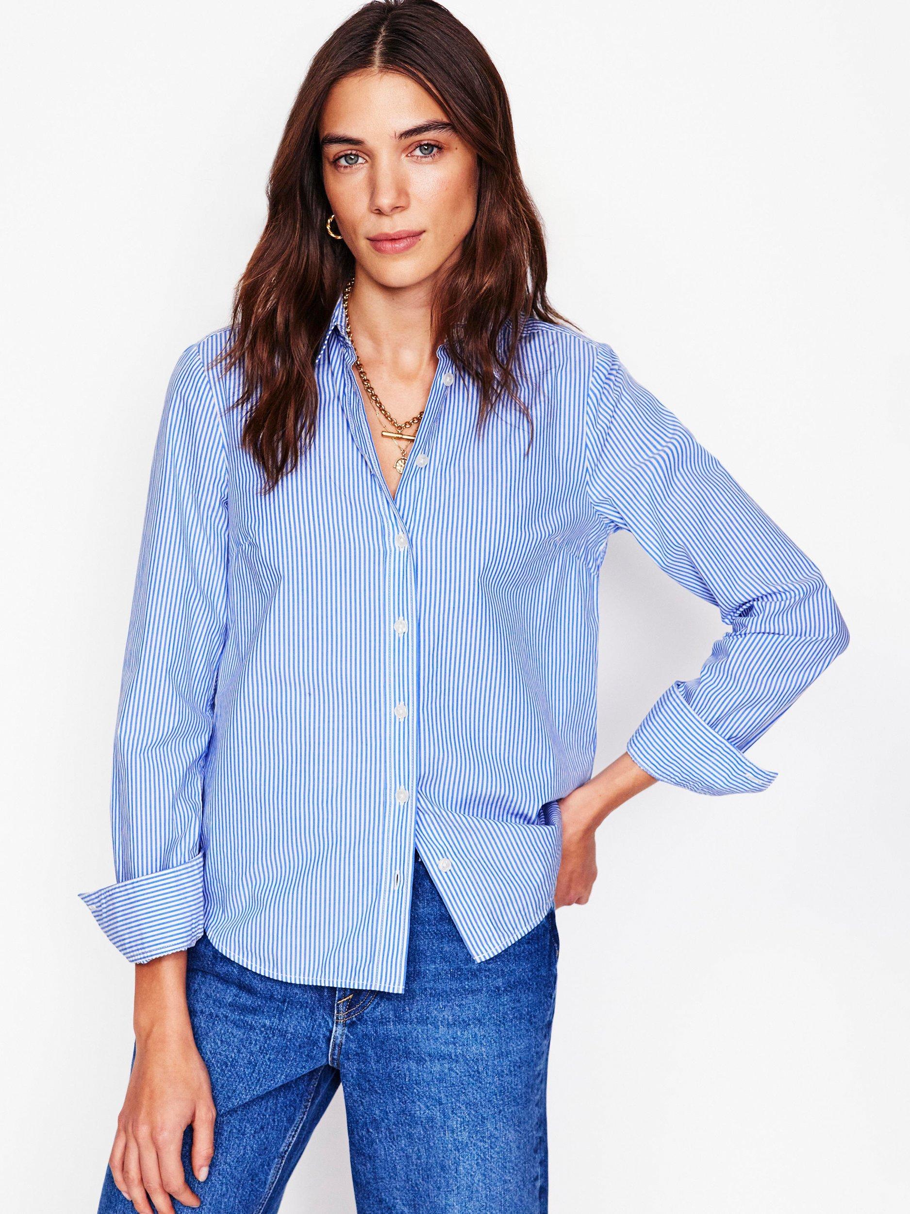 Crisp cotton keeps the straight-fitting shape of our Sienna shirt. It has a curved hem at the back for easy layering.