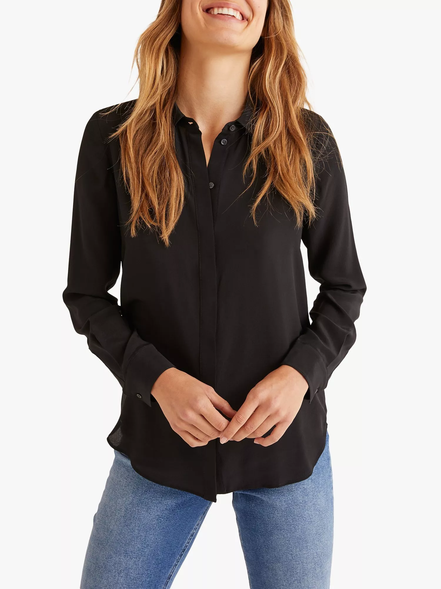 Made from sand-washed silk, this relaxed fit shirt with a smart collar and a hidden button-up front from Boden is beautifully soft to the touch. Wear with tapered trousers and loafers to tap into the borrowed-from-the-boys trend or tuck into a fitted pencil skirt for a feminine update.