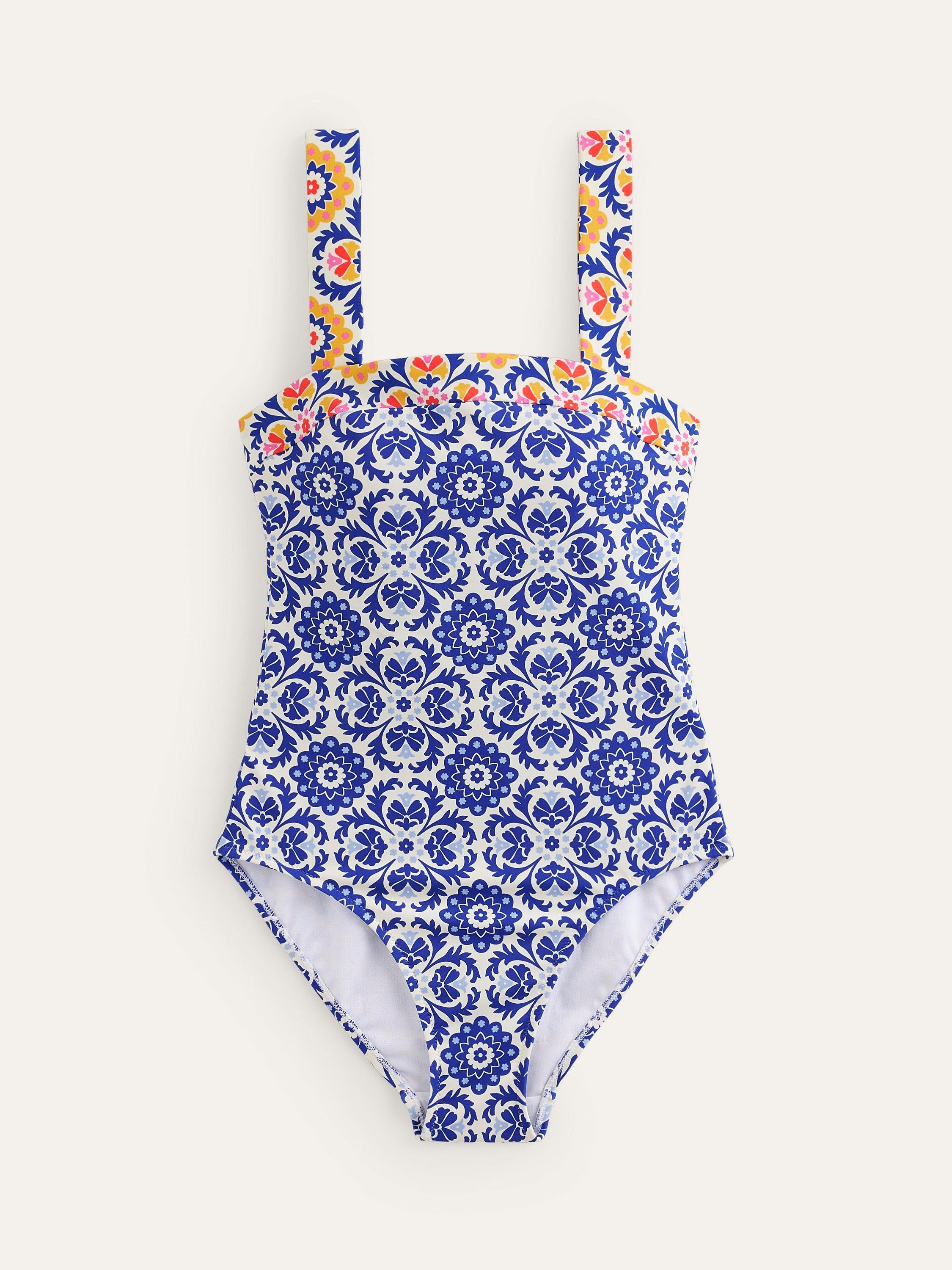 Artfully blanketed with a colourful abstract print, this swimsuit from Boden is designed with a flattering square neckline and a low back to help you soak up as much sun as possible.