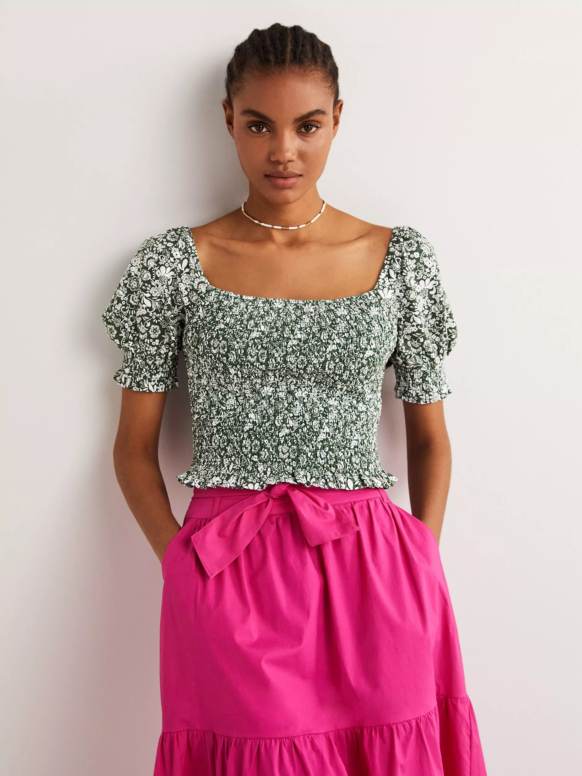 The foundation to all your looks, this top from Boden will instantly lift your mood with its bloom-filled floral print and all over frills.