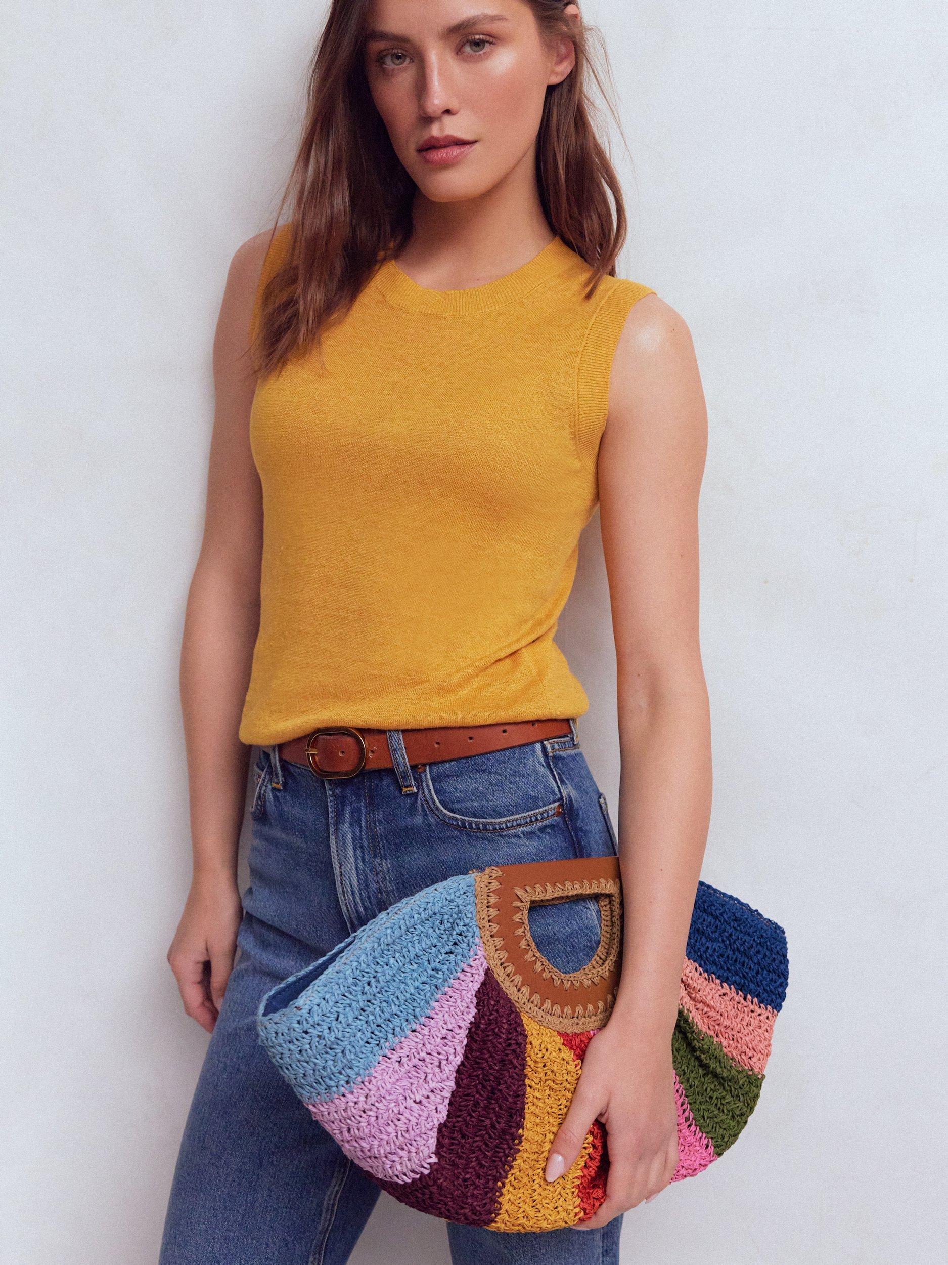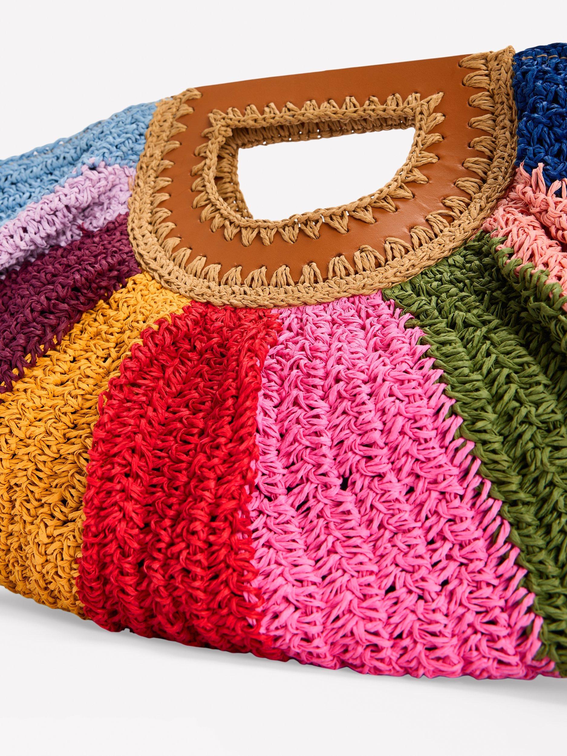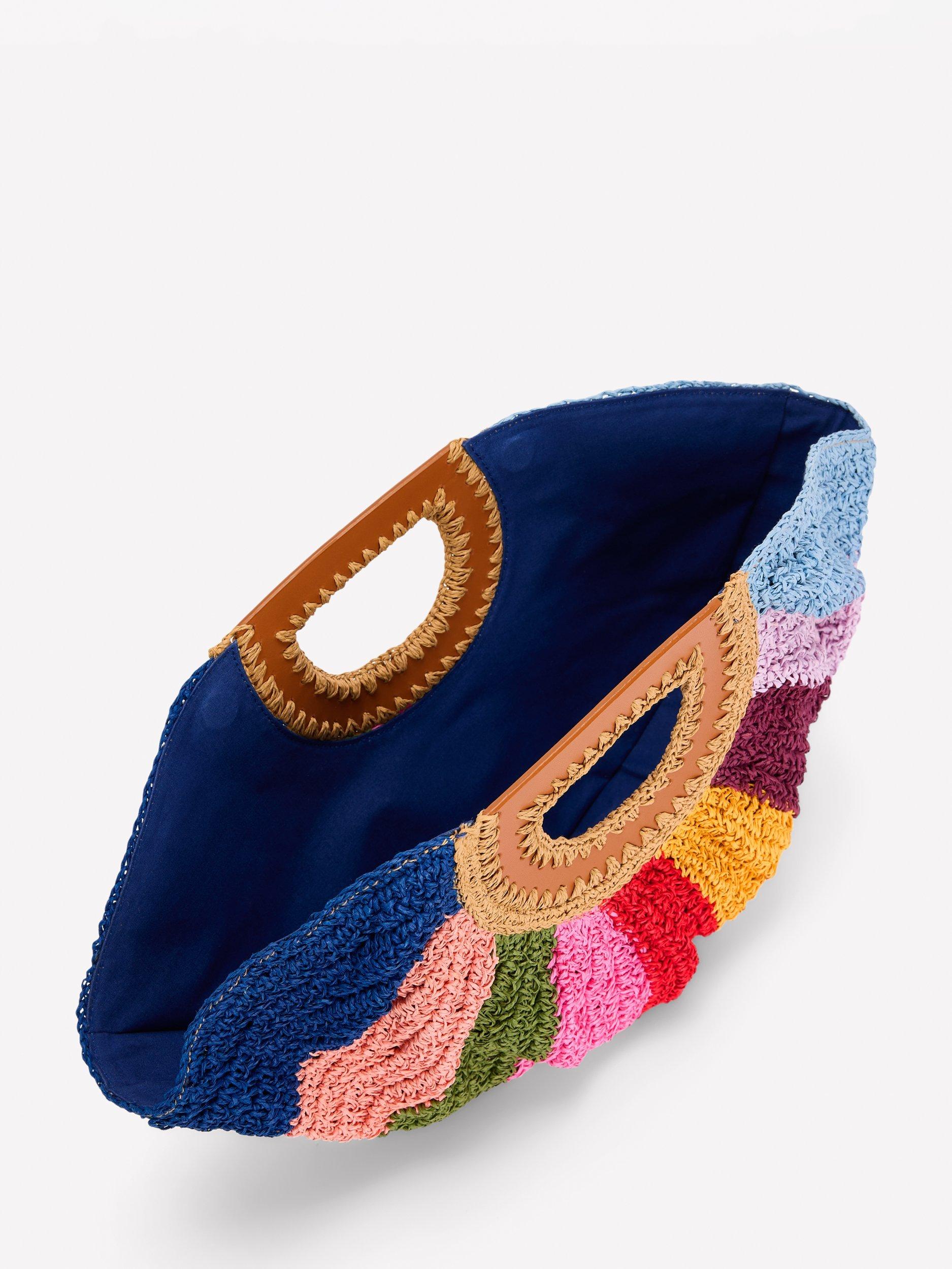 No beach escape is complete without a colourful raffia bag. This statement half moon clutch is best accessorised with palm trees and a pina colada. And that’s an order.