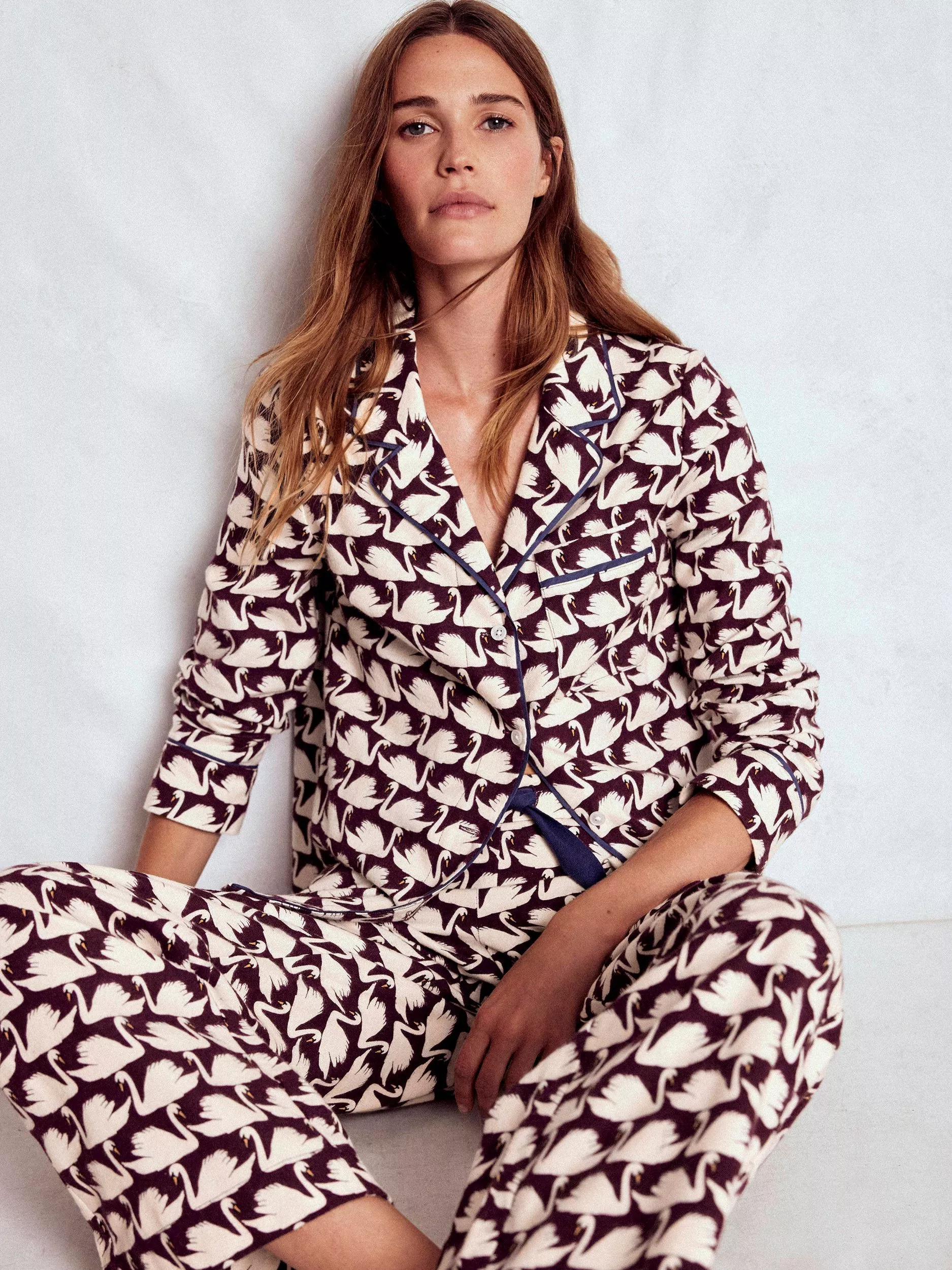Brushed cotton, proper piping and a relaxed fit topped with signature Boden prints make a classic modern pyjama shirt that's sure to bring on a good night's sleep.