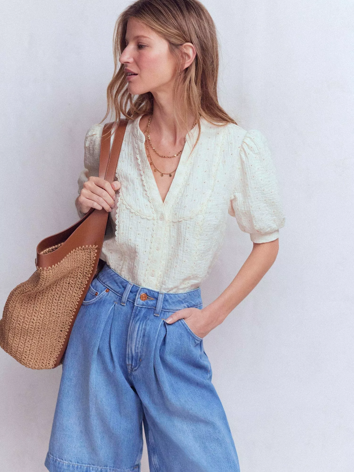 Double cloth cotton has a light, cool feel. Perfect for this floaty textured top. Tuck it into your favourite jeans and make even running errands look elegant.