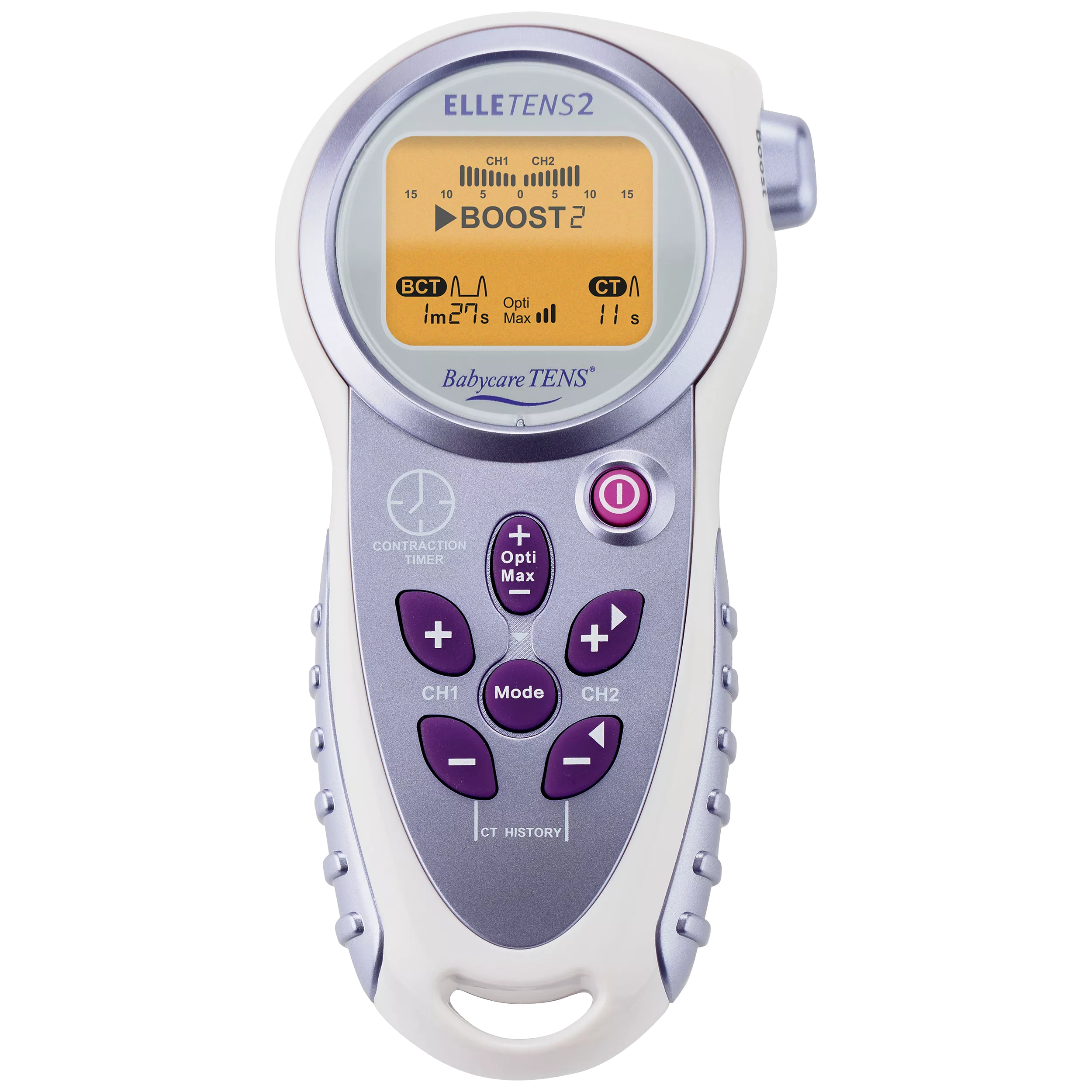 The Elle TENS2 maternity TENS machine has all the award-winning features of the Elle TENS, plus a contraction timer, recording your last 5 contractions and in-between contractions. With a new, updated user interface and backlight, the Elle TENS2 is ready for all of your labour and post-natal needs.