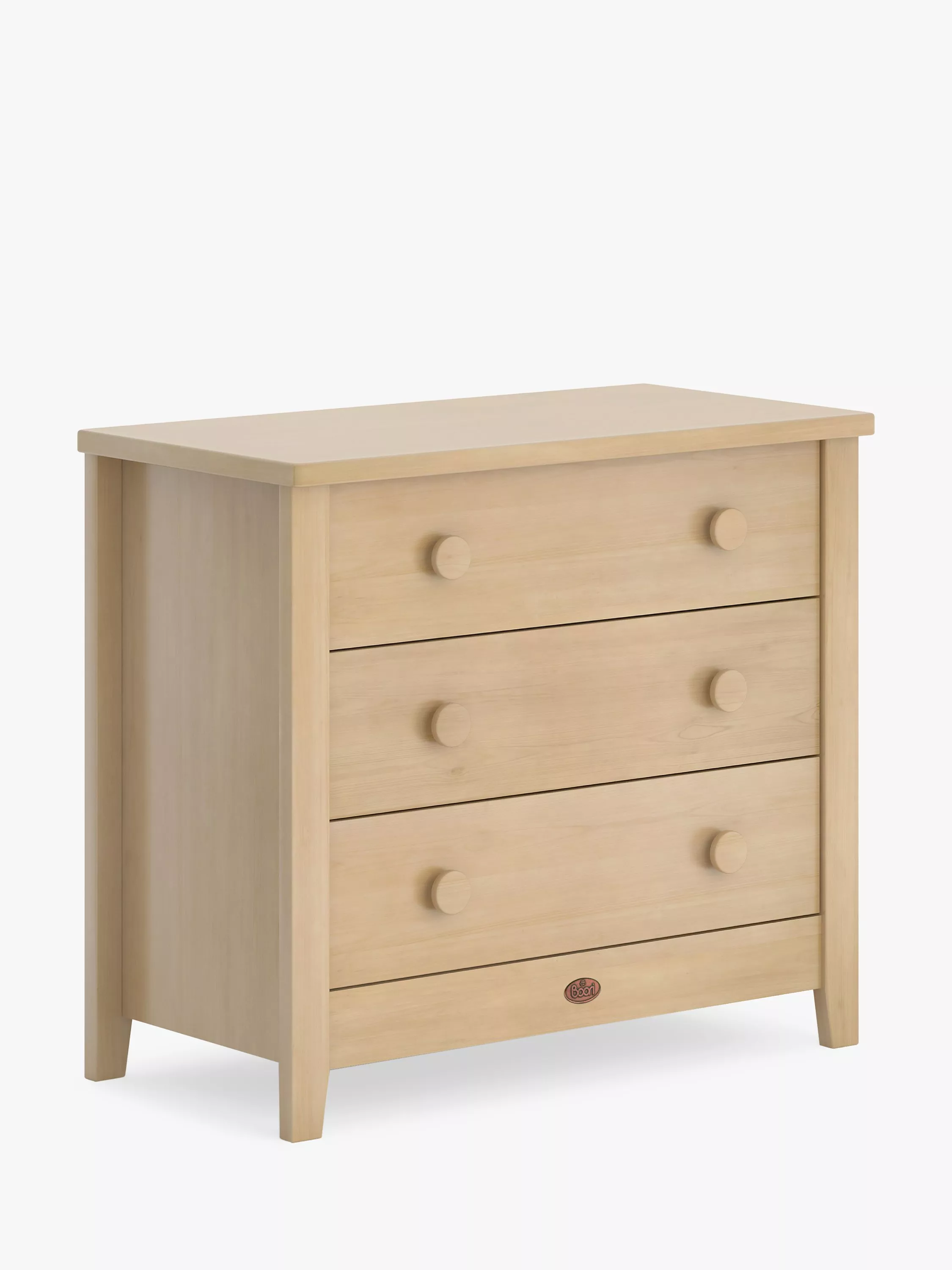 With a stylish design, Boori's 3 drawer chest offers an elegant storage solution for nurseries and bedrooms. The wooden handles and chest top nod to their love of natural materials and the finish complements a range of furniture. Featuring 3 fully-extendable drawers, this chest of drawers features plenty of room for clothing, bedding or accessories. If you'd like to use it in the nursery, a changing mat can be placed on top for easy and convenient changing.