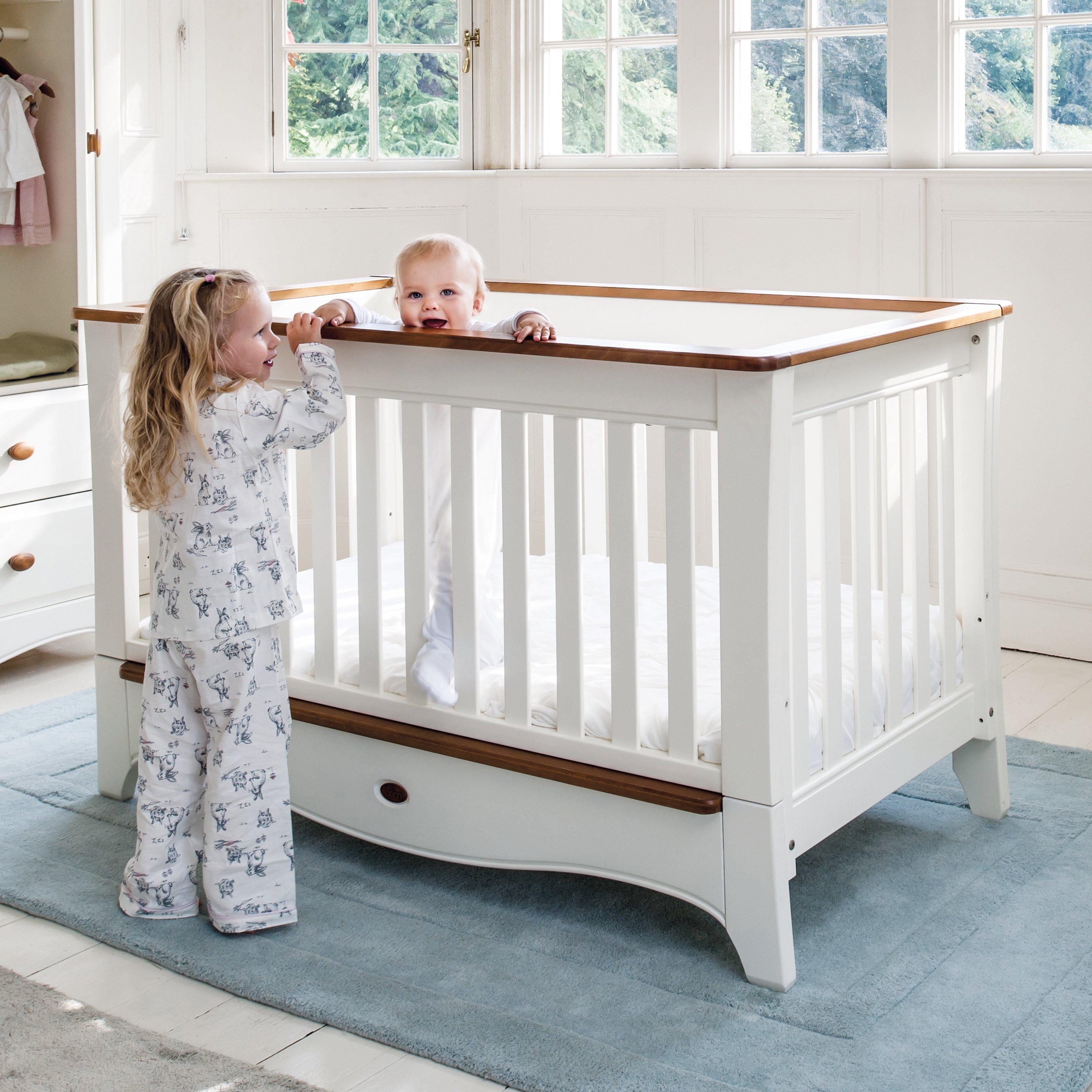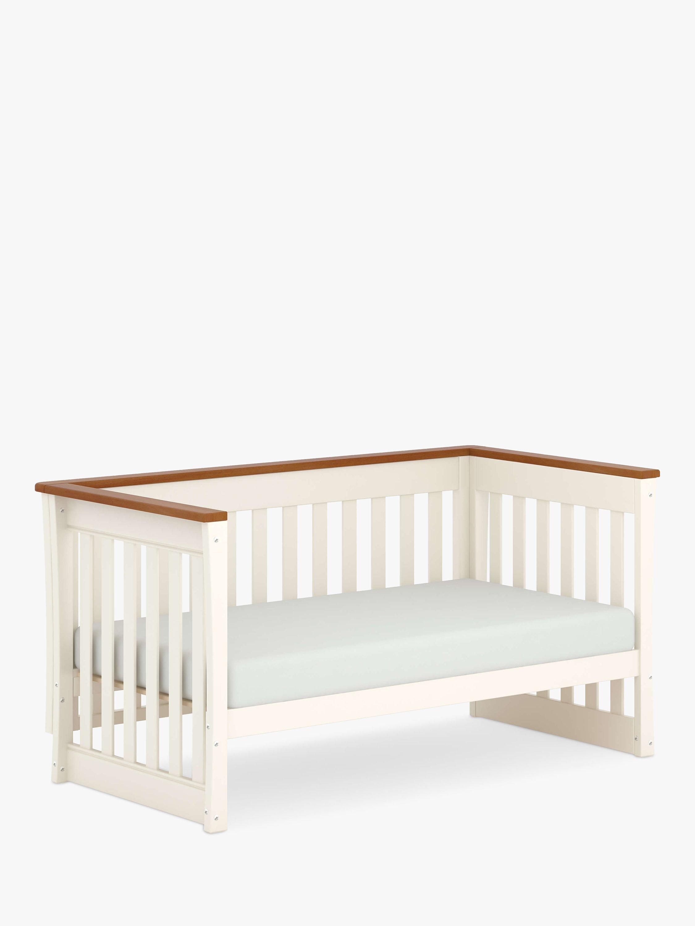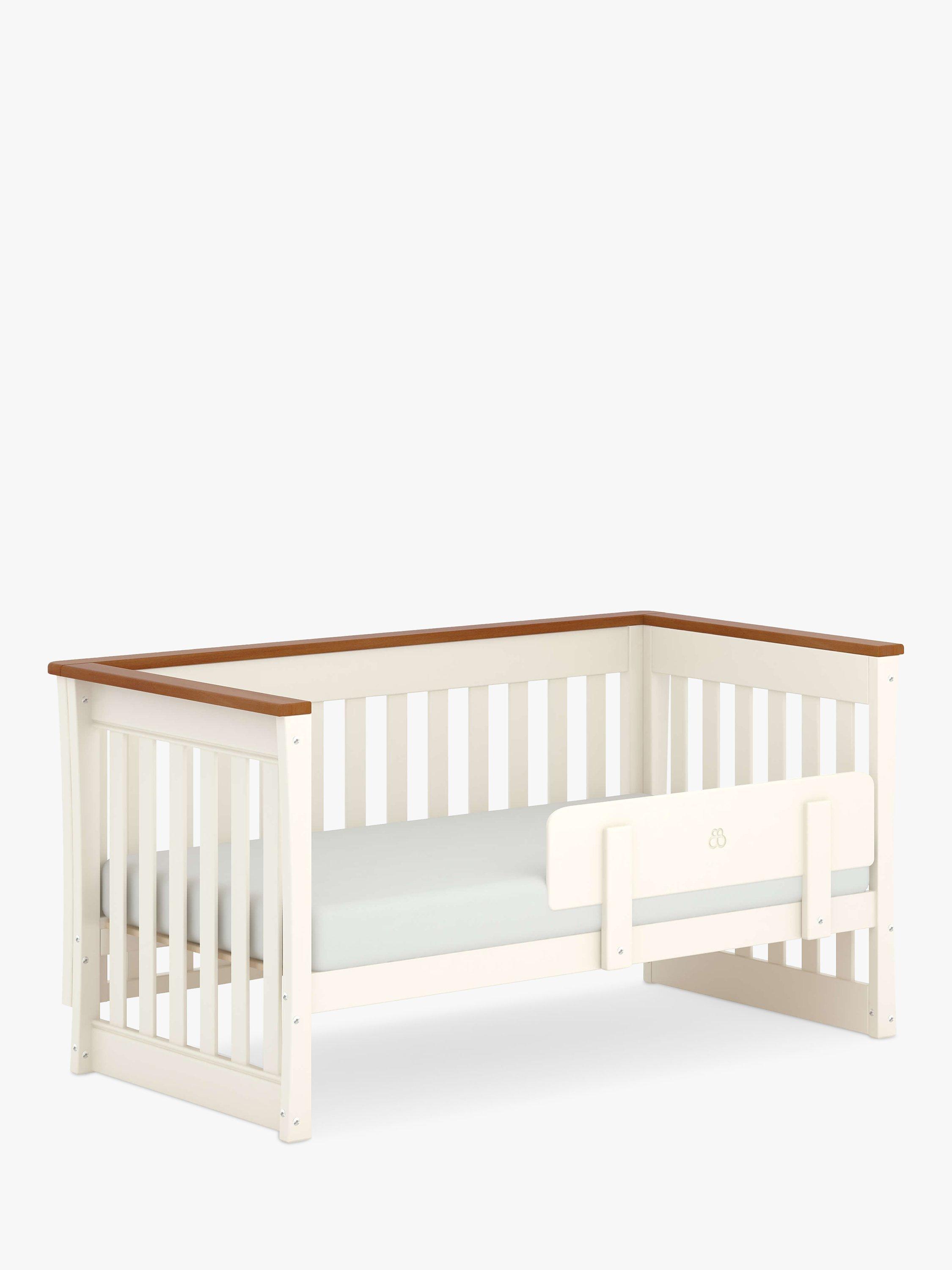 Made from solid cotton wood, the cotbed has two base heights for ease of access and to keep baby safe, this cotbed is suitable from birth to around 3 years old. At this stage, it converts easily into a toddler bed by removing the side rail and adding the toddler guard (included). This toddler bed is suitable for a child up to approximately 5 years of age.