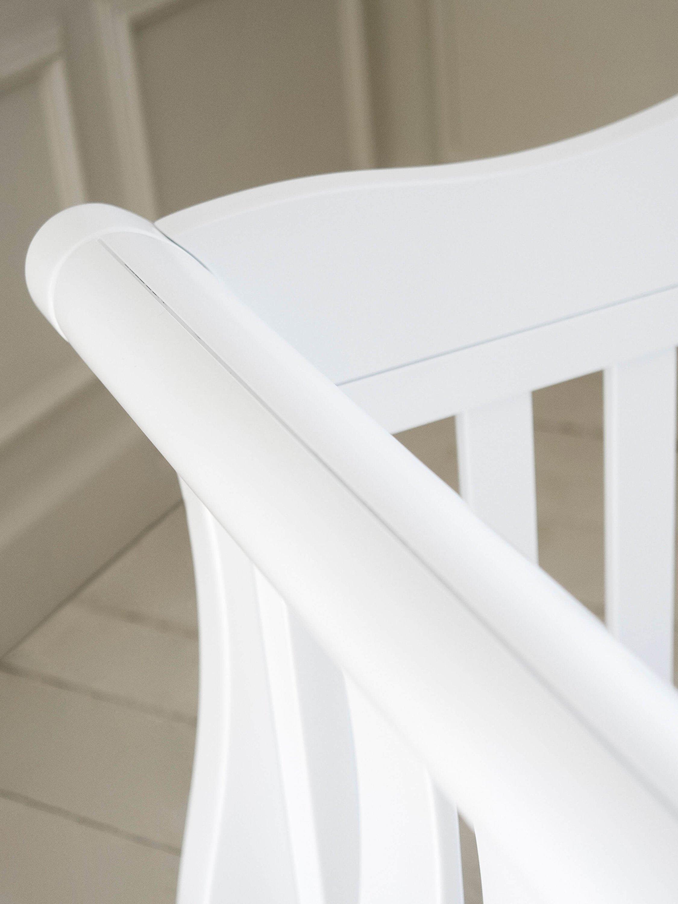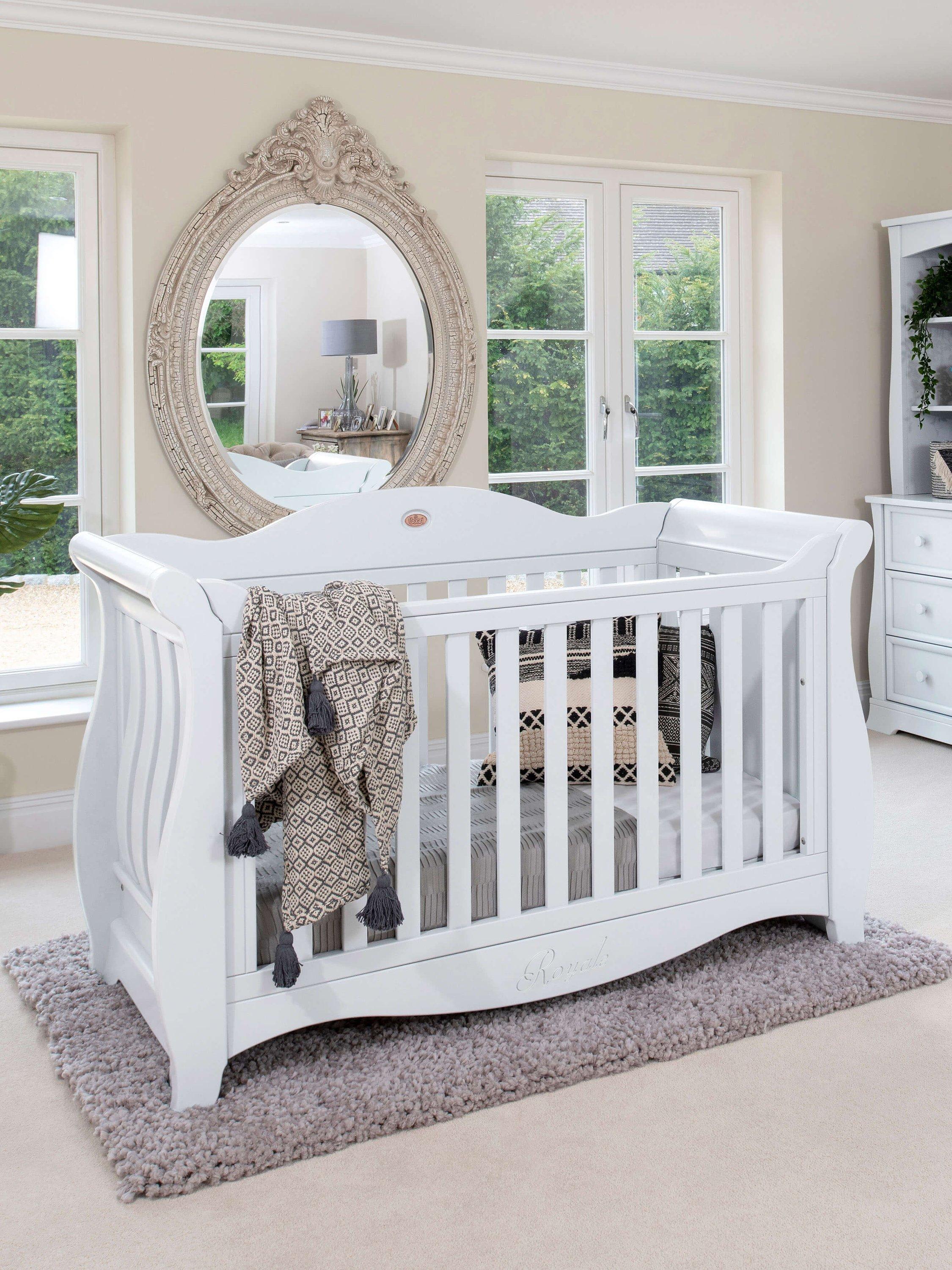 The sleigh cot frame is crafted from sustainably sourced Australian Araucaria and New Zealand Radiata timber, both strong and durable woods that have been favoured by woodworkers for over a century for their strength and consistency of grain texture. The carpenters finish these cot beds with the brand's unique plant-based paint to keep nasty chemicals to a minimum in your home. The Sleigh Royale Cot Bed adheres to both Australian/New Zealand and European safety standards. Down to the beautifully carved 'Royale' calligraphy, every detail of this sleigh cot bed has been considered. The cot bed comes with a 3 year warranty.