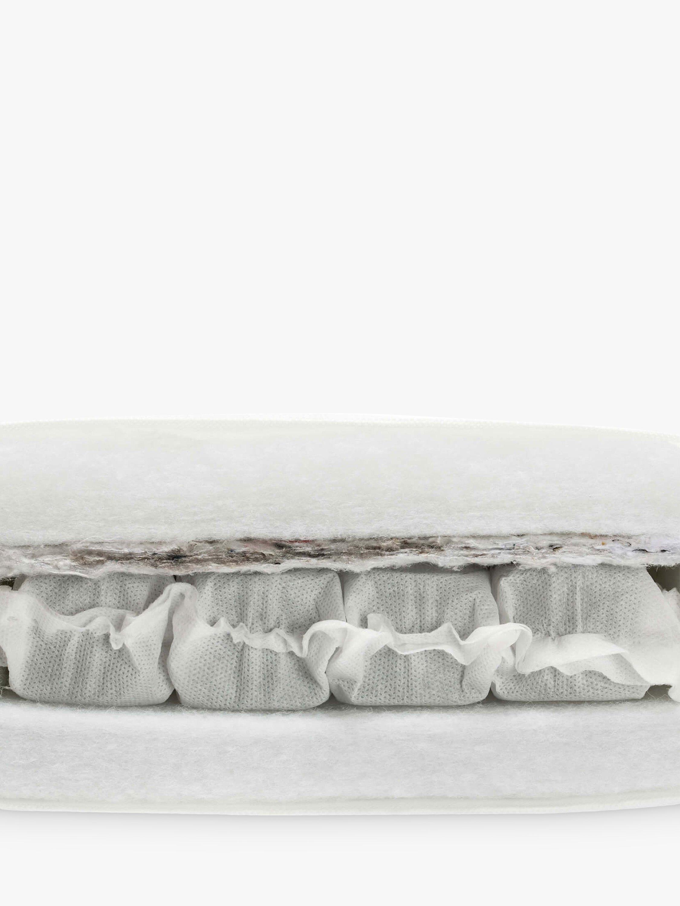 The Deluxe Purotex®️ Pocket Spring Cot Bed Mattress is designed to provide baby with a comfortable and supportive night's sleep. It's handmade and features British ECO Ultra Firm Fibre, 230 micro Posturfil pocket springs and hypo-allergenic properties for complete peace of mind whilst your little one sleeps. With its innovative DualTech technology, the mattress has deep Ultra Firm Fibre and an Ecobond insulator pad on one side for newborns as well as a side offering individual pocket springs for toddlers. This helps promote the perfect posture for your child as they grow. With an open cell structure, the firm fibre works with the pocket springs by moulding to the contours of the body. This provides support and allows for increased airflow.