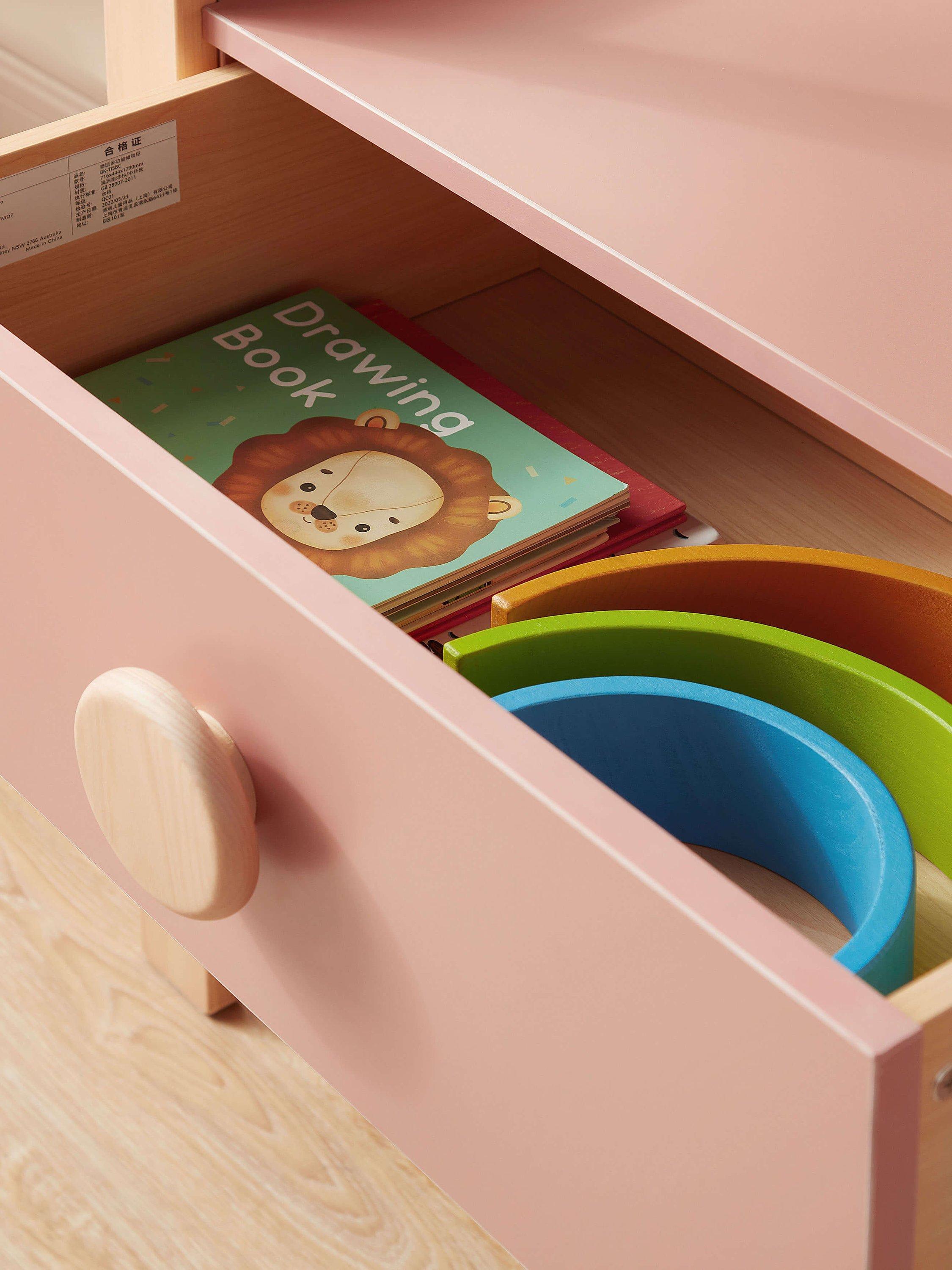 This unit offers a clever combination of drawers and shelving, providing you with flexible storage solutions to keep your child's space tidy and clutter-free. It even includes a clothes hanging rail that can be attached at two different positions to accommodate your little one's clothing. With the Boori Tidy Storage Bookcase, you'll have the freedom to customise your setup and optimise your nursery for convenience and functionality.