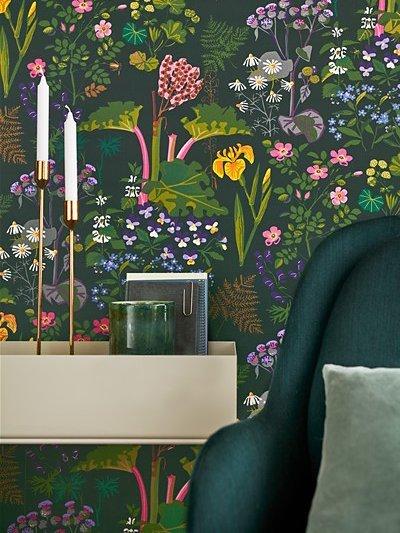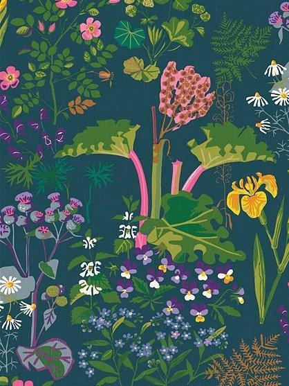 Gocken Jobs has created a number of plant patterns that are still well known and sought after. This wonderful, lush pattern with rhubarb, dew cup, viola and monkshood is one of her most loved.