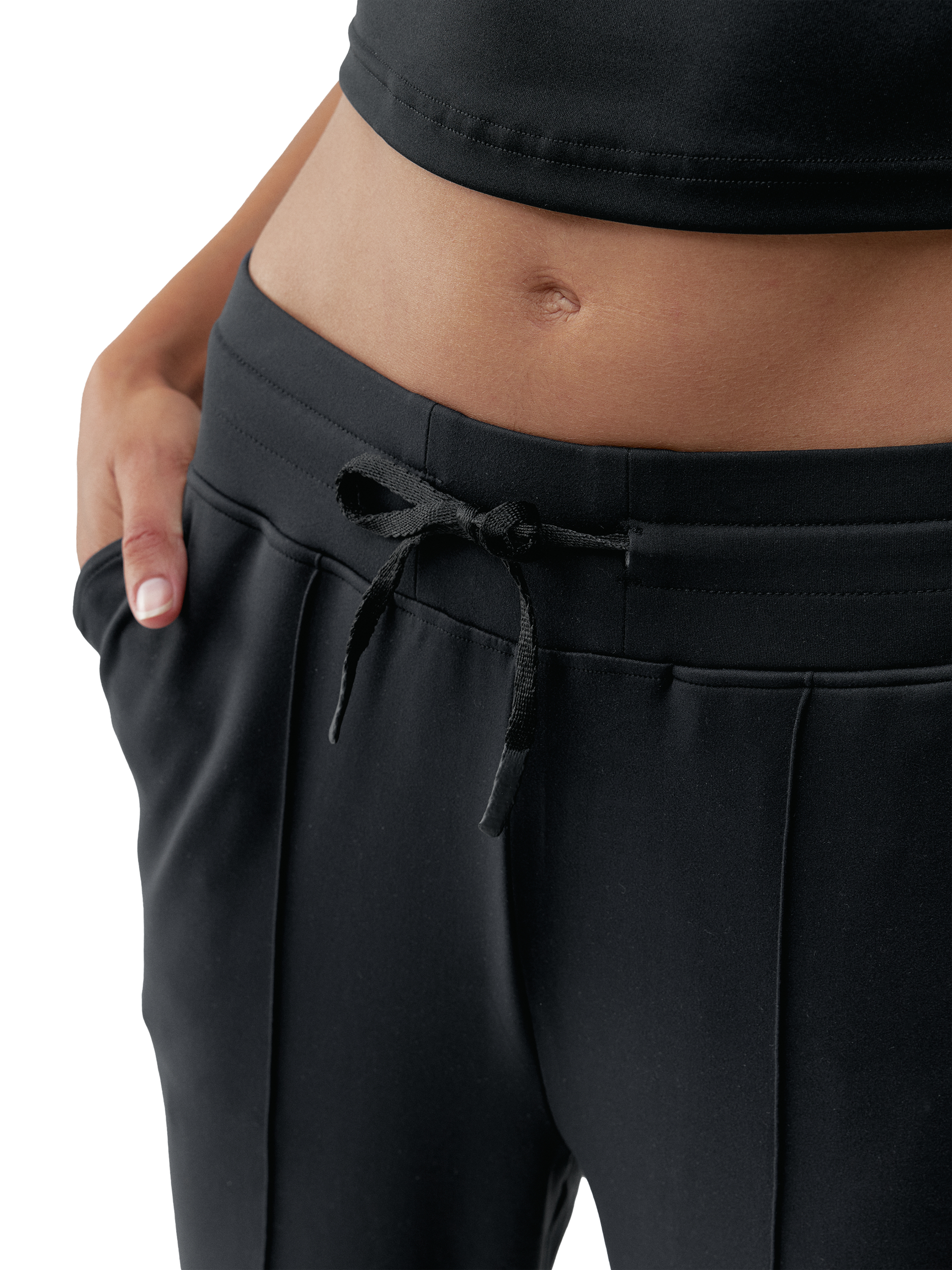 These straight leg trousers are extra soft, compact and elastic, made from Peach T fabric that provides maximum comfort. They have side pockets, and vertical seams that stylise, and drawstrings for a better fit. The four-way stretch fabric is extra soft to the touch, quick-drying, anti-bacterial, and anti-static. Ideal for your post-sport activity or for everyday wear.