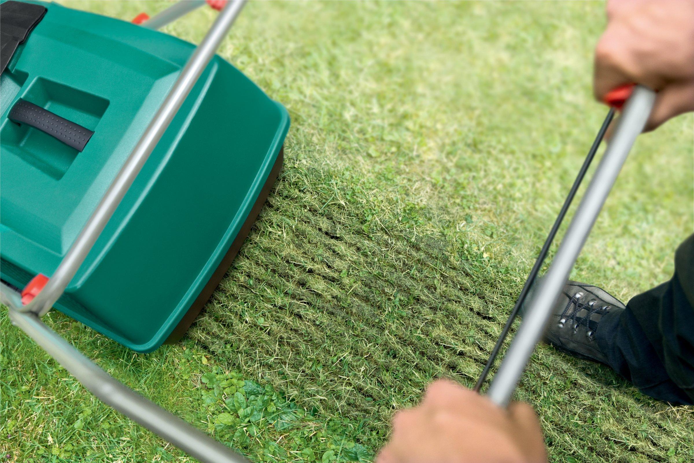 For effective moss removal and re-seeding in your garden, the Bosch AVR 1100 Verticutter combines a 1100 watt Powerdrive motor with a Jet-Collect System which prevents tool blockage. The system features special airflow inlets and stainless steel blades to offer quick and total collection of moss and weeds.