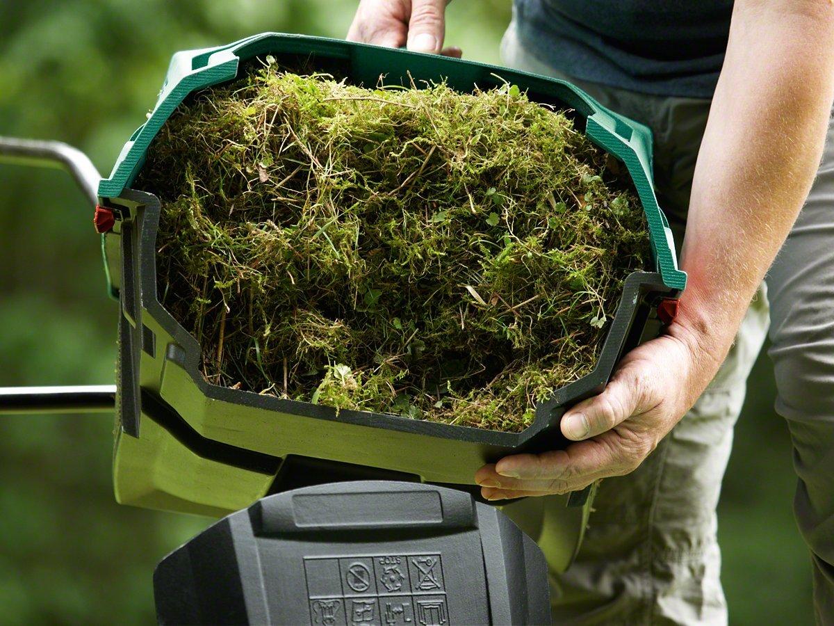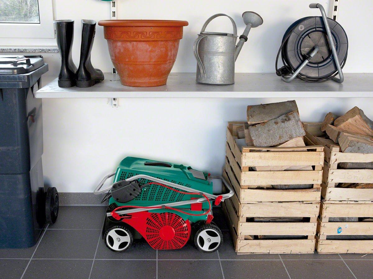 A large 50-litre collection box lets you spend more time raking before you have to empty it, so you can finish the task in one go. The collection box features folding handles and is stackable so that it only takes up 40cm of space when stored.