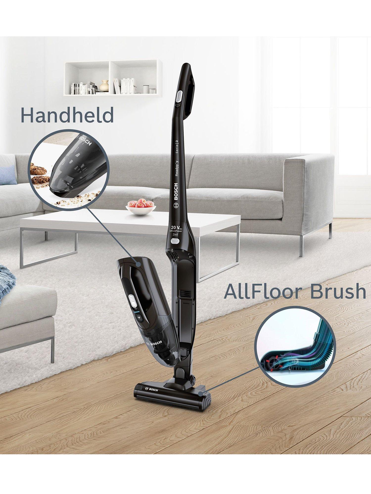 Convenient, fast and thorough, the cordless Bosch Readyy’y Serie 2 2in1 handheld and handstick vacuum cleaner including freestanding function. Featuring a lightweight and compact frame, this easy to use tool is designed to help you clean even those hard-to-reach places, even under furniture or around the seats in your car. The Serie 2 also comes with a rechargeable Lithium-ion battery which can be fully charged in 4-5 hours for quick and consistently thorough cleaning for a run time of up to 44 minutes. With the rechargeable battery you don't have to worry about messy and tangled cords, for stress-free work in the home and in the car.