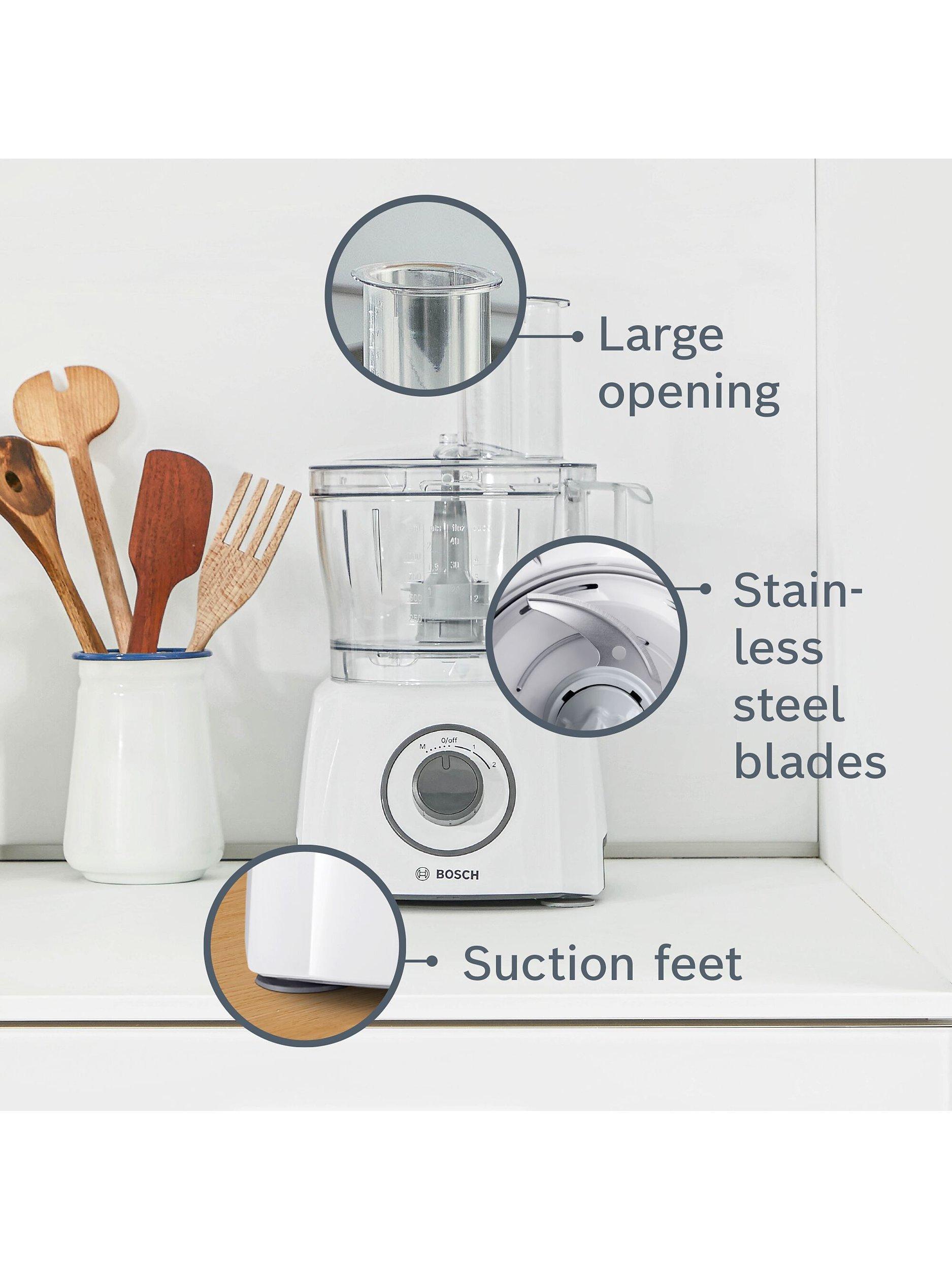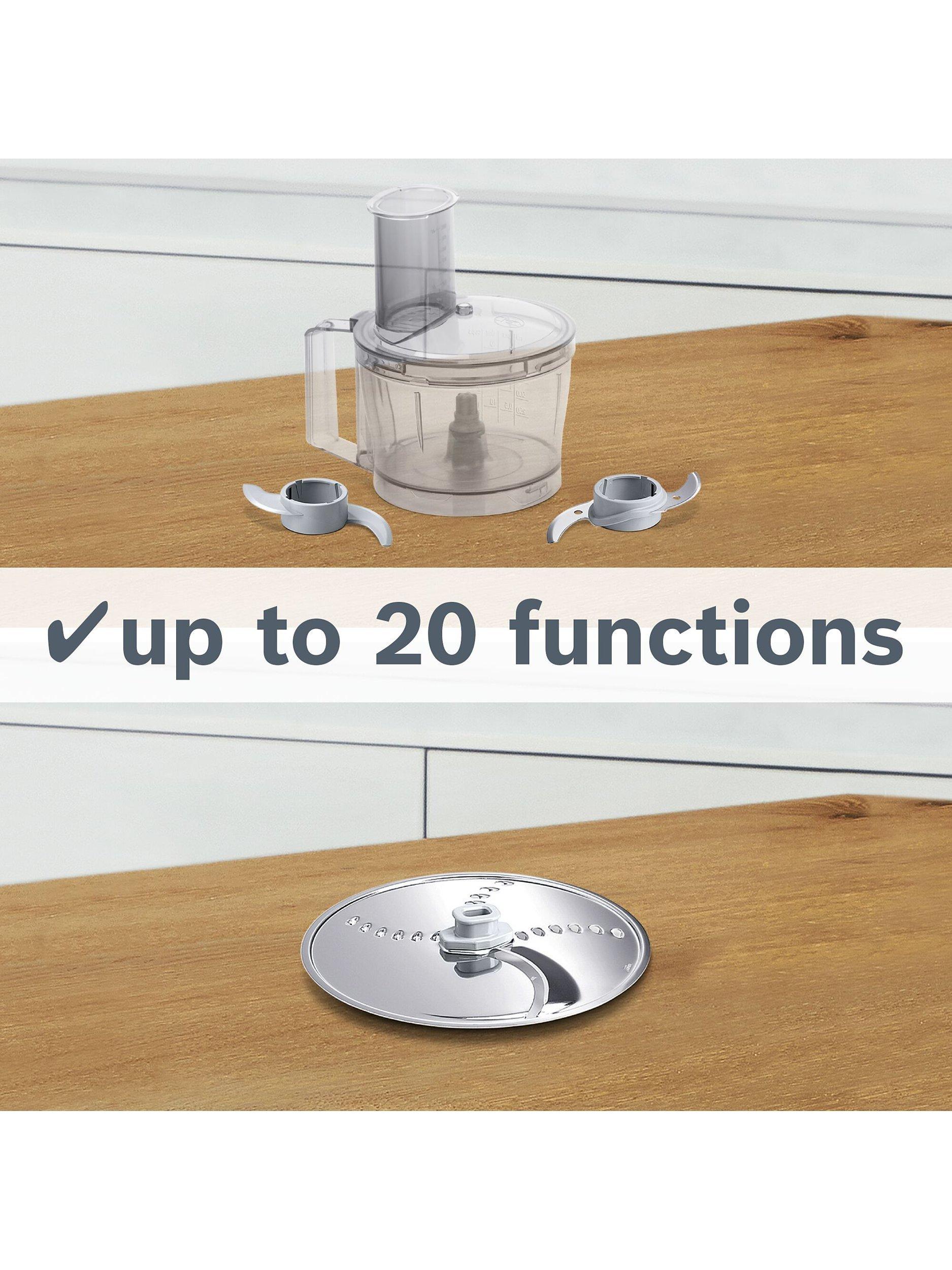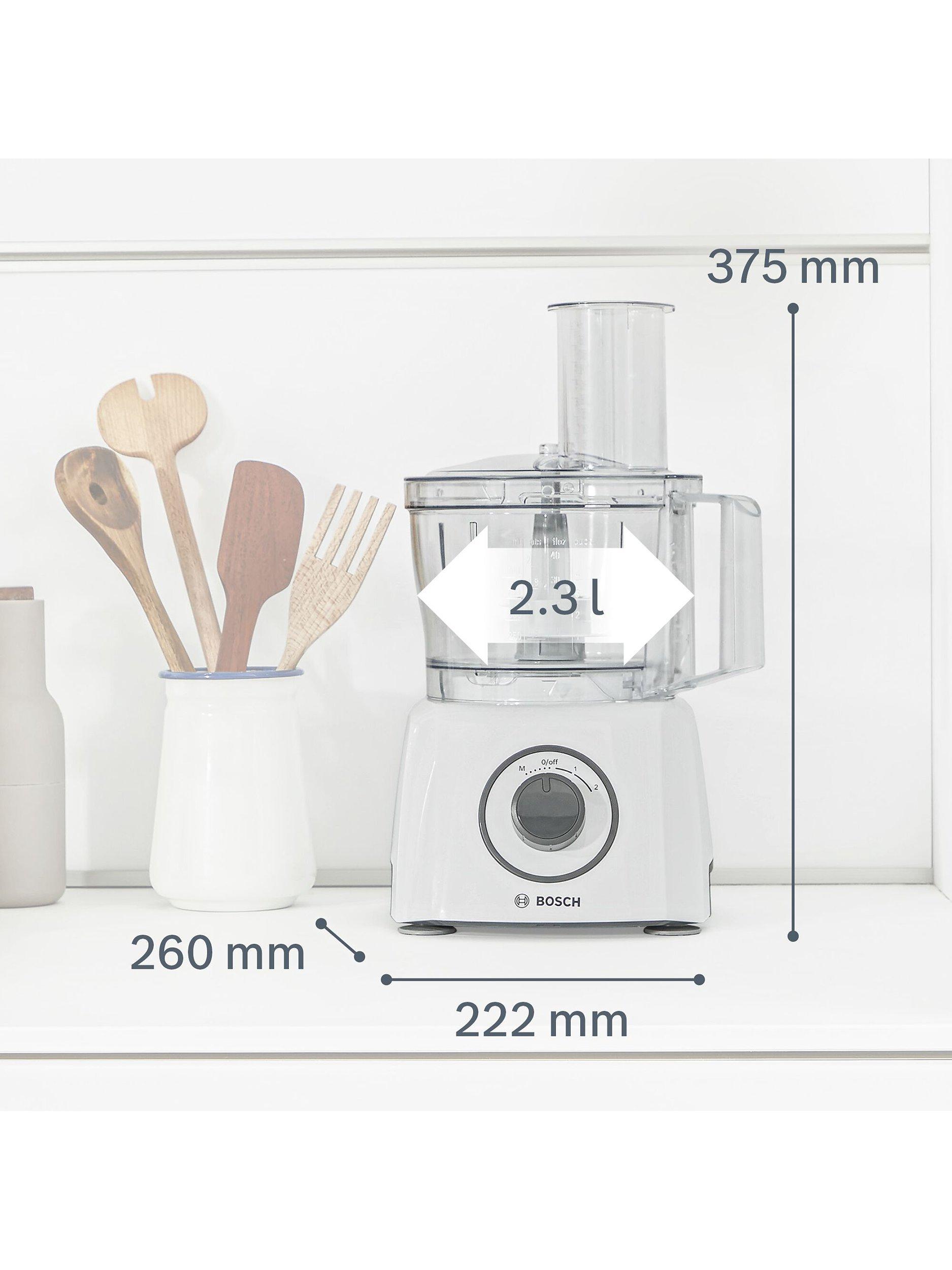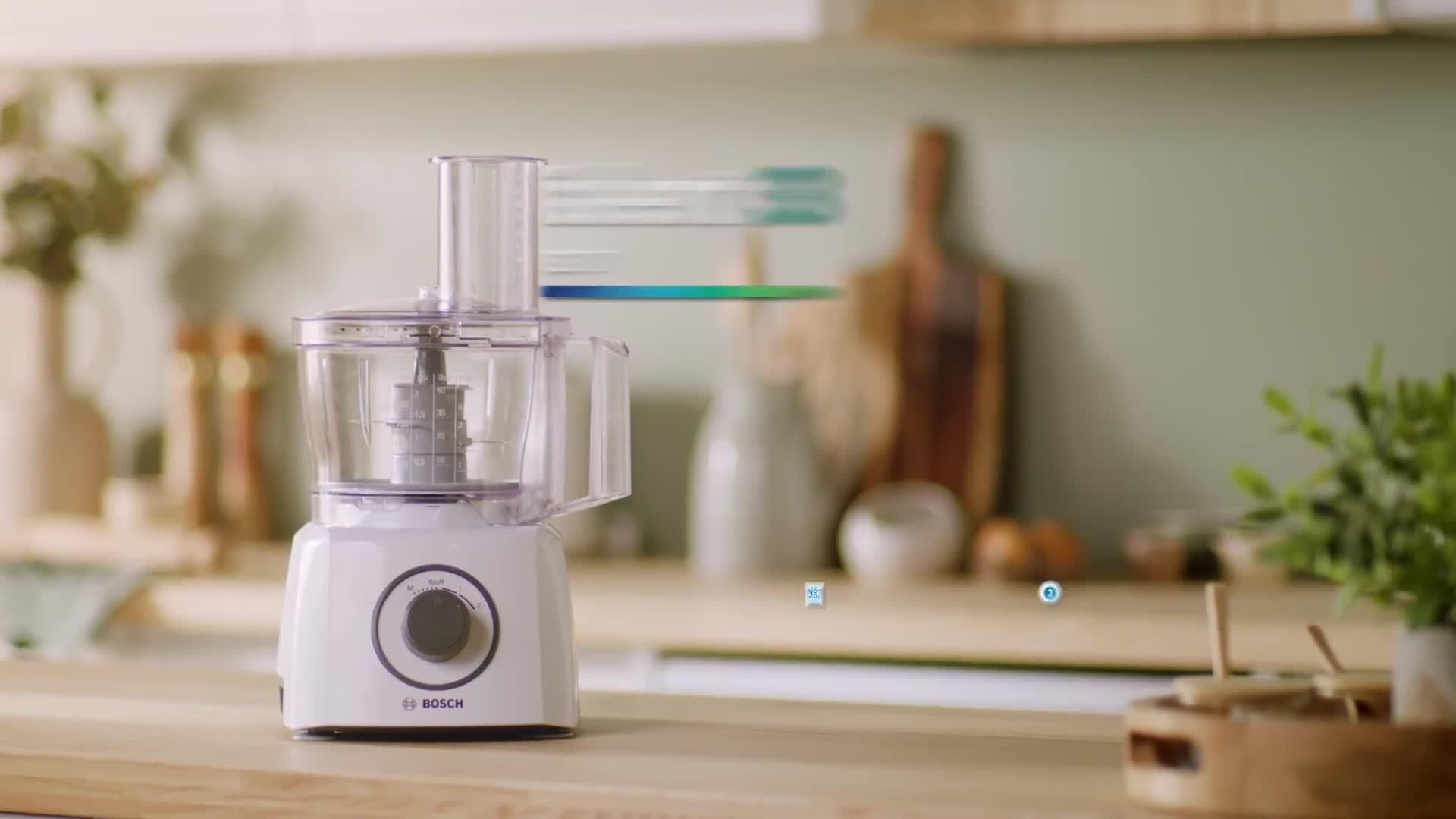 Equipped with 800W of power, the MCM3100WGB MultiTalent 3 Compact Food Processor from Bosch is more than qualified to take care of all your daily cooking prep, or help you master more challenging recipes.