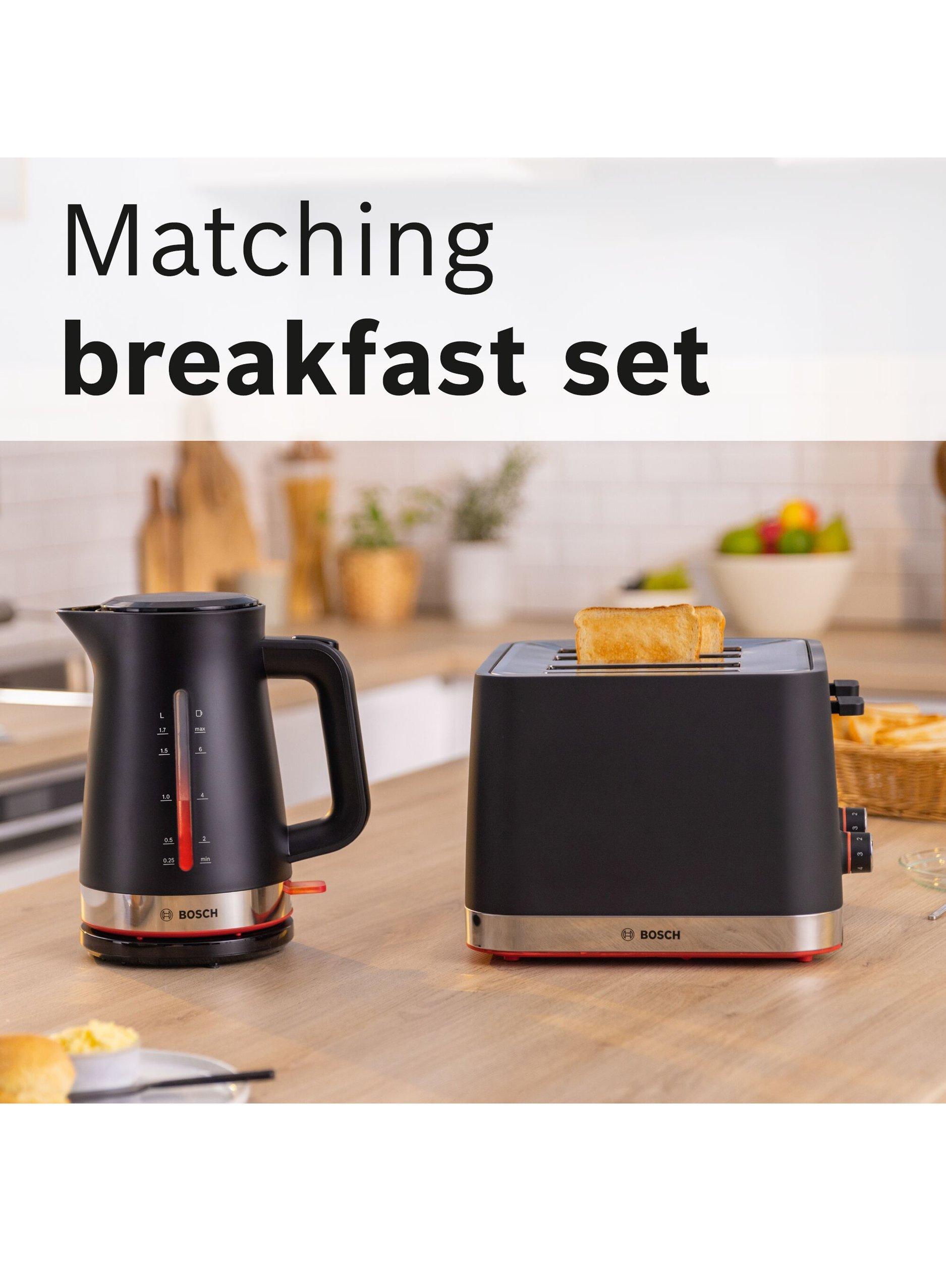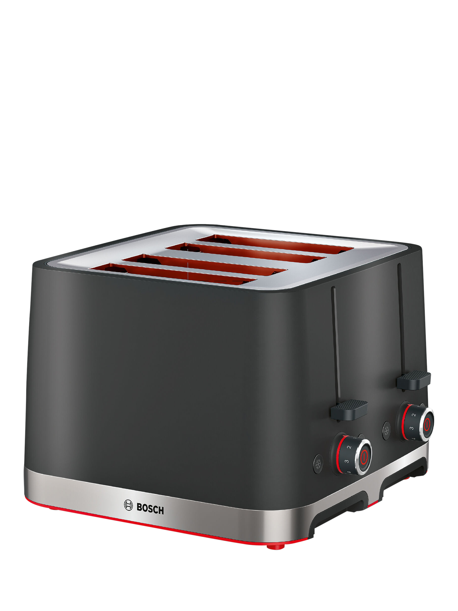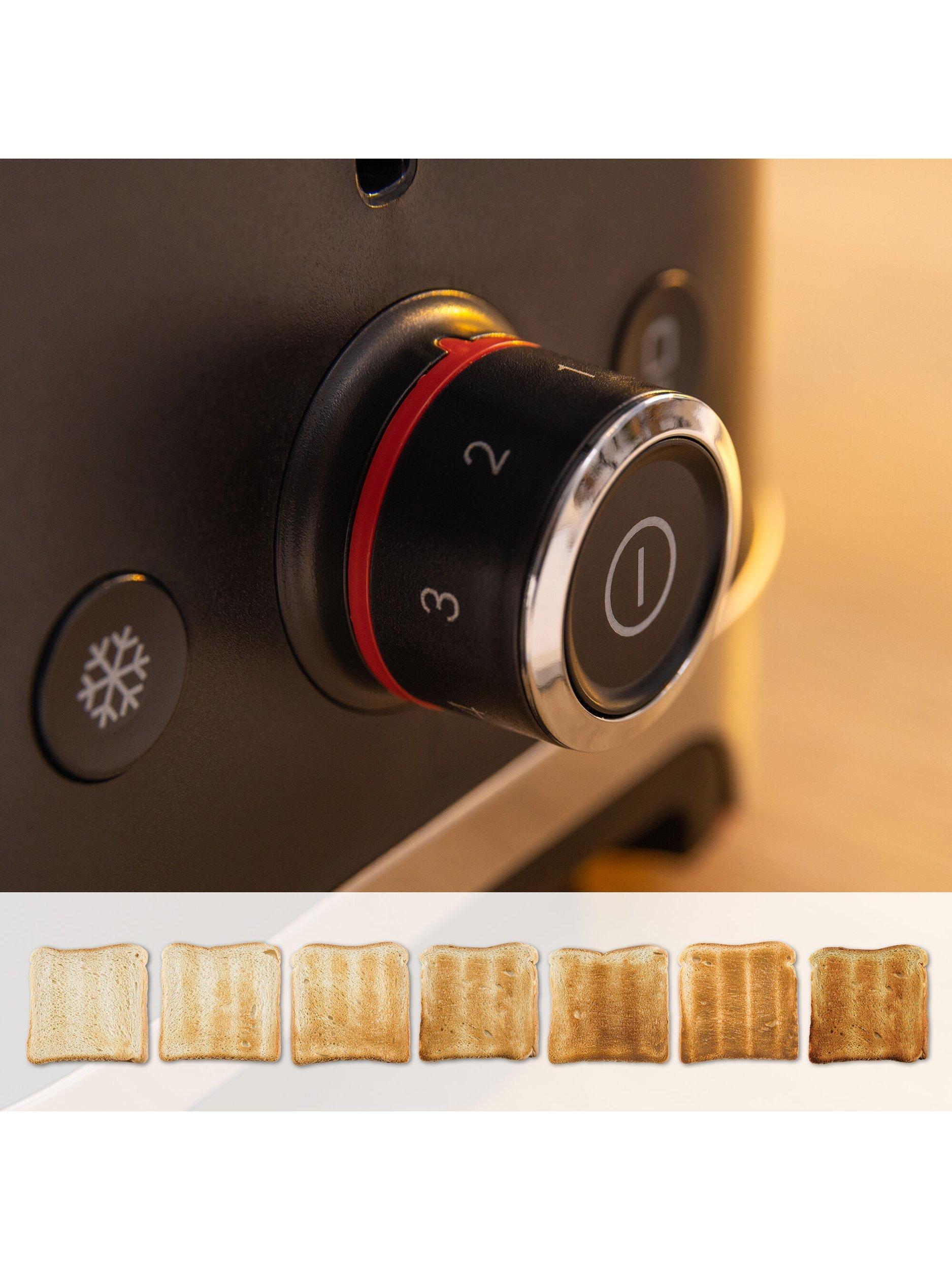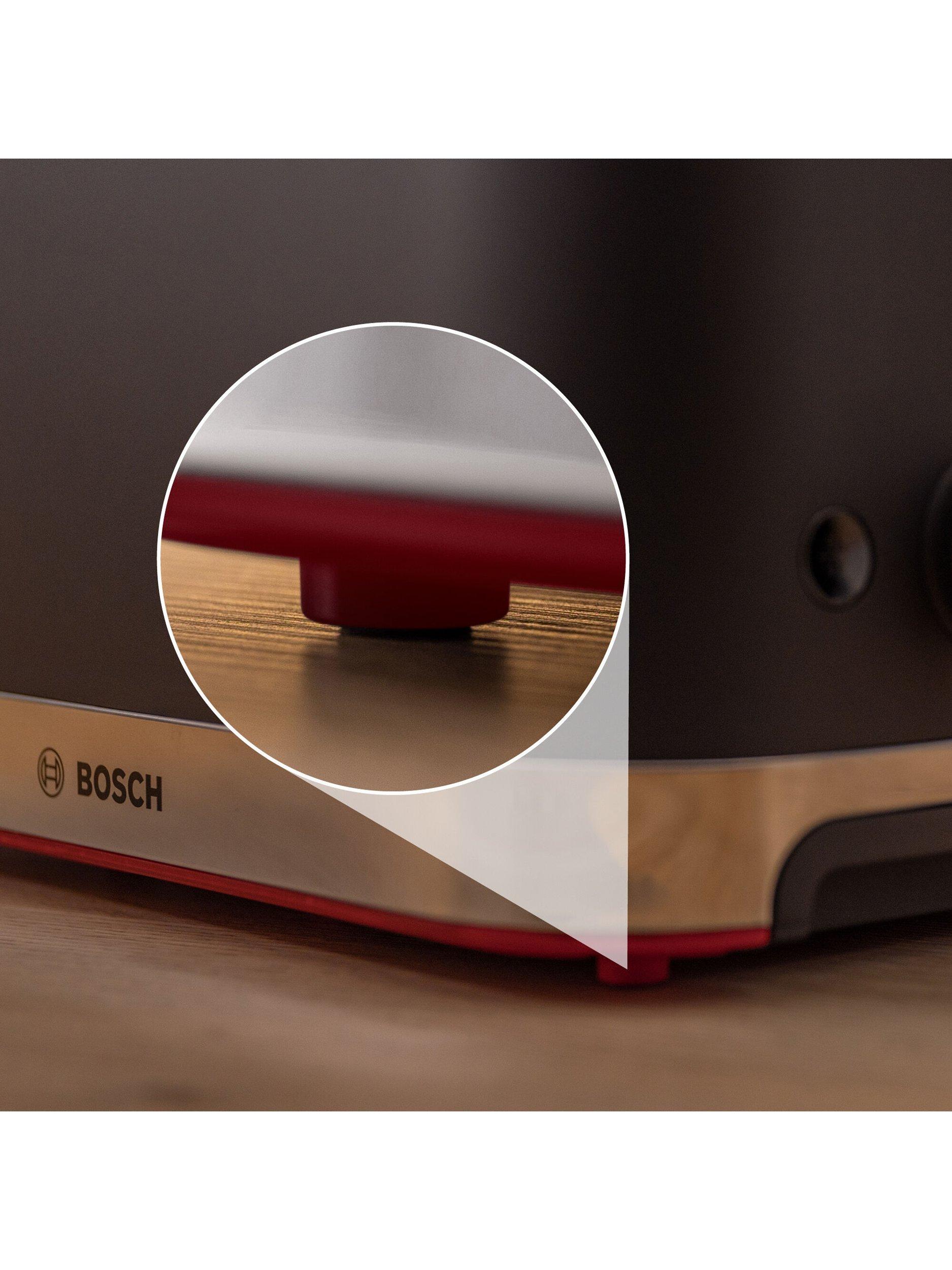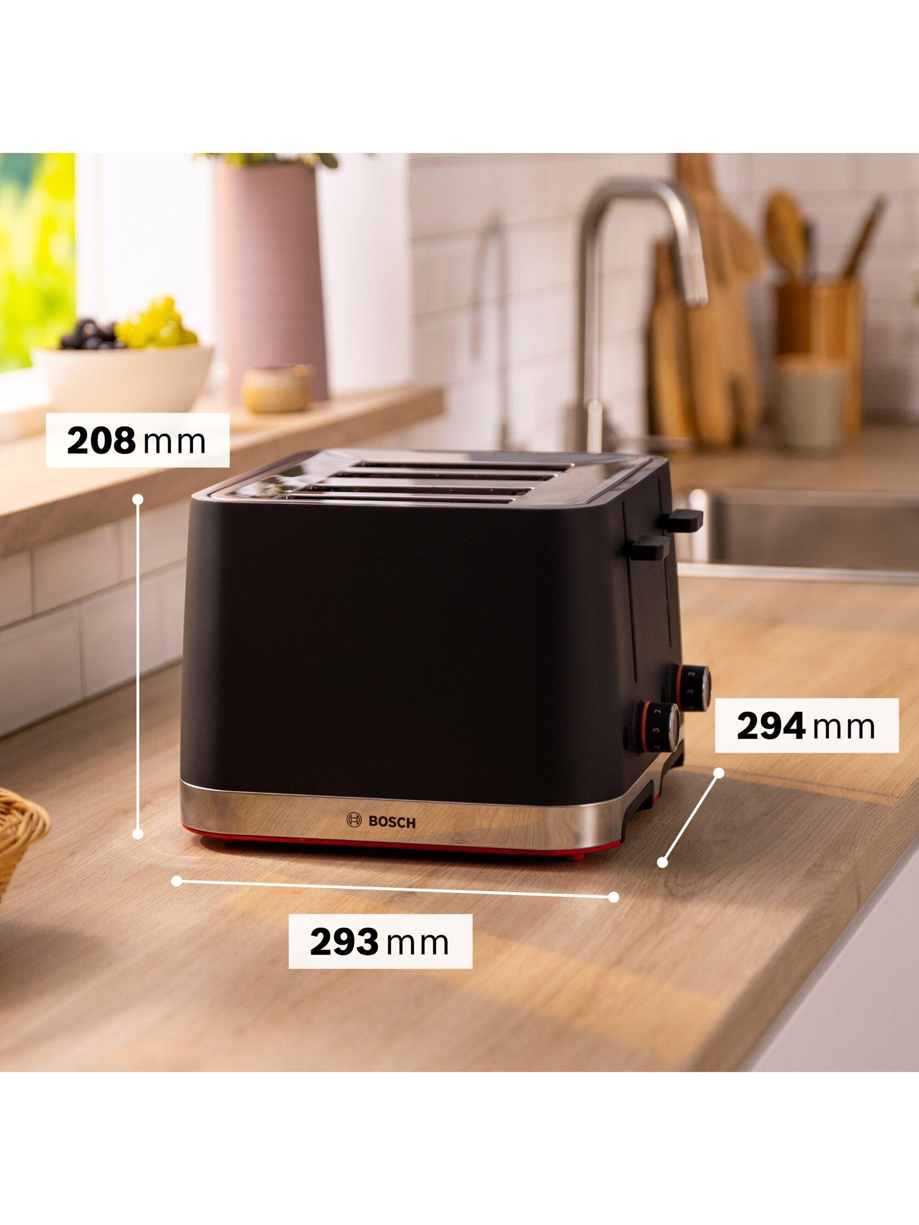 Indulge in deliciously golden toast or scrumptious crumpets with the Bosch MyMoment 4-slice toaster. Combining Bosch quality with a sleek matte finish, this toaster brings a touch of elegance to your kitchen. With 7 browning settings to choose from, as well as handy reheat and defrost functions, you can effortlessly create toast that suits everyone's taste. Plus, the automatic bread centring feature ensures perfectly even toasting every time. Conveniently located at the front, all controls and the crumb tray are easily accessible.