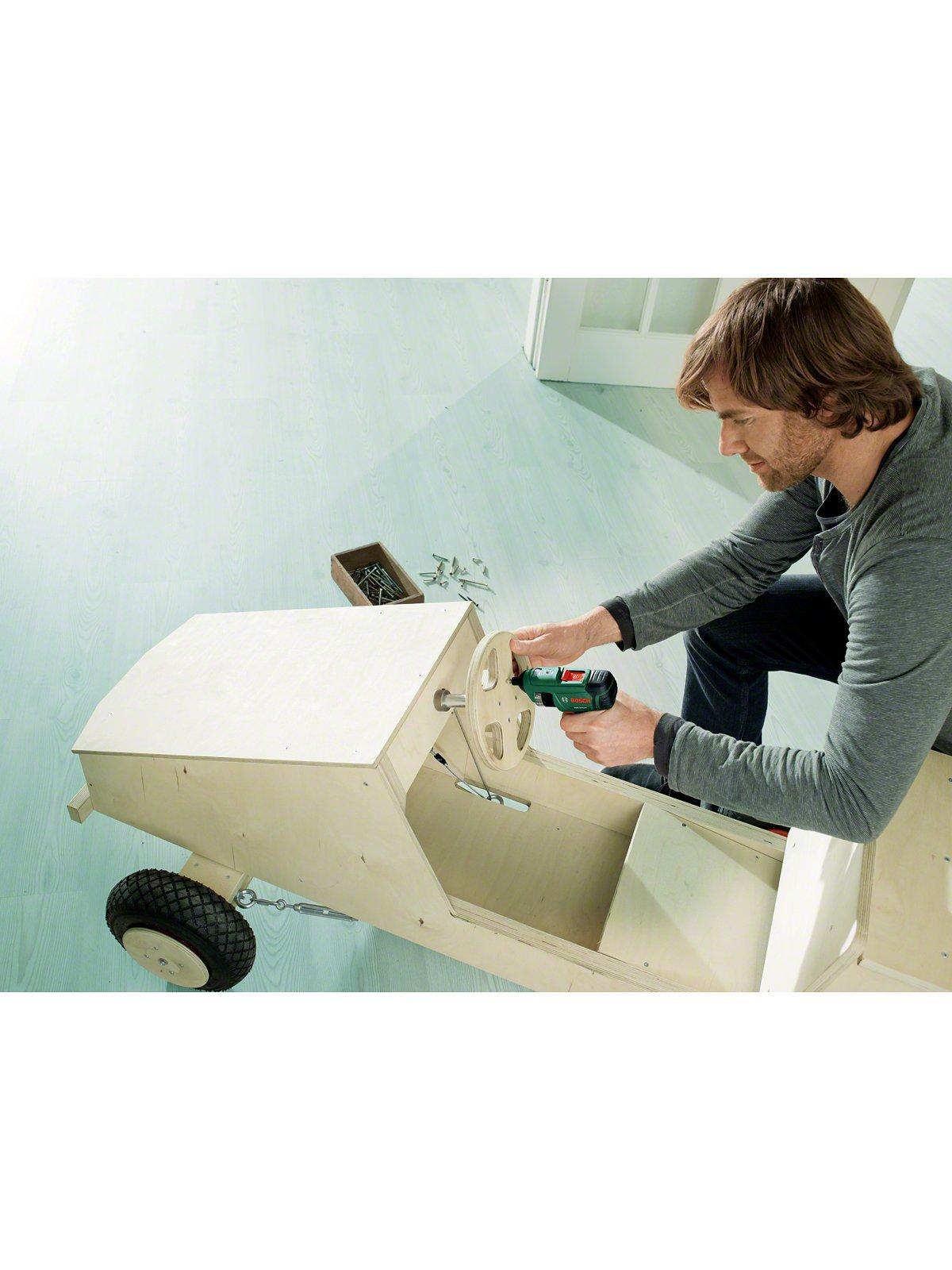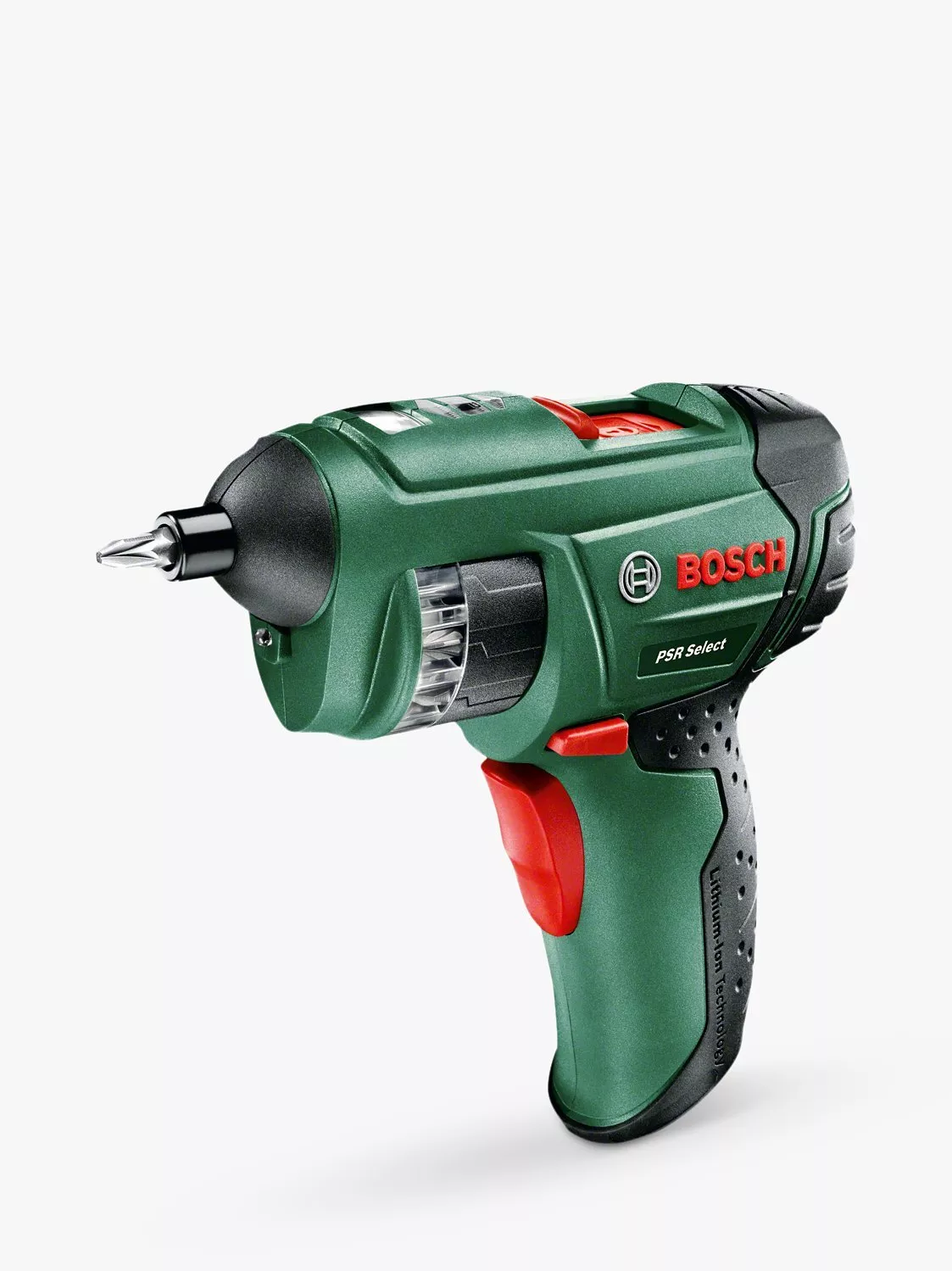 It can seem like a small job, but driving screws can take up a lot of time. The Bosch PSR Select cordless screw driver cuts to the chase with its clever integrated bit cylinder that holds up to 12 standard bits. Put an end to hunting around in tool boxes for the right screwdriver, and have just about any size to hand when you need it most.