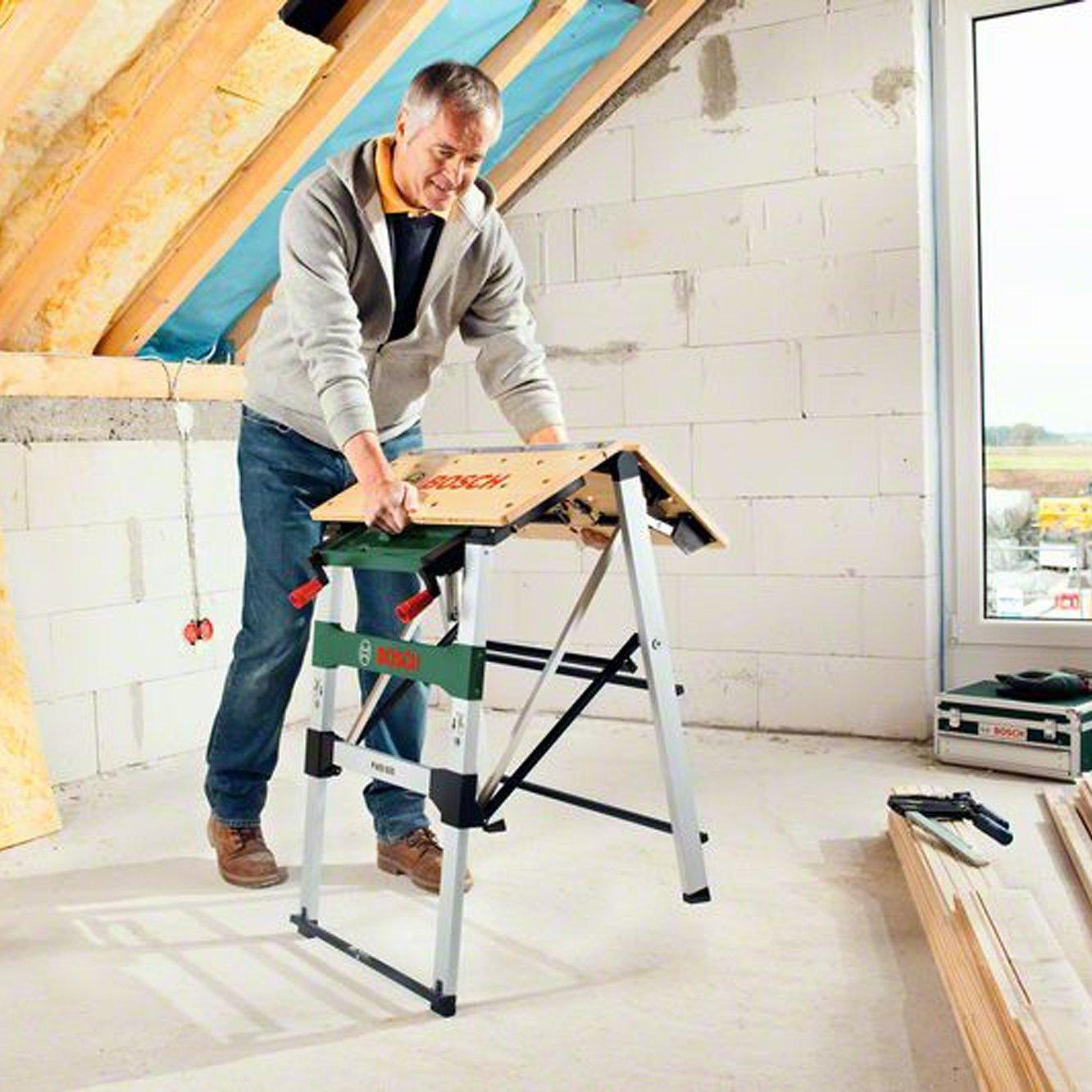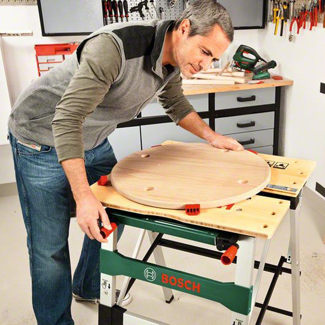 Whether using a bench circular saw, mitre saw or sliding mitre saw, this versatile saw stand from Bosch excels at helping you to do more. Completely mobile, it can be assembled and folded up in seconds without additional tools. Thanks to its innovative aluminium construction, the work bench is very flat when folded together. This ensures easy transport and space-saving storage.