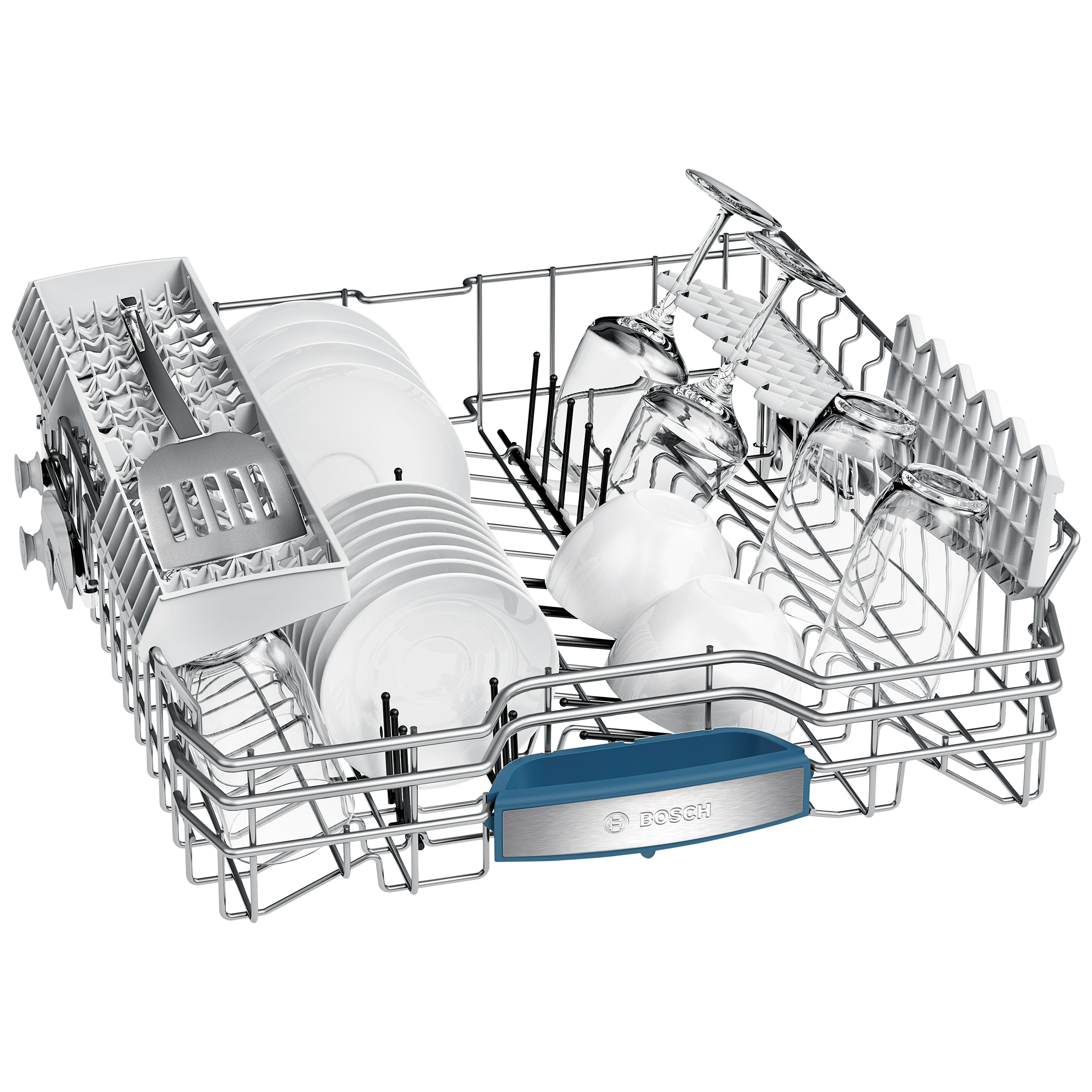 - 3-stage Rackmatic height-adjustable top basket for increased capacity