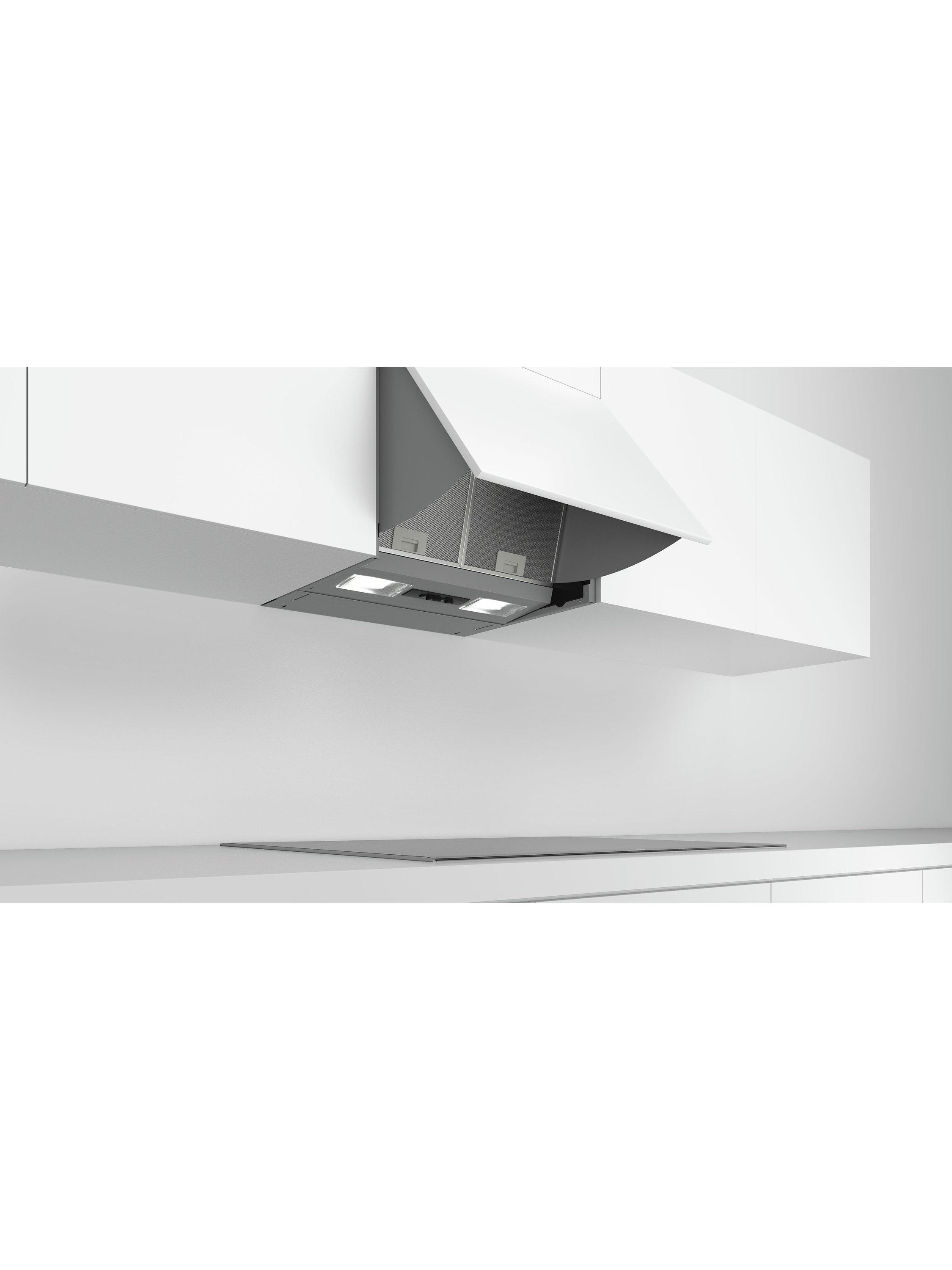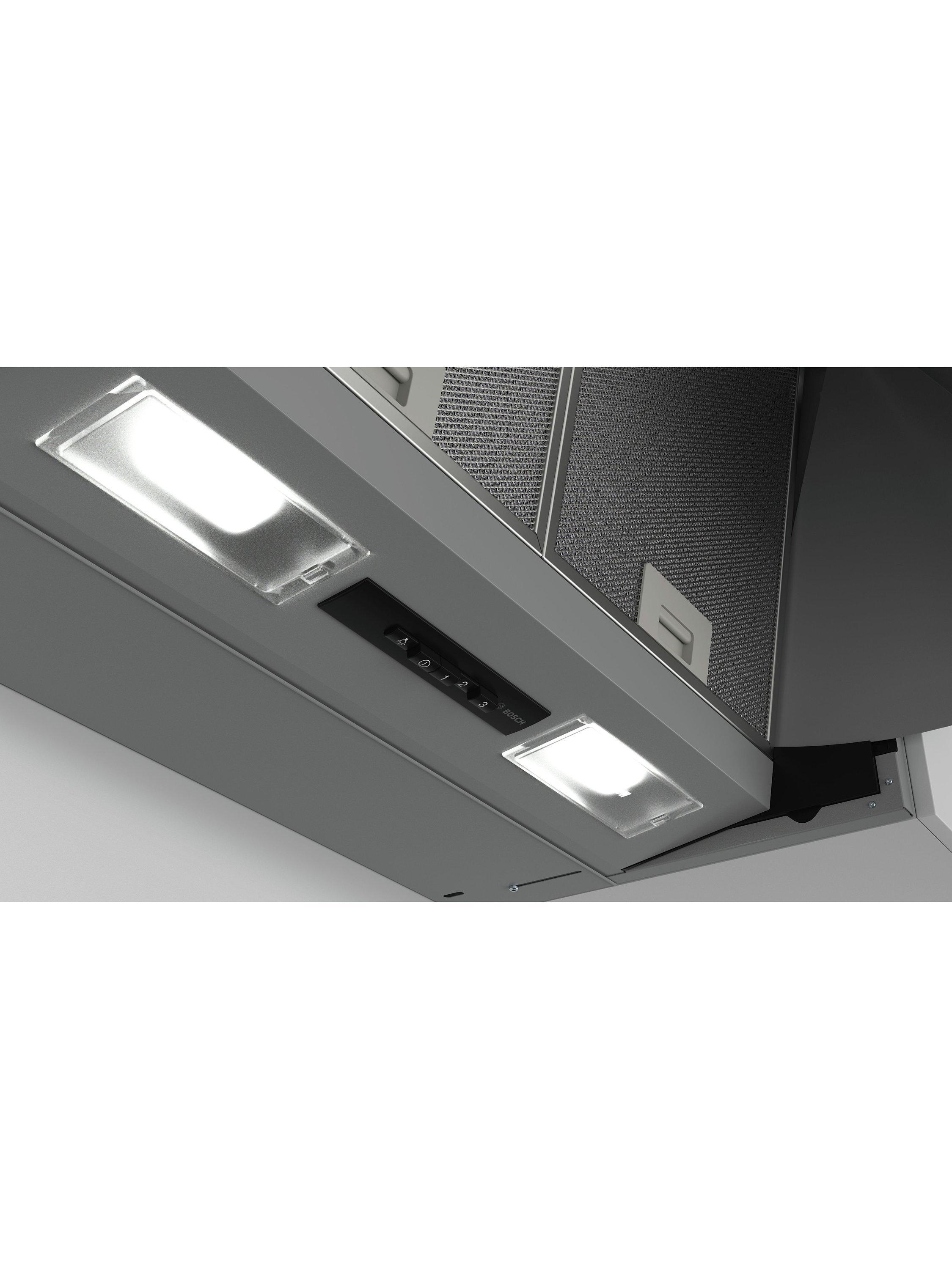 This integrated cooker hoods pull out when in use and close neatly to conceal when not in operation.