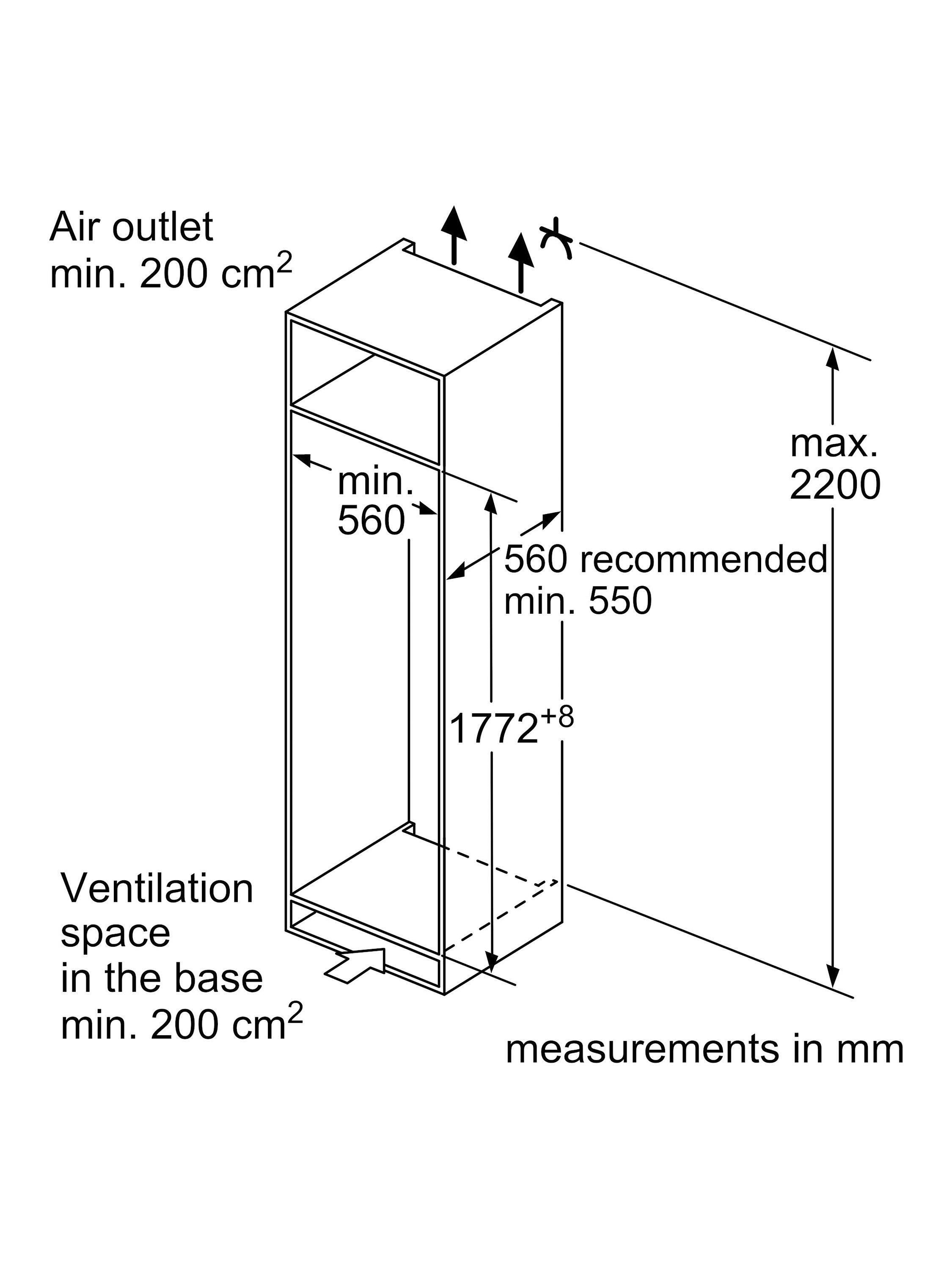 The size of the space needed for the fridge to fit