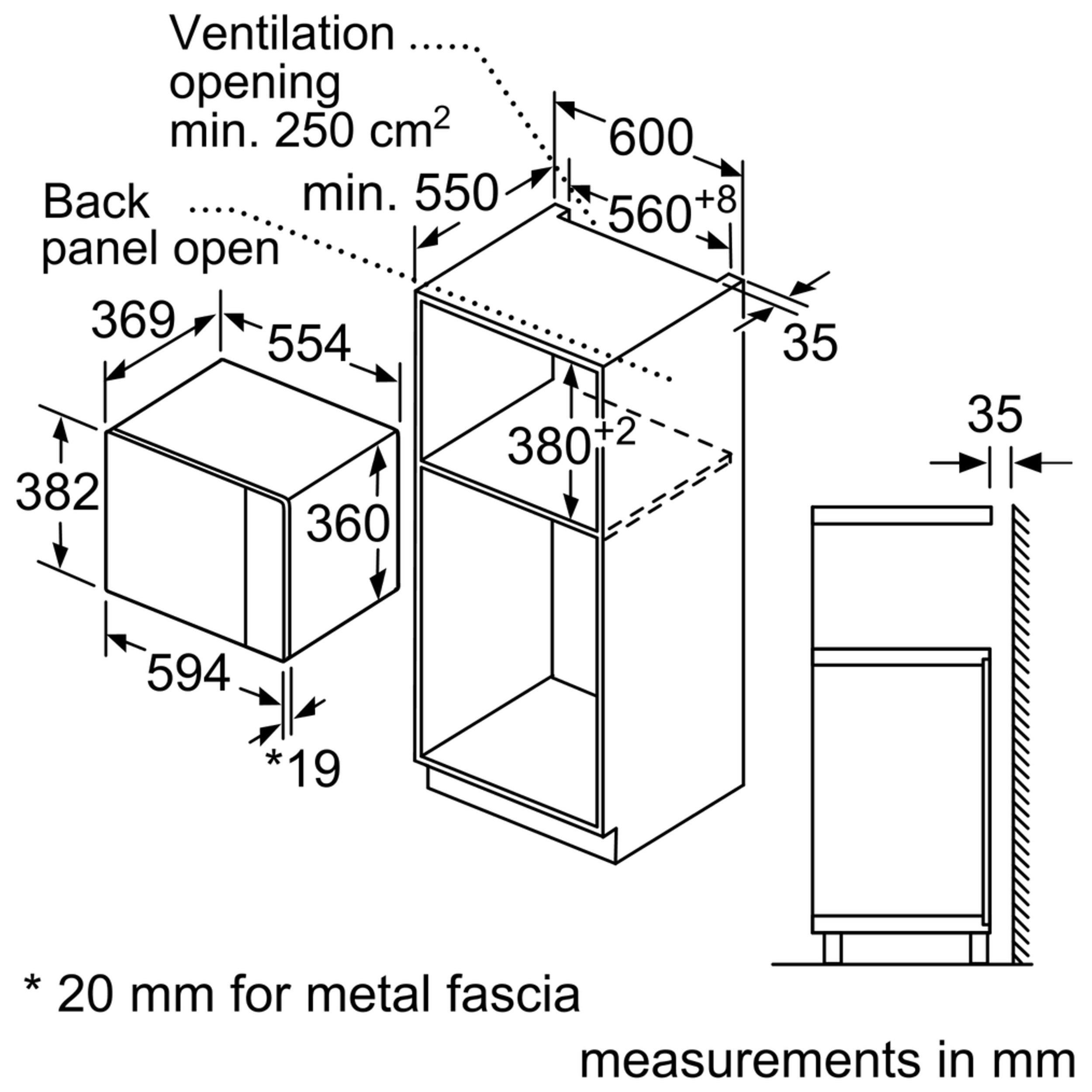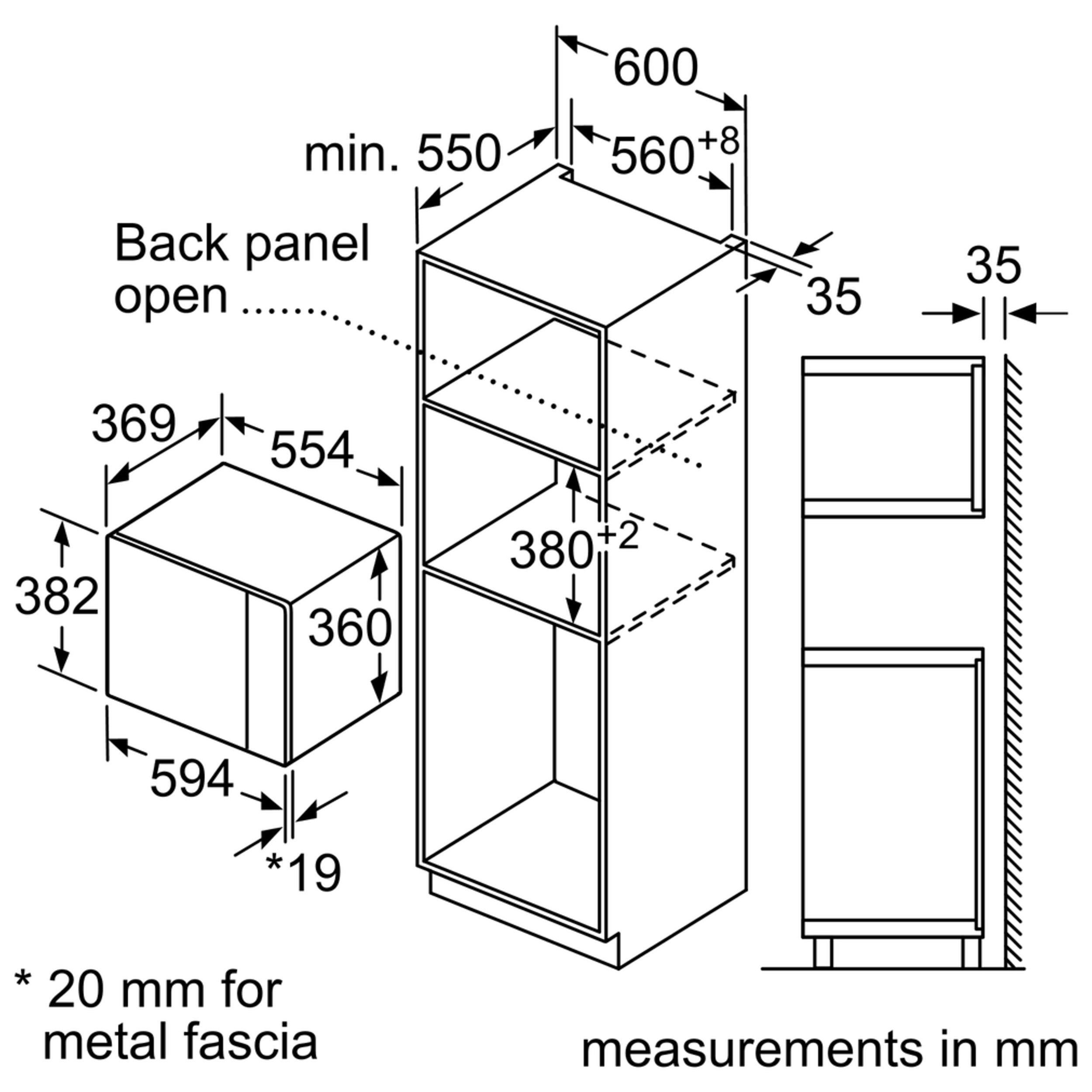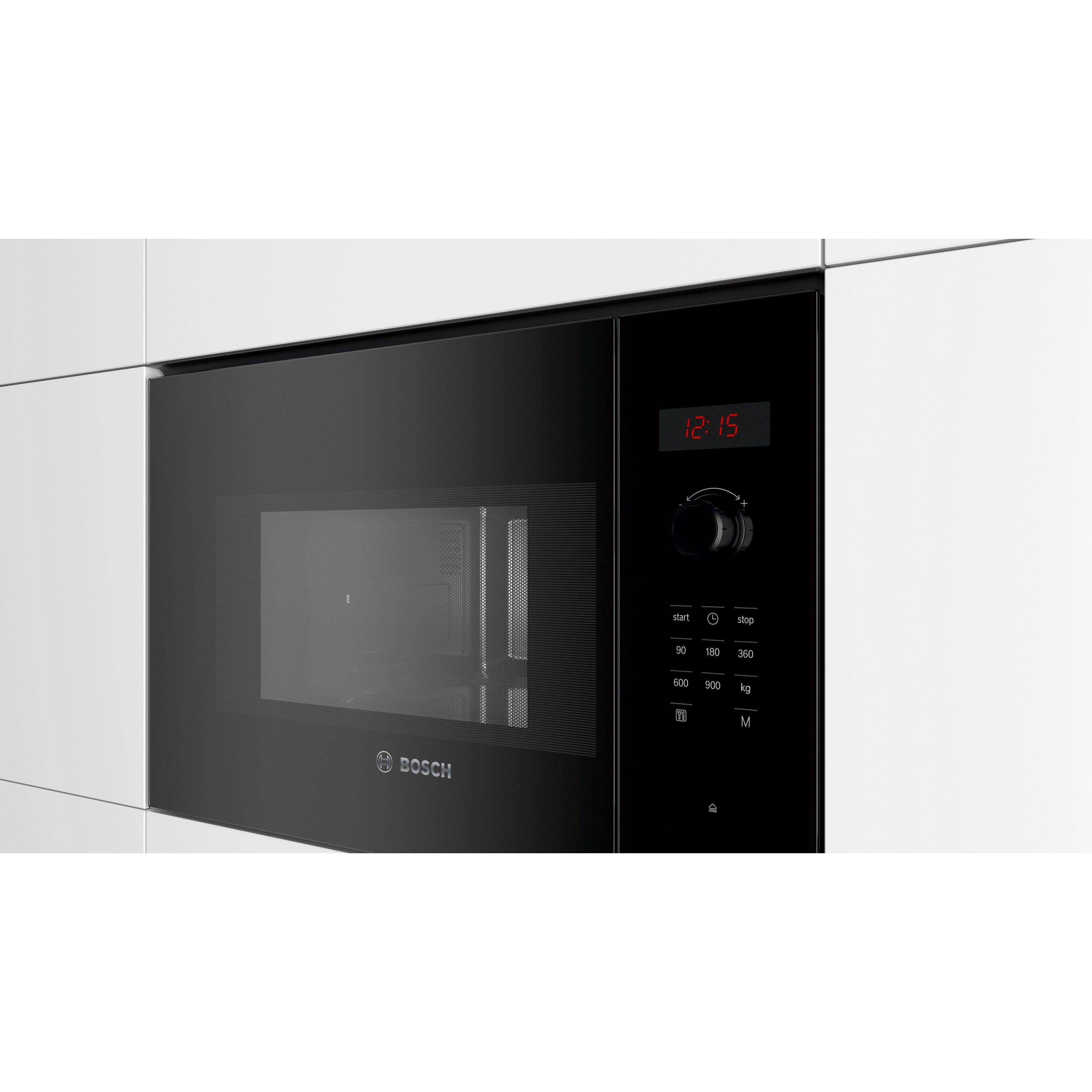 Boasting a spacious 25-Litre capacity, Bosch's Serie 4 BFL553MB0B microwave is built for your modern kitchen. Fitting a 38cm niche, it's equipped with Bosch's AutoPilot 7 feature that includes seven pre-set programs to make everyday cooking easy. Thanks to its powerful 900W maximum microwave power, make sure every recipe is a perfect success with the benefit of easy-to-use defrost, re-heat and cooking functions.