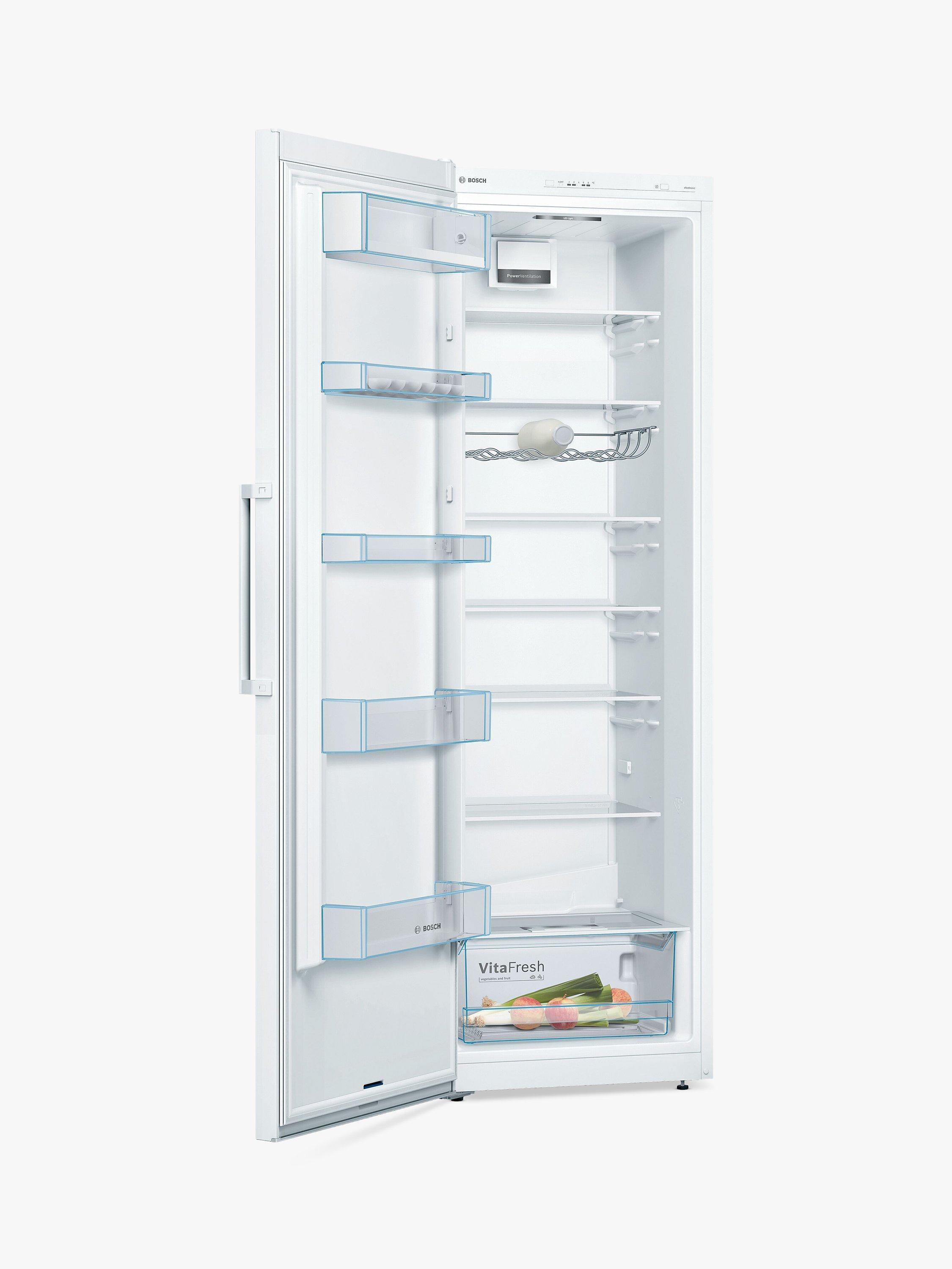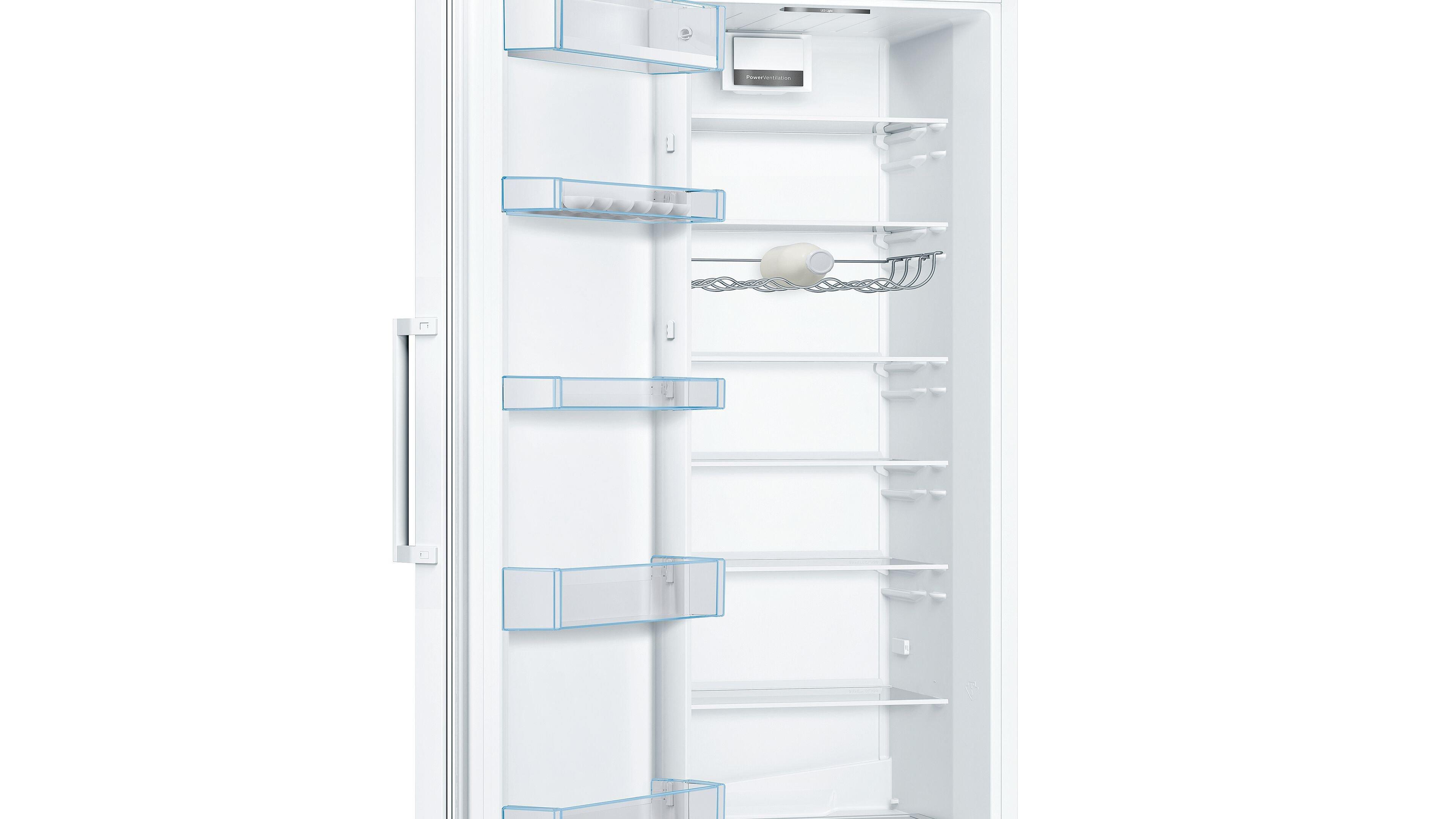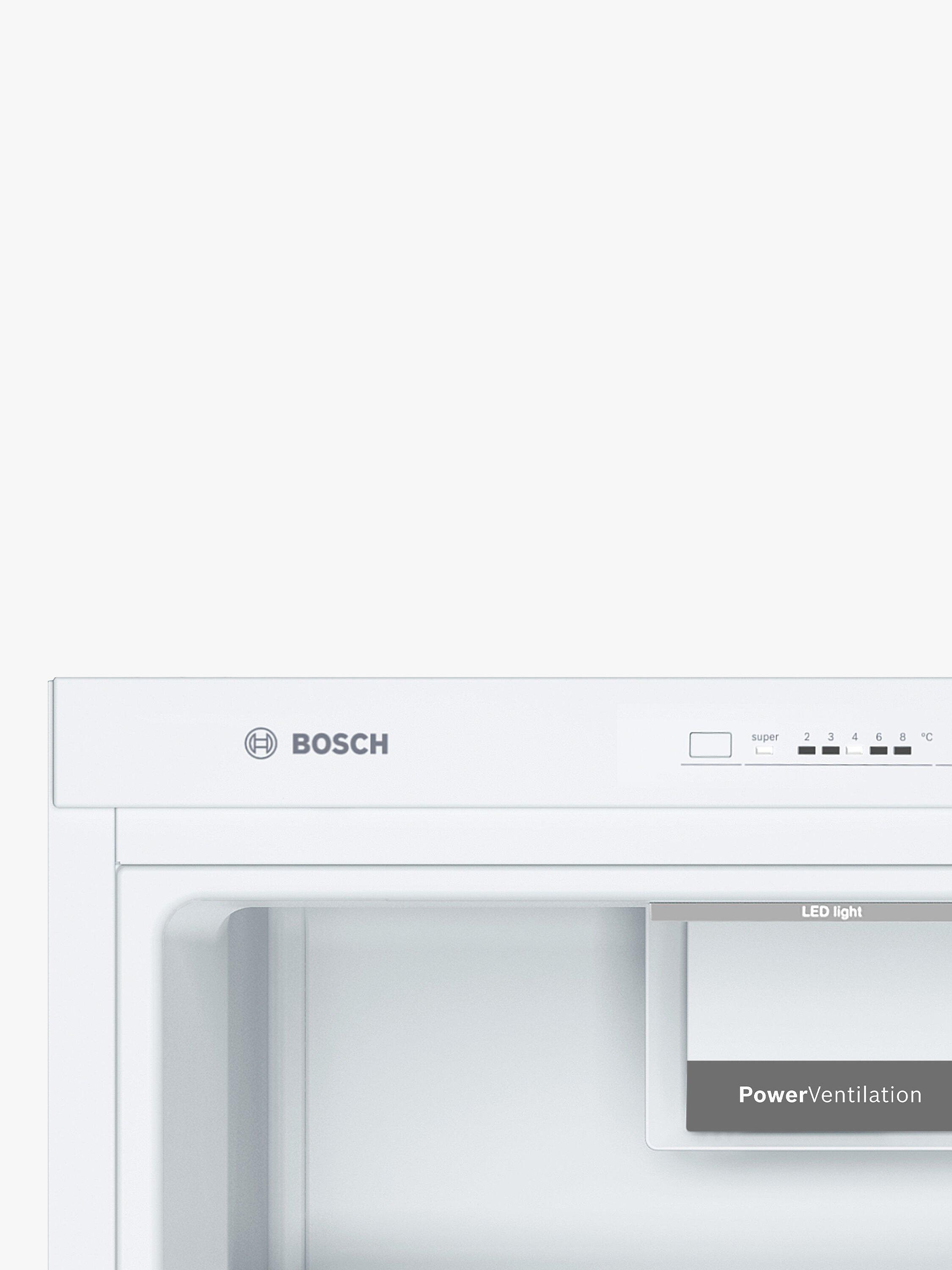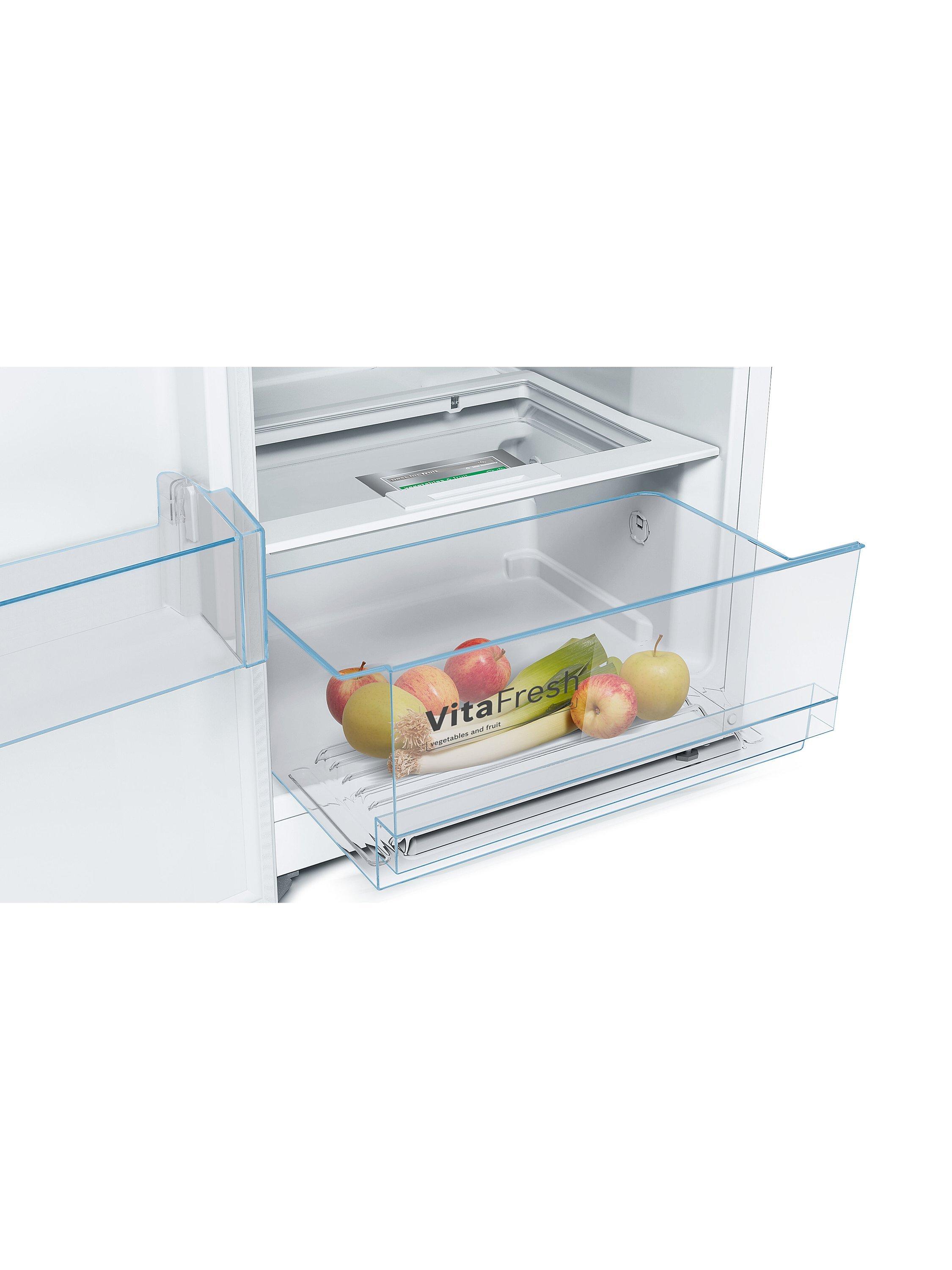 Fresh food kept the way it should be: fresh. Bosch has built this fridge with their clever VitaFresh technology; a system that carefully controls humidity and an optimal temperature inside the fridge. The extendable shelving and SuperCooling function will come in handy when you're packing the shopping away, and the reversible door means you're able to adapt the fridge to suit your kitchen’s layout.