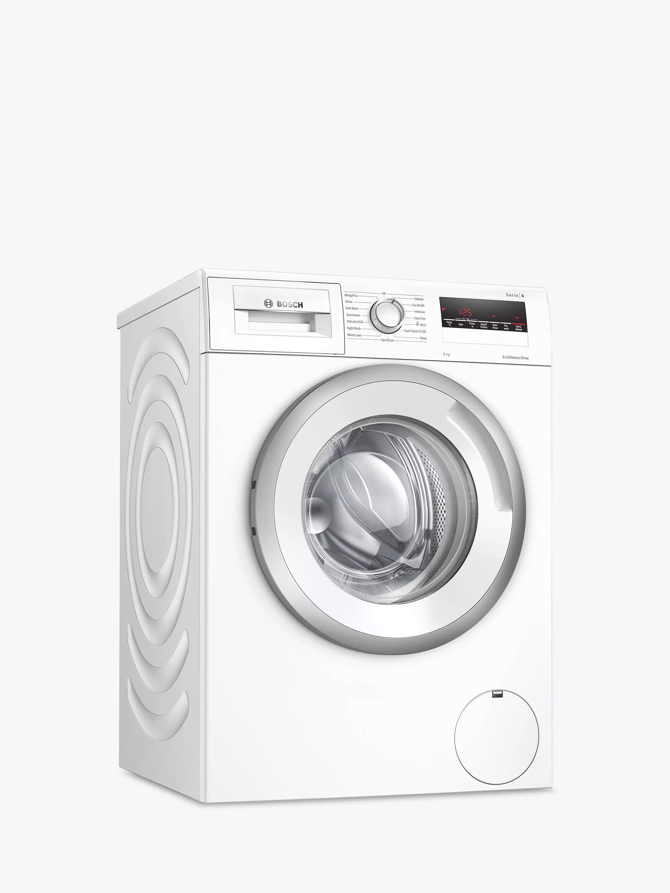 Super quiet, super-efficient, and super caring. Bosch knows what you want from your washing machine. Ideal for medium-sized households, AntiVibration and EcoSilence keep noise to a minimum, meaning you'll be free to wash laundry overnight without being disturbed. The AllergyPlus programme cares for sensitive skin and hayfever sufferers, and ActiveWater Plus automatically adjusts water usage to help save money off your utility bills.