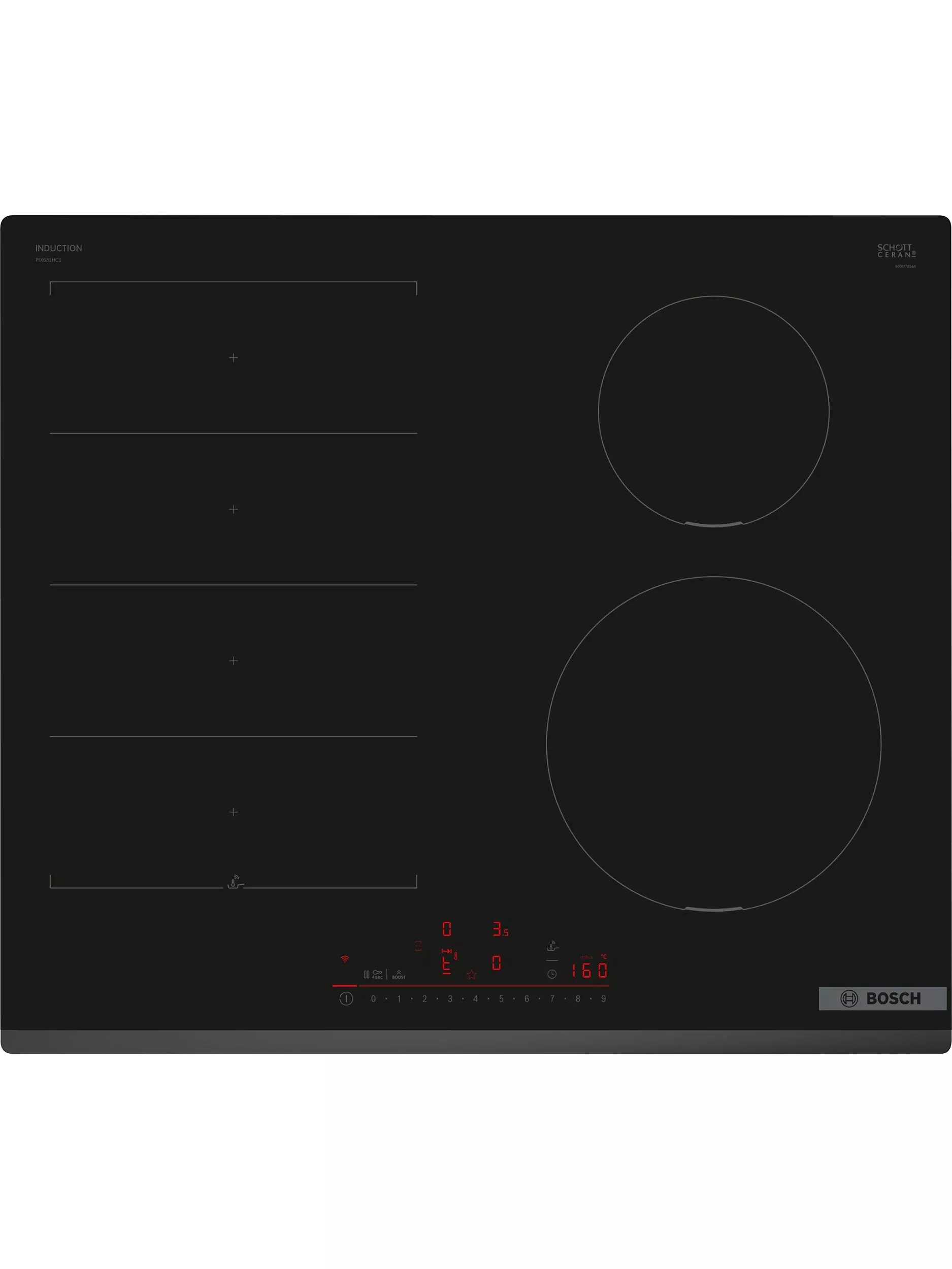 There are no buttons or dials on this hob. Instead, with a tap of a finger, you can turn on your chosen cooking zone, select your ideal temperature and even lock the hob to prevent any accidental changes.