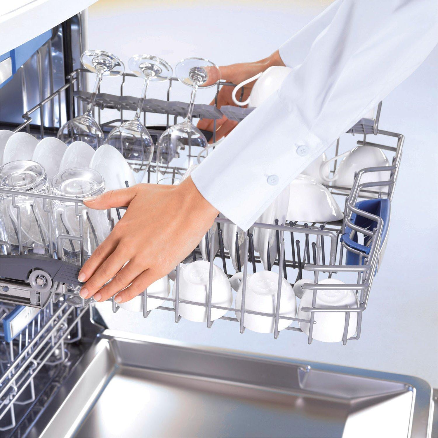 The upper basket is height-adjustable at 3 stages, even when fully loaded, and features a removable VarioFlex basket as a more flexible alternative to a cutlery basket, allowing you to effortlessly unload. A glass protection system ensures that your finest glasses will come out sparkling, and thanks to the unique loading system can be placed in with carefully to avoid breakages. With 2 foldable plate racks in the top and bottom baskets, a large variety of dishes can be accommodated with. This appliance also includes a large item spray head that can be utilised for getting your oven shelves or barbecue grill clean.