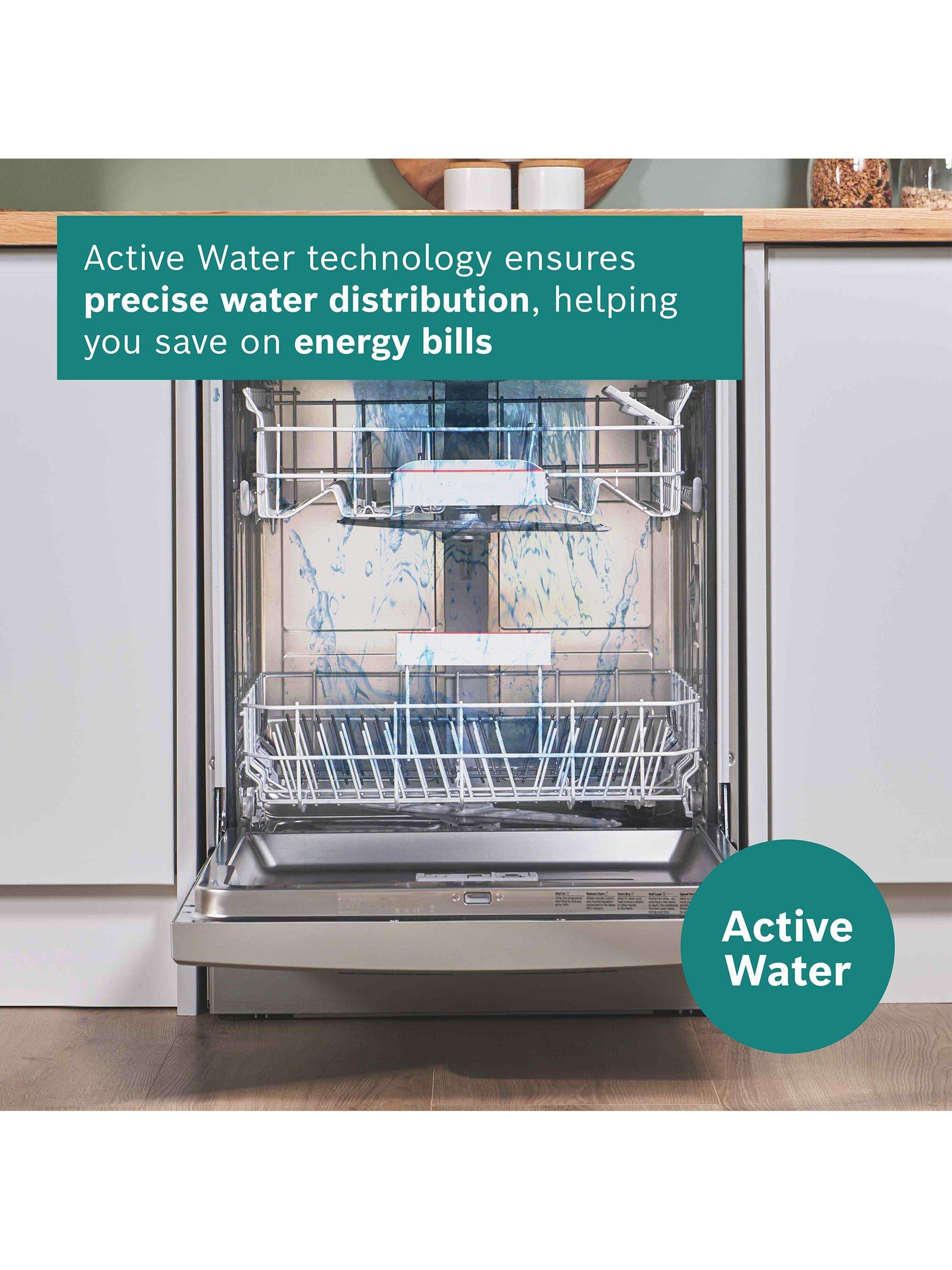 Bosch's innovative Active Water Plus technology maximises efficiency to produce outstanding results. With carefully targeted water distribution, improved filter technology, faster heating and increased pump output for more water circulation, Active Water dishwashers give superb results.