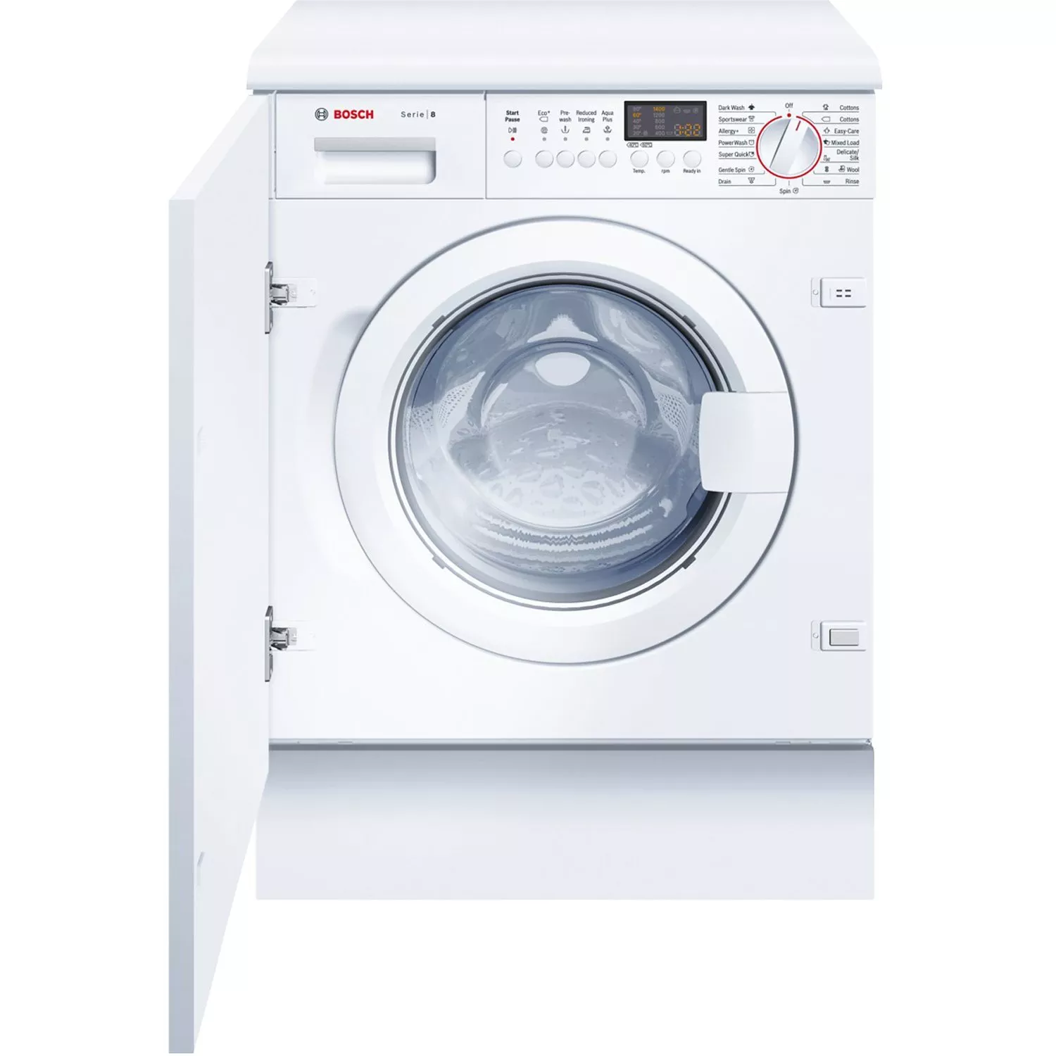 Pressed for time? The A+ rated Bosch WIS28441GB 1400rpm integrated washing machine has a speedy 15 minute cycle for a small, lightly soiled load – perfect for that special garment you need in a hurry!