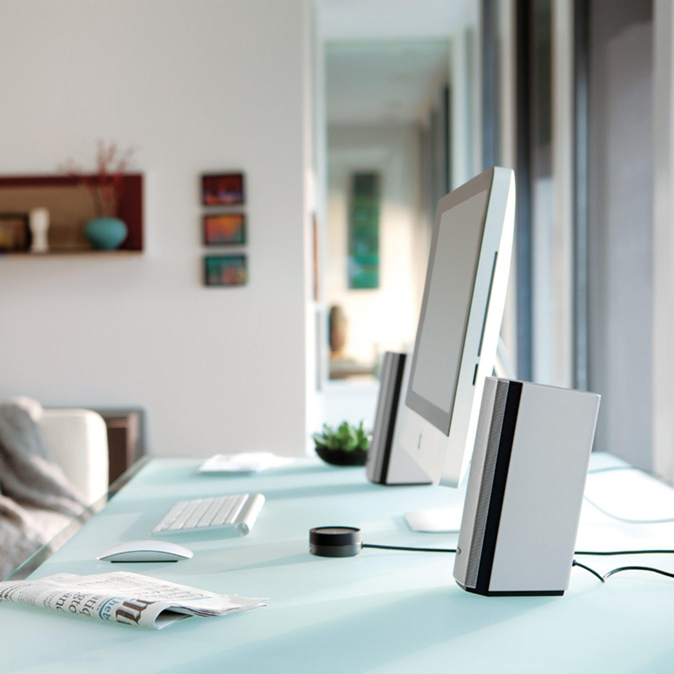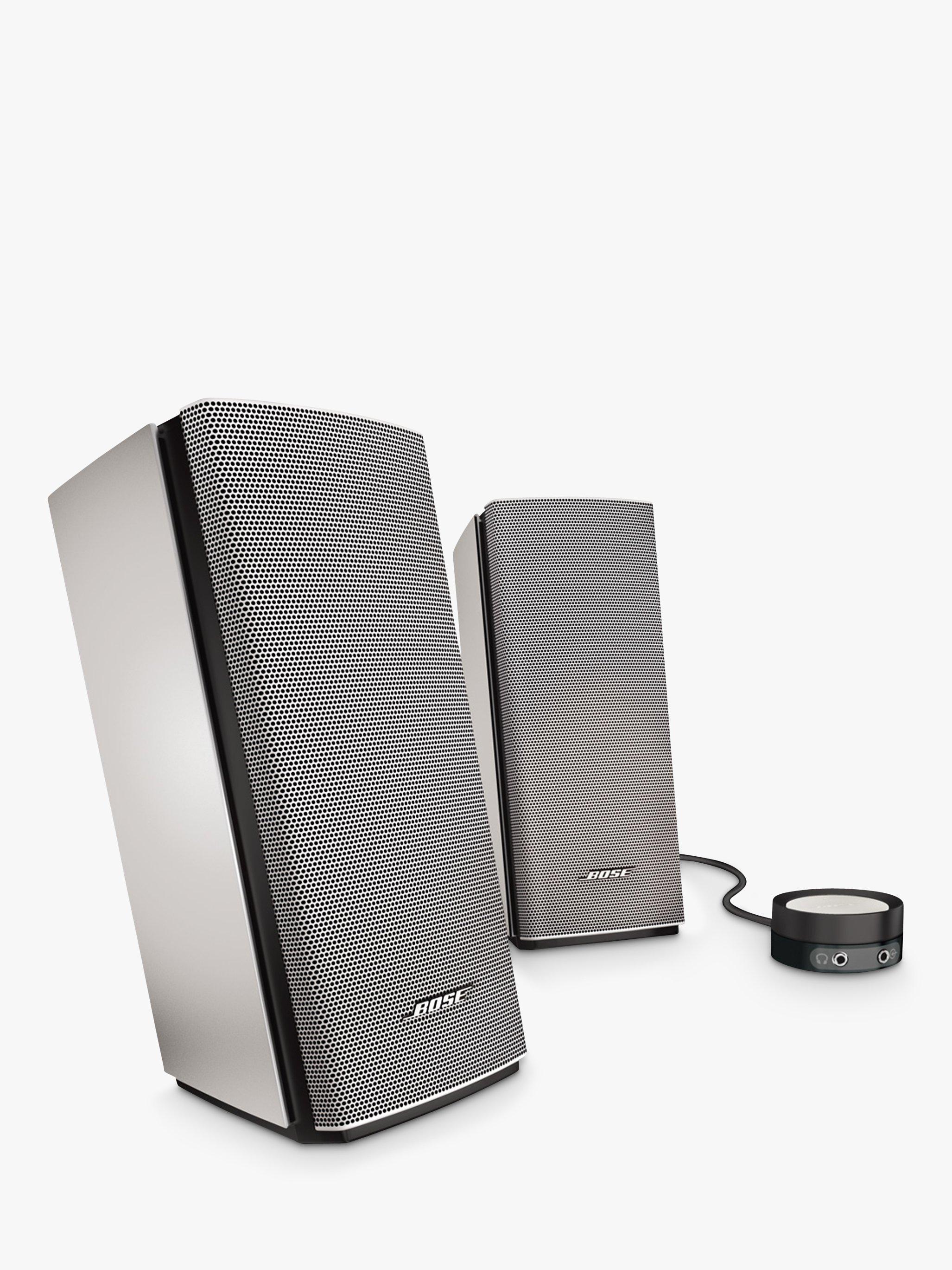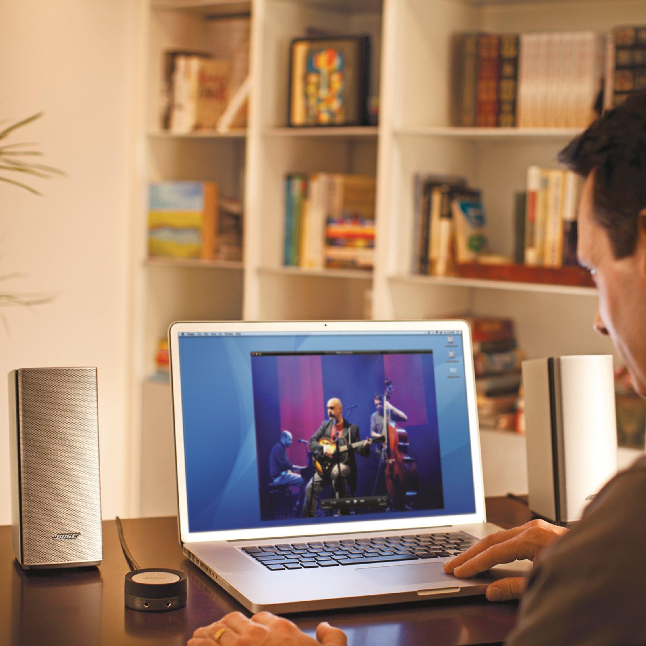 Dramatically improve the audio from your computer with the Companion 20 multimedia speaker system. This two-piece computer speaker system reproduces full, natural sound whether you're in front of your computer or way across the room.Proprietary technology and an advanced port design will make your music, games and videos come alive with striking clarity and impressive low notes at any volume. And all this sound pours from just two speakers - so no need for a bass module. With a few quick connections, you’ll be enjoying a wealth of content on your computer with rich Bose sound.