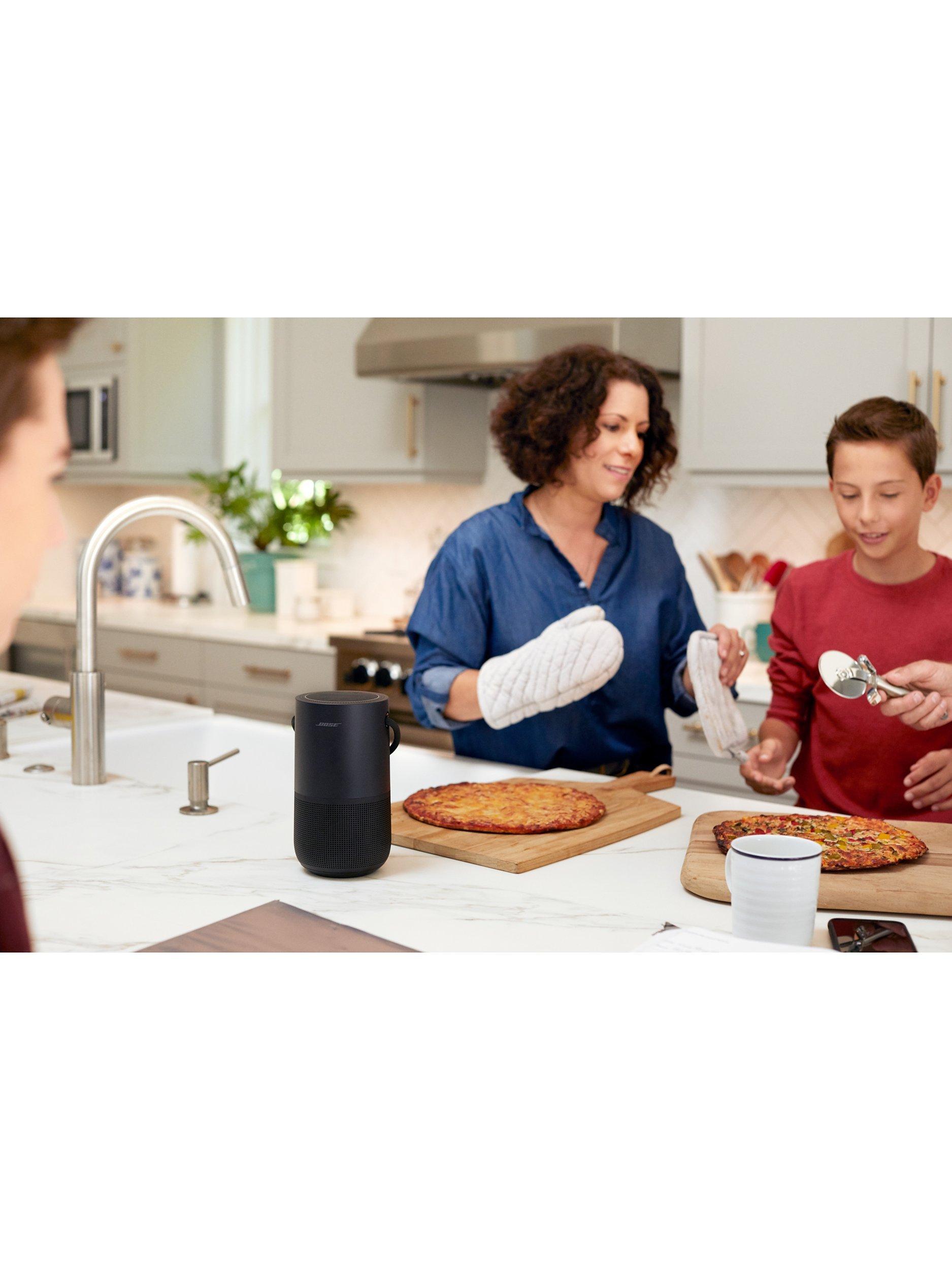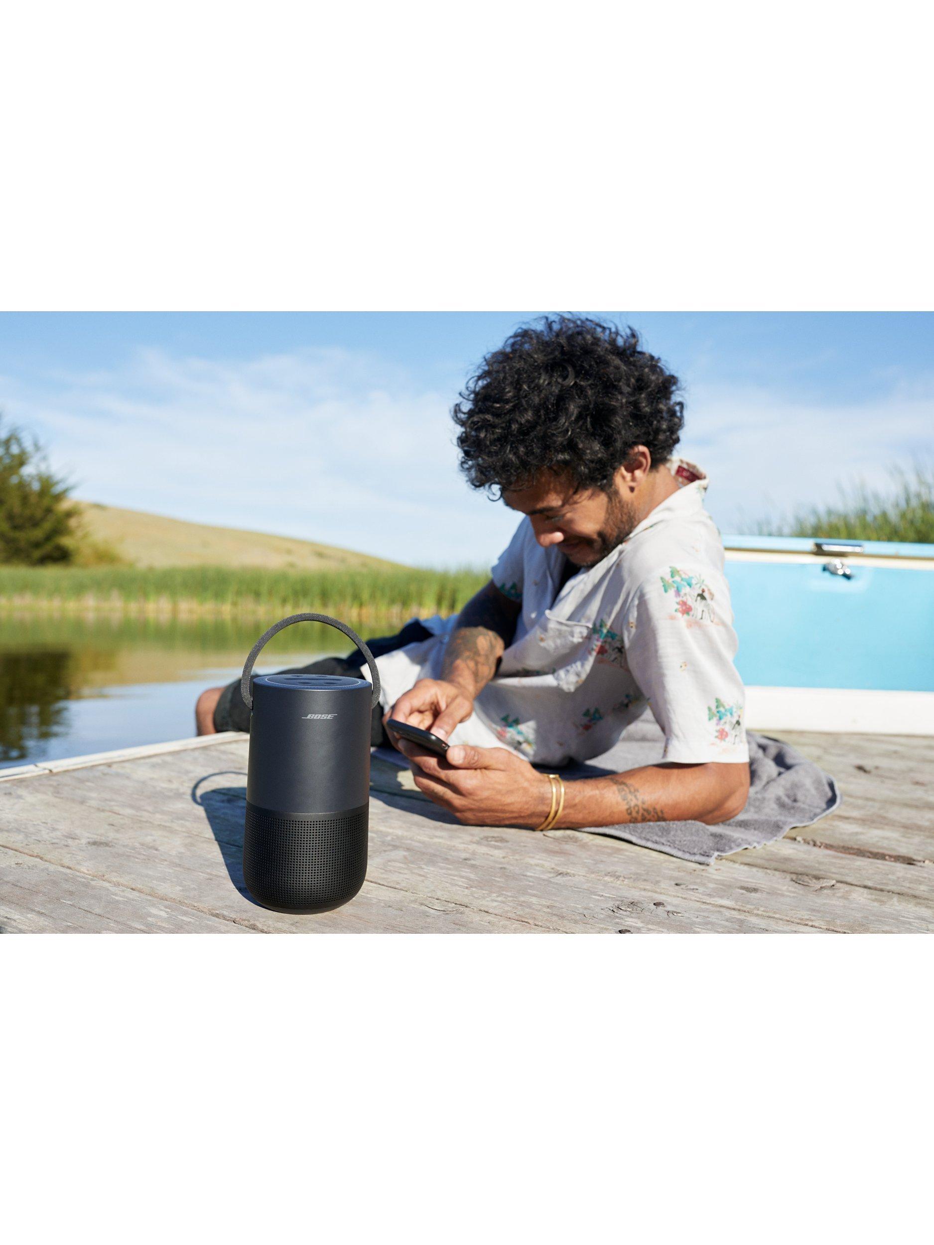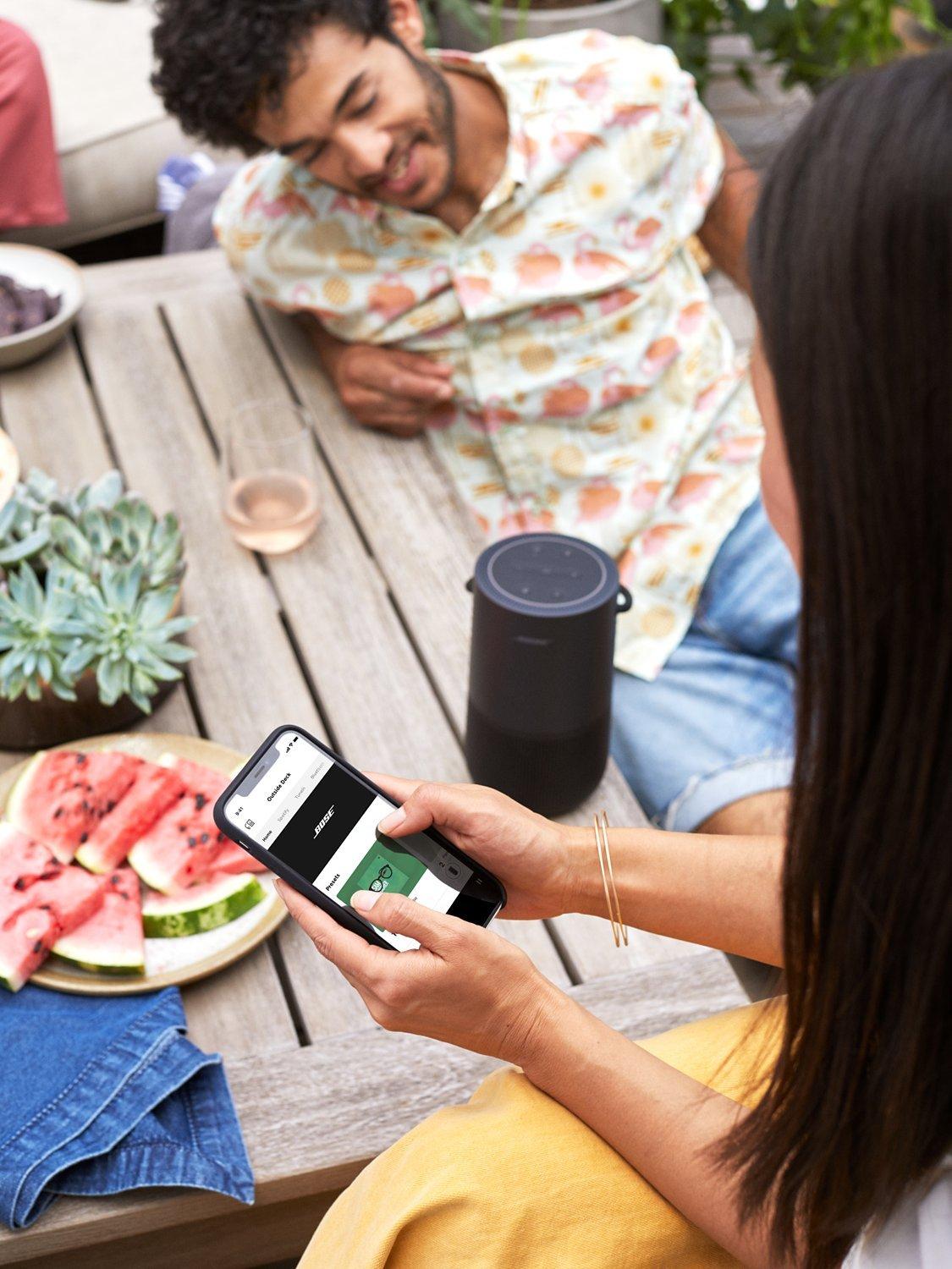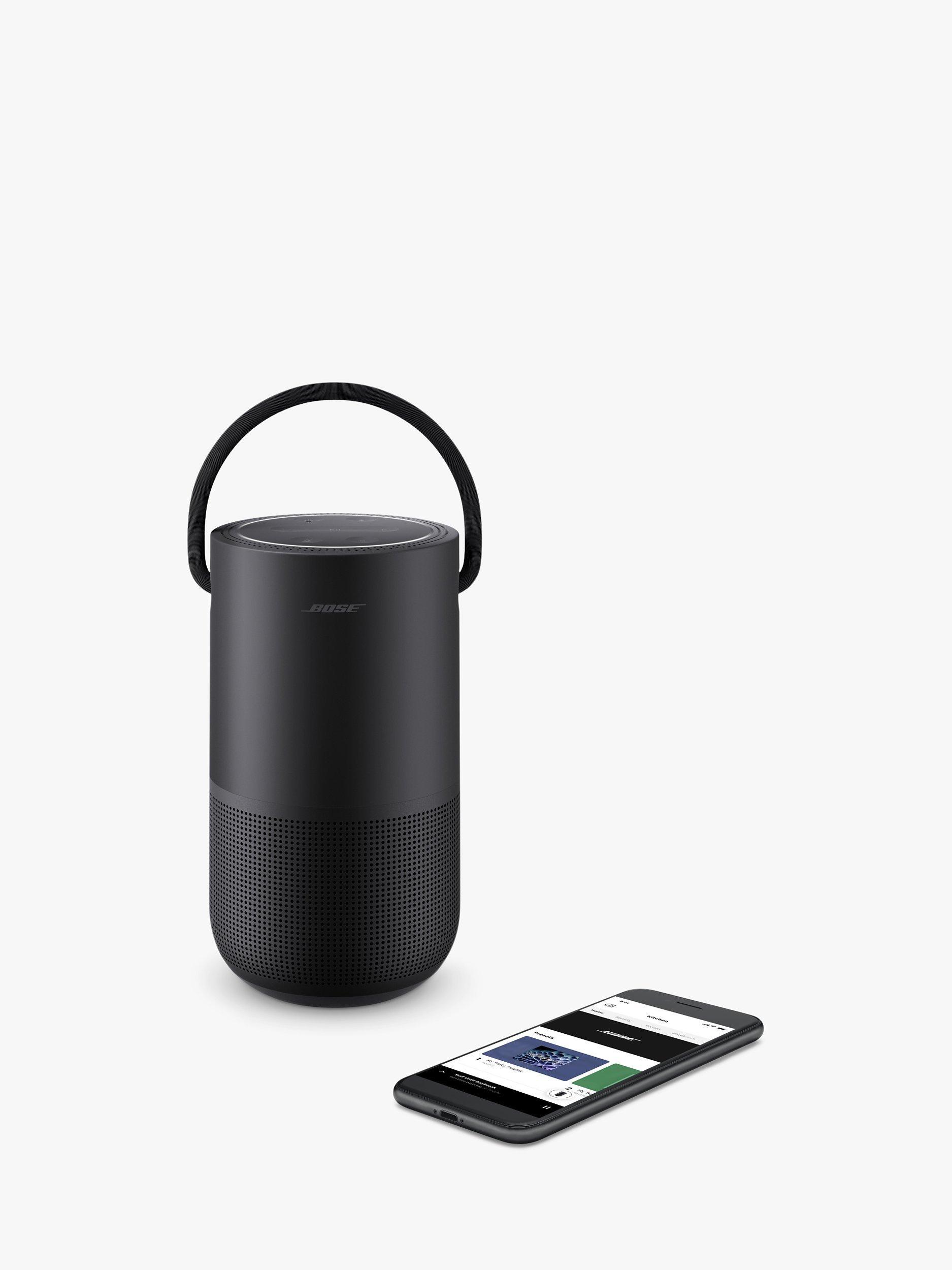 The Bose Portable Home Speaker delivers 360° lifelike sound in a compact and durable speaker that you can take anywhere. When connected to Wi-Fi, built-in voice control from the Google Assistant and Alexa puts songs, playlists and more at the tip of your tongue. Bluetooth, a long-lasting rechargeable battery and water-resistant durability ensure it's reliable outdoors too. And you have the freedom to control the music your way; with your voice, with a tap on the top controls, or with the Bose app (available on iOS and Android).