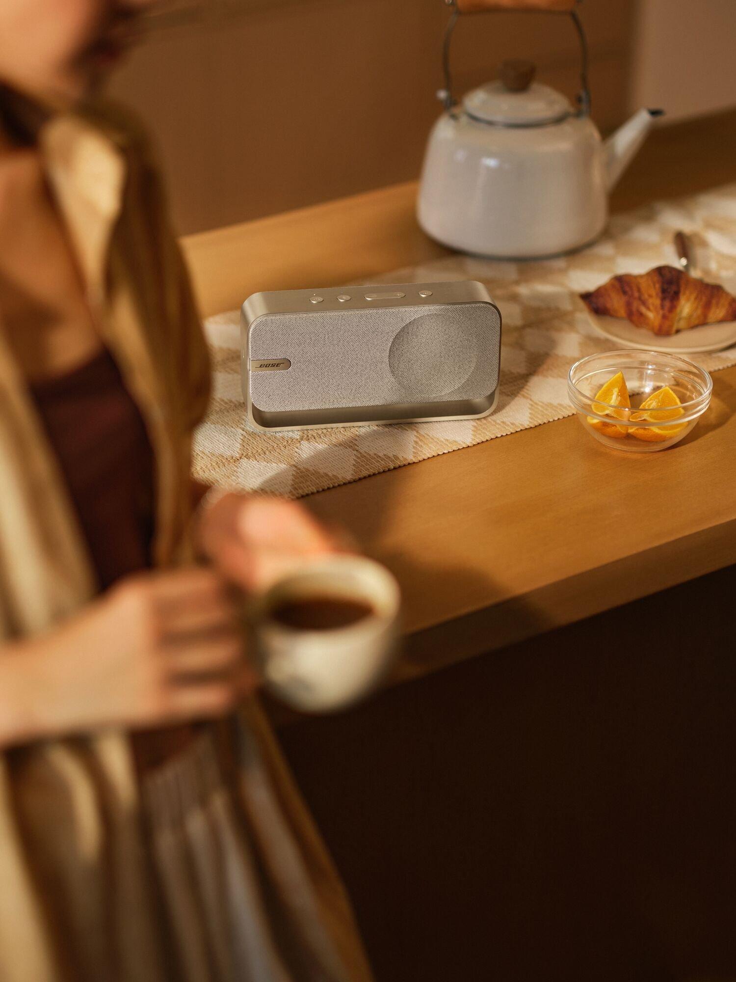 SoundLink Home never has to stay put. Advanced Bluetooth 5.3 and up to 9 hours of battery life* keep good vibes going when you take tunes from the bedroom to the kitchen and back. When it’s time to recharge, just plug in the included USB-C cord. *Testing conducted by Bose with audio playback at a loudness of 75dBSPL. Battery life varies based on settings and usage.