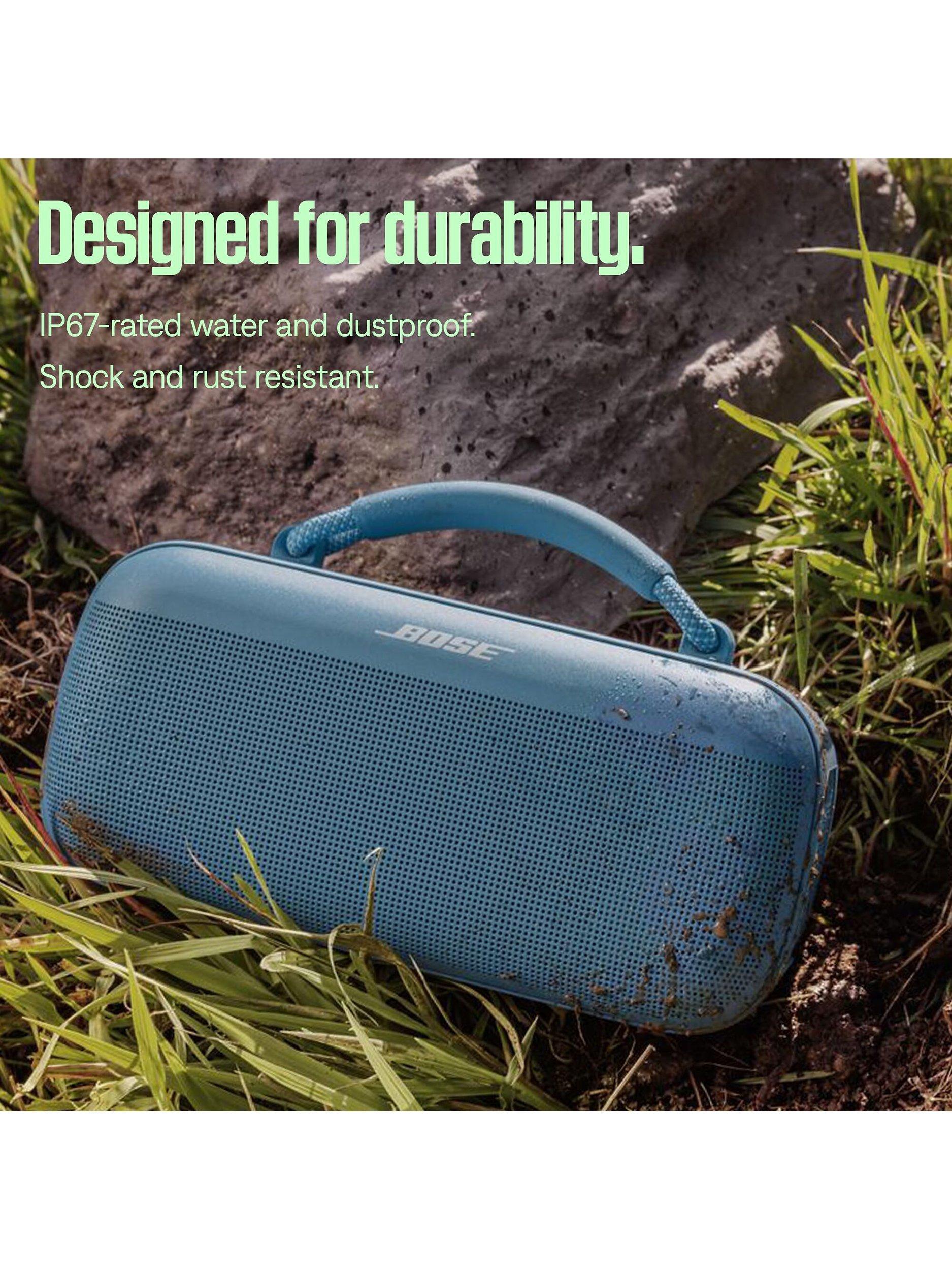 There’s no need to stress about mishaps like a drink spill, a splash from the pool, or bad weather ruining the good times. Water and dust-proof features with an IP67 rating means the SoundLink Max Speaker can keep going whatever.
