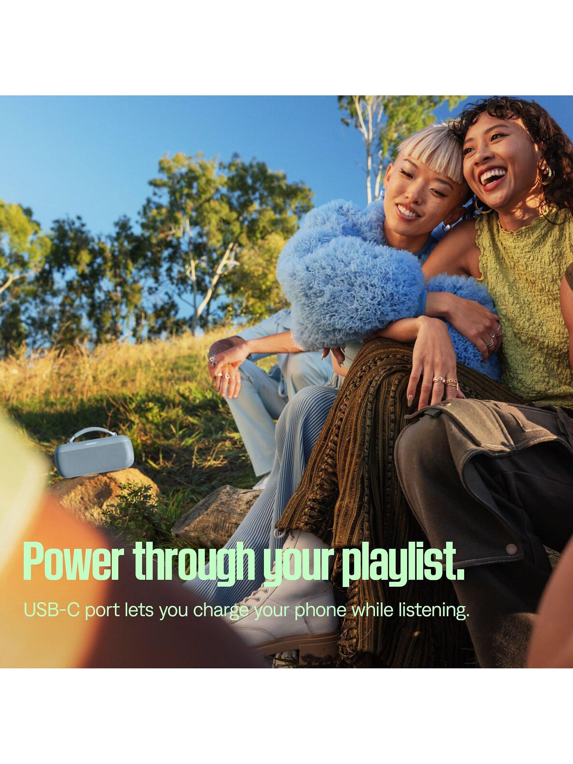 When your phone battery starts running low, the USB-C port lets you charge up from the speaker’s built-in battery. If the SoundLink Max Speaker has power, your phone stays on …and so does the music.