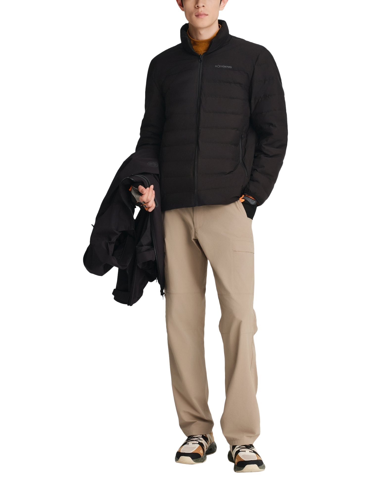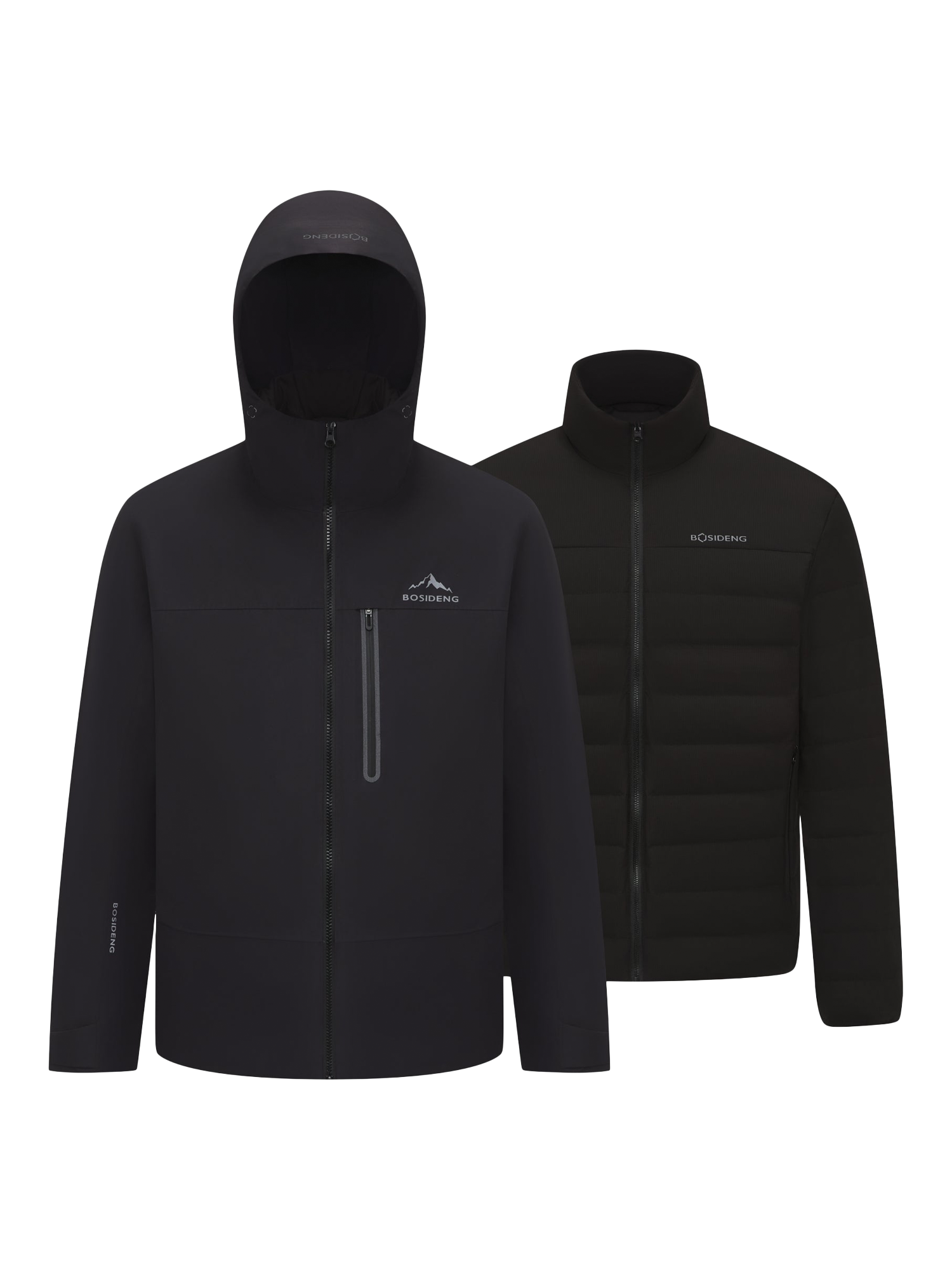 Whether navigating city streets in the rain or exploring mountain trails, this three-in-one jacket is built for versatility and comfort. Featuring a detachable down liner and waterproof outer shell that can be worn together or separately, it adapts easily to shifting weather conditions. Volcanic rock heat-storage technology keeps you dry and comfortable, while 700+ fill power premium goose down delivers lightweight insulation without bulk. Crafted from stretch high-density fabric for windproof and waterproof protection, with a universal comfort fit that allows easy movement and layering, it is a durable and reliable choice for both outdoor exploration and everyday wear.