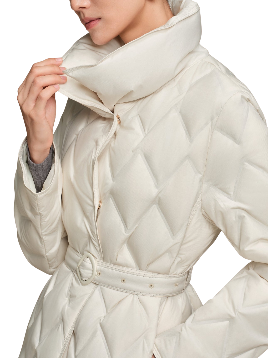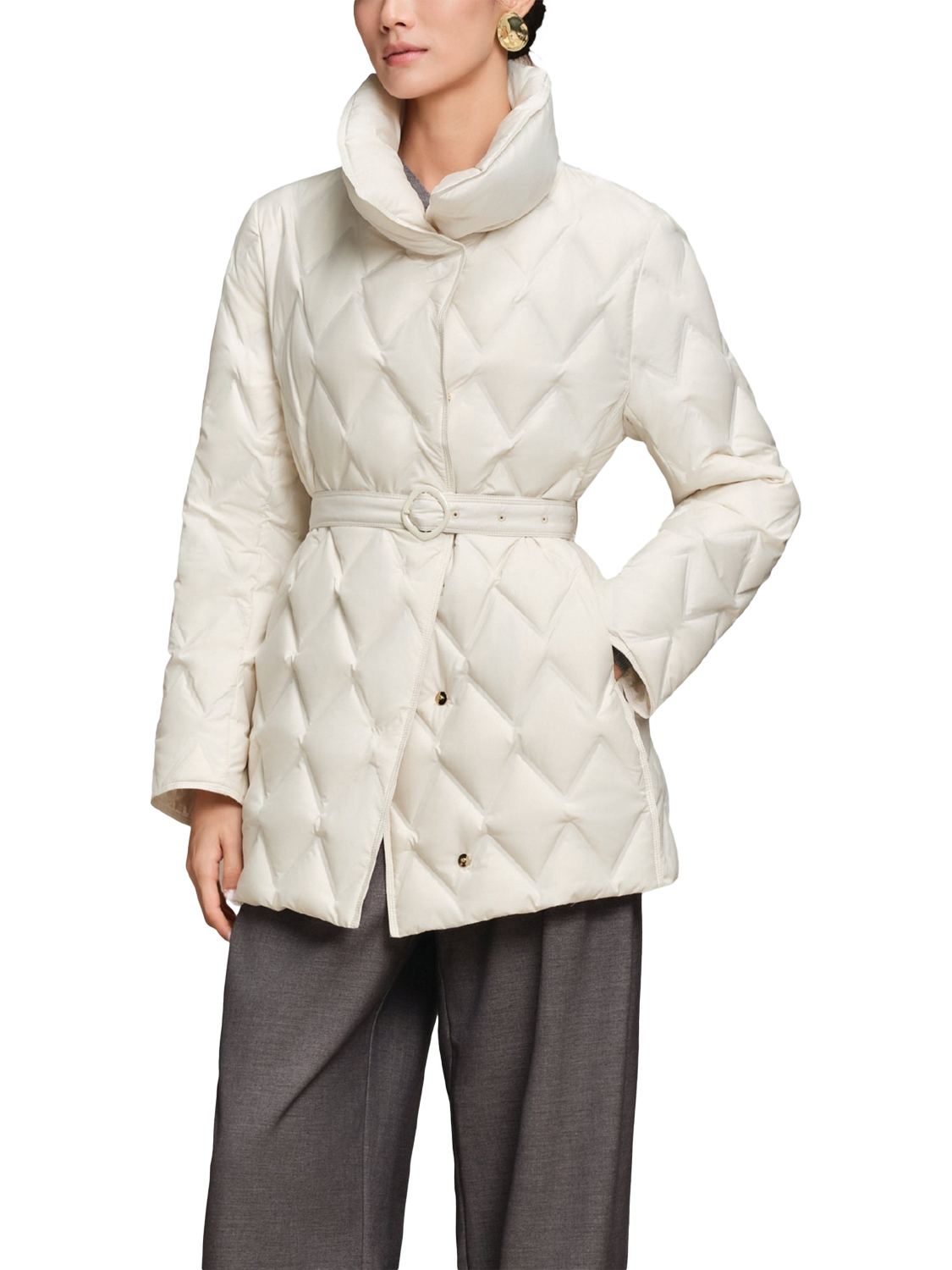 BosidengBelted Goose Down Quilted Jacket, Pearl White